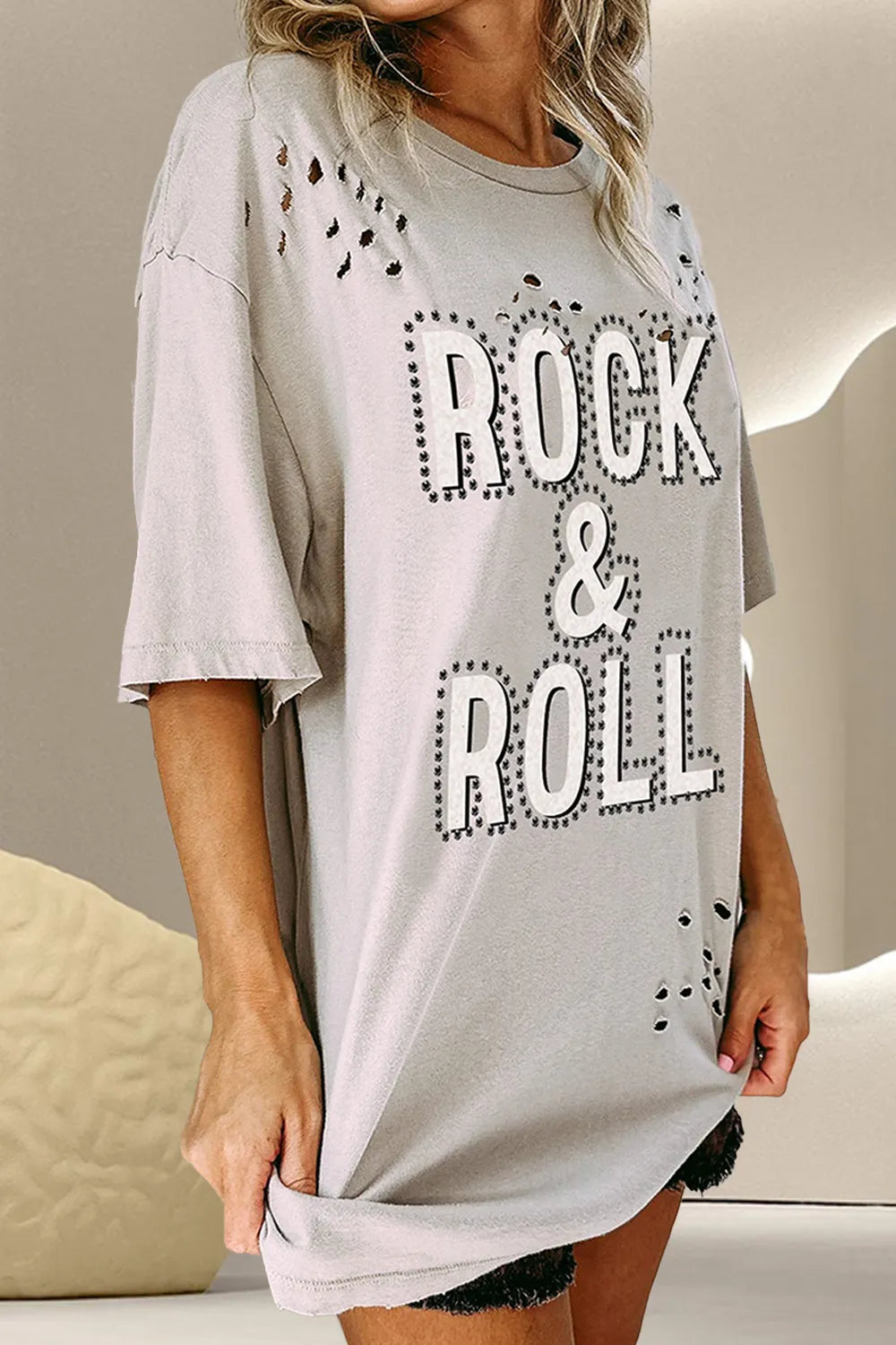 ROCK & ROLL Round Neck Dropped Shoulder T-Shirt