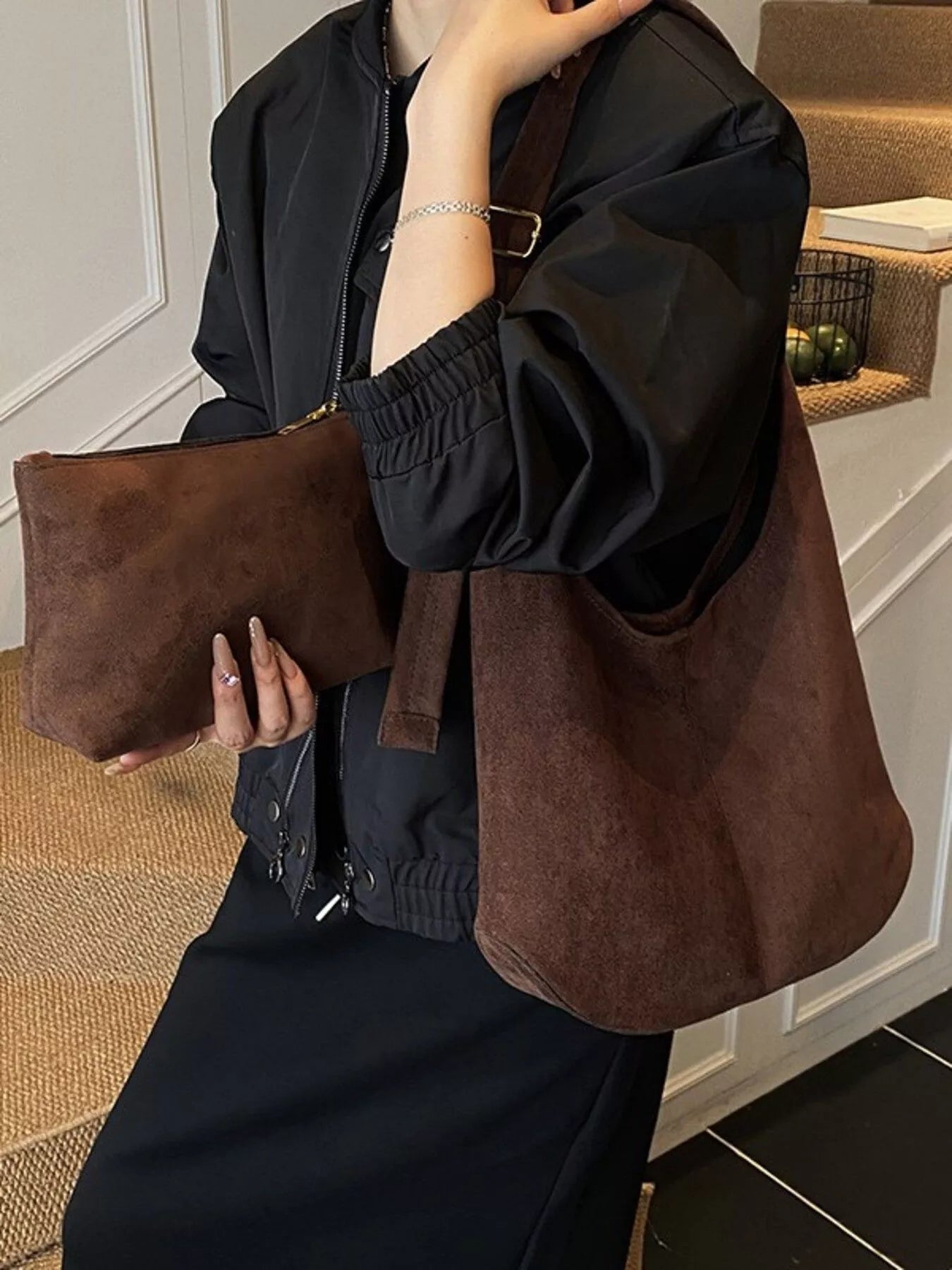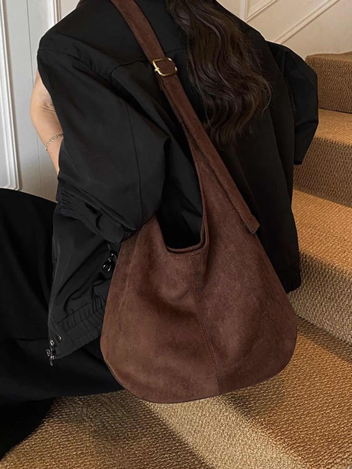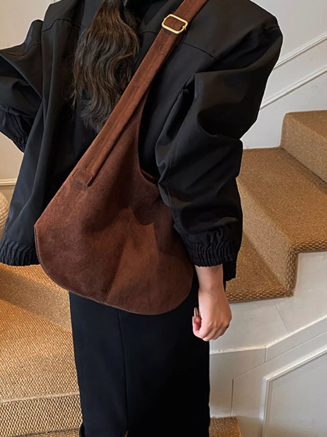 Suede Hobo Shoulder Bag