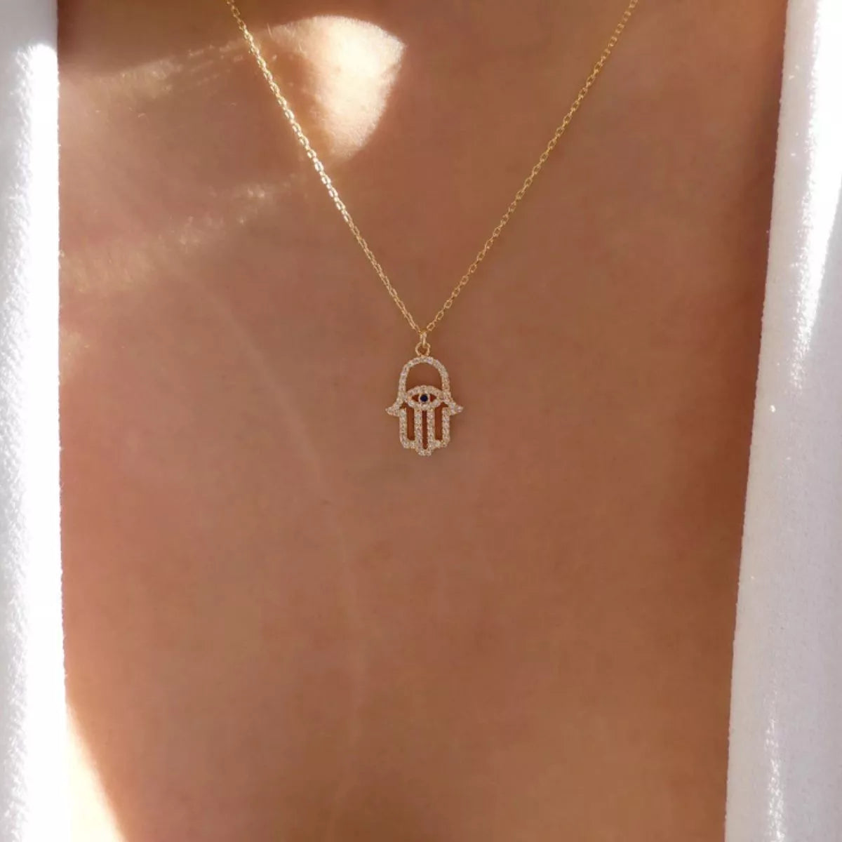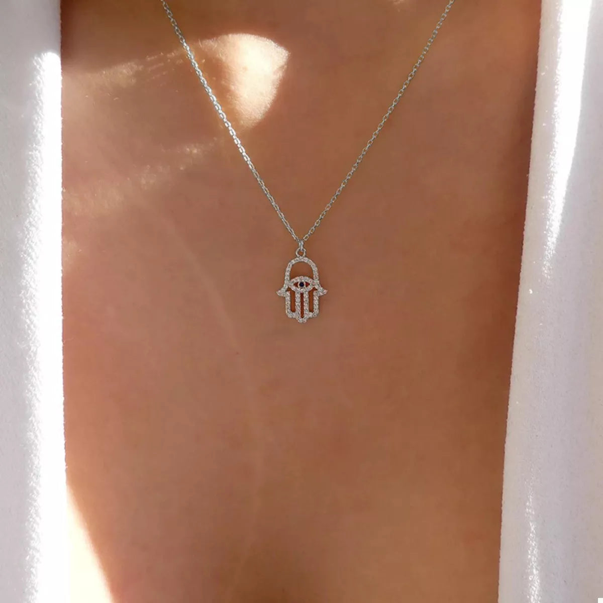 Zinc Alloy Rhinestone Evil Eye Necklace