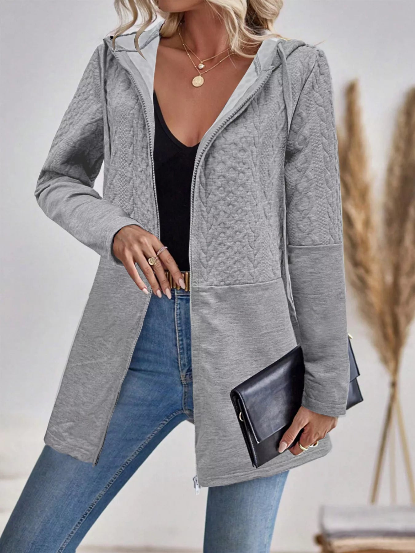 Zip Up Hooded Longline Outerwear