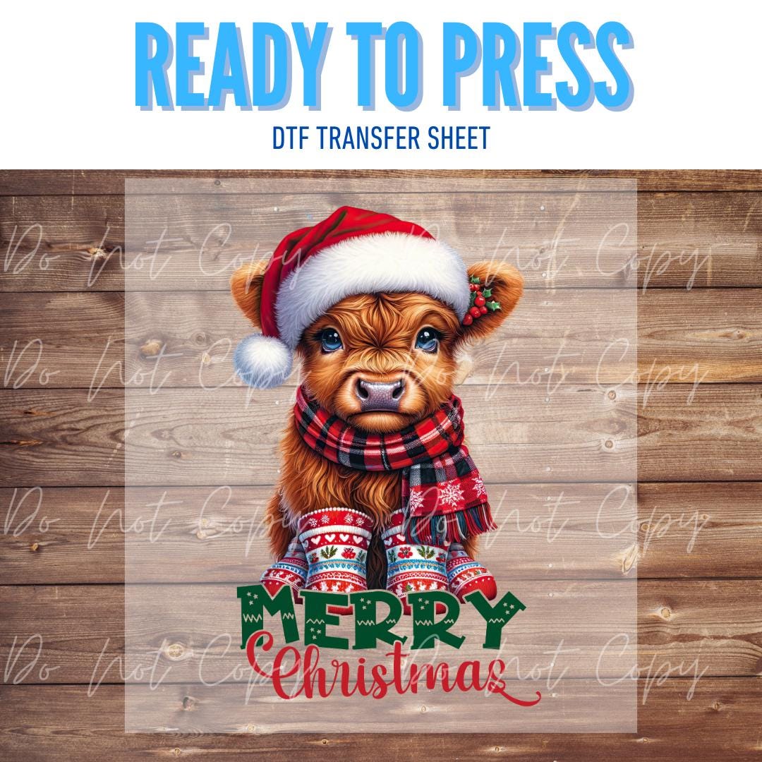 Hazel Blues® | ADULT: Santa Highland Cow | Merry Christmas | DTF Transfer Sheet Iron On
