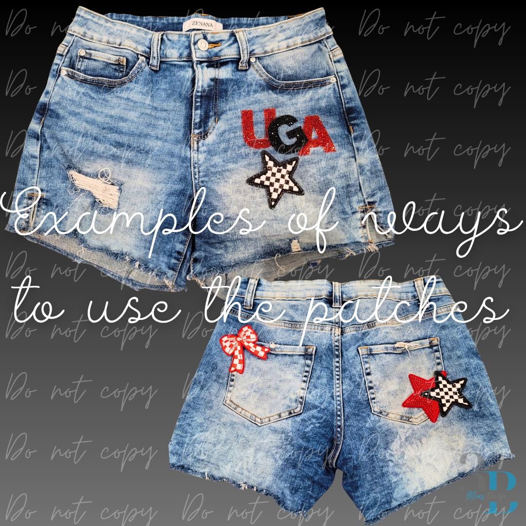 Checkered Glitter Star Iron on Patch - Embroidered Gold (3")