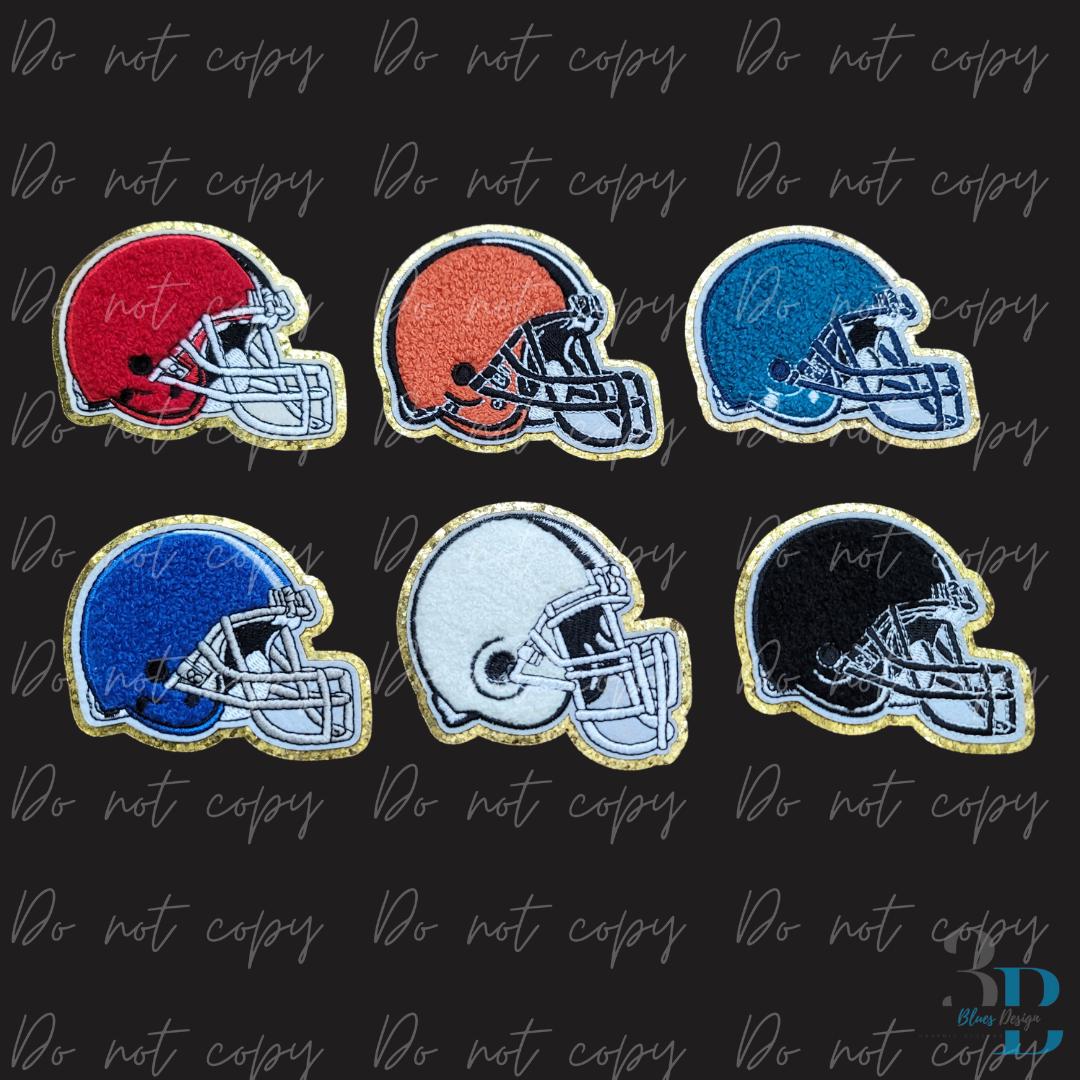 Hazel Blues® | Football Helmet Patch | Iron-On Applique, Game Day Colors (3.12")