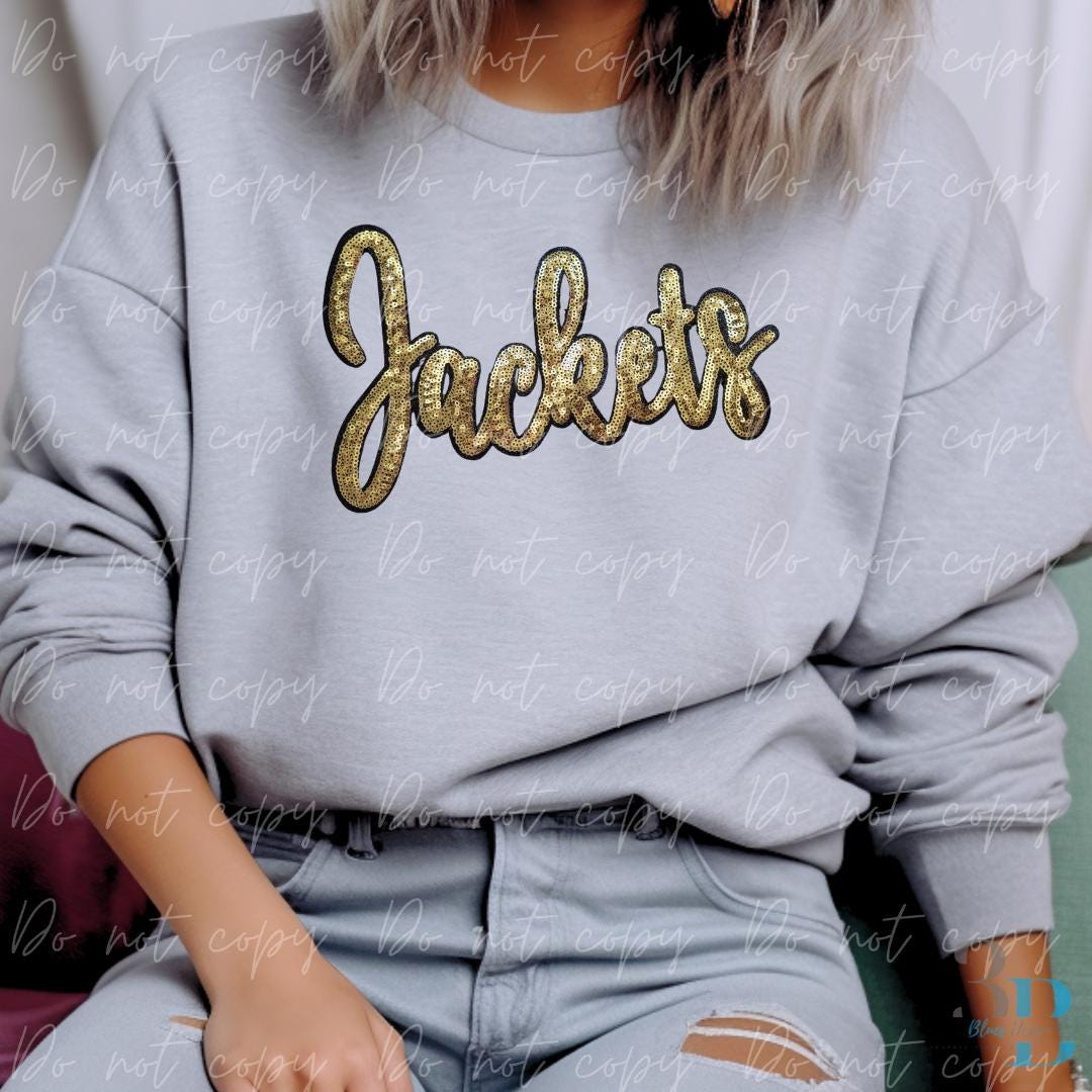 Jackets Script Gold with Black Trim Sequin Iron-on Patch
