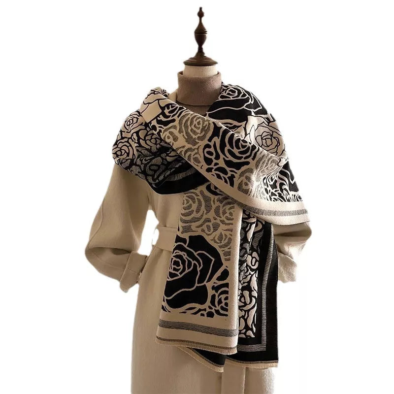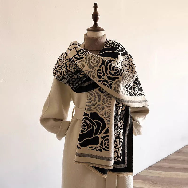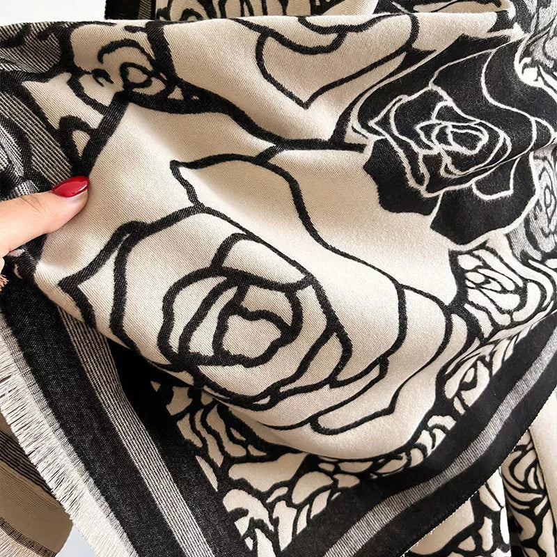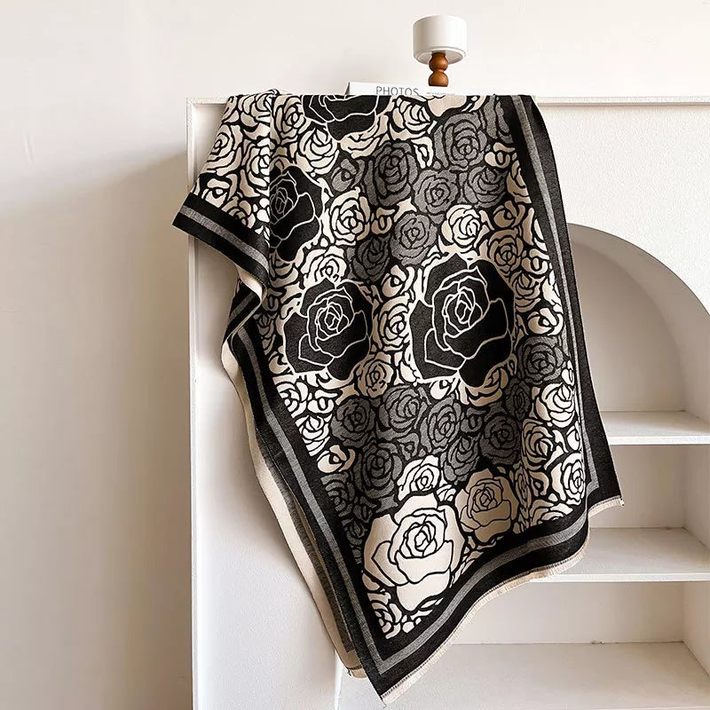 Hazel Blues® | Rose Pattern Raw Hem Scarf