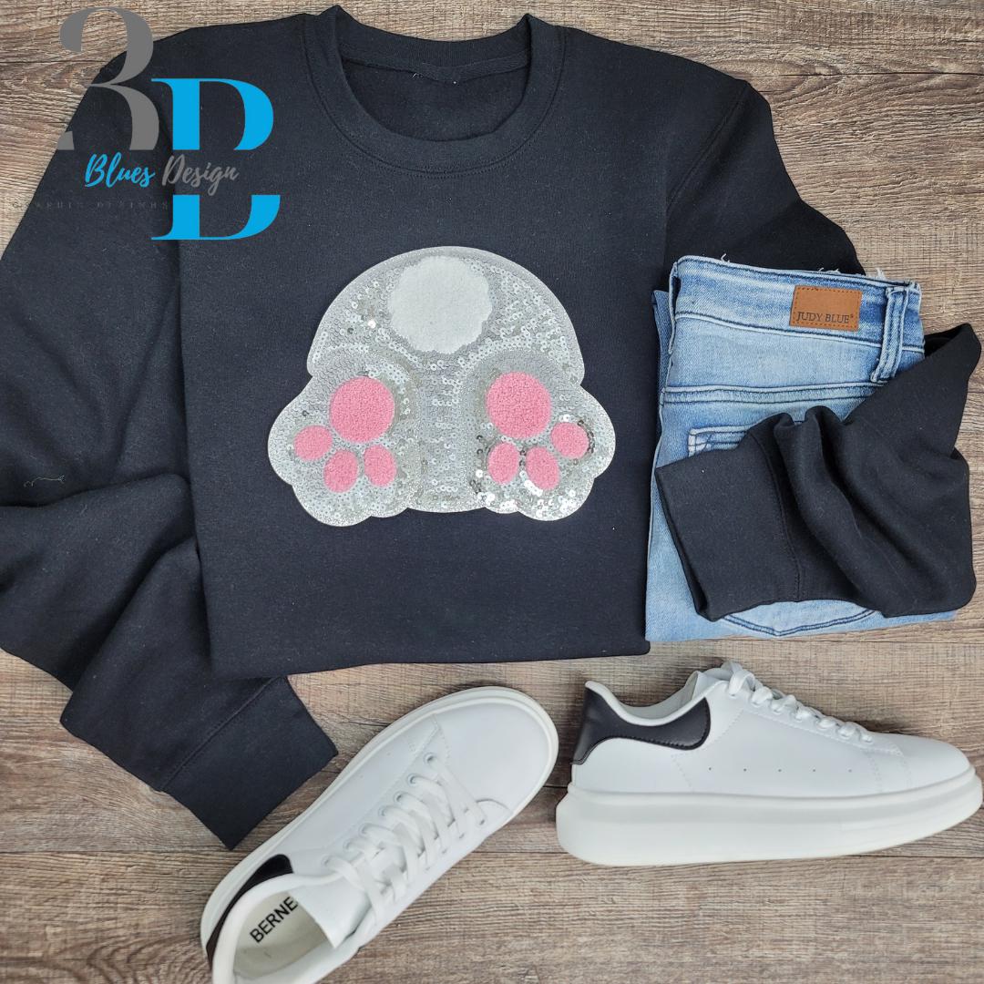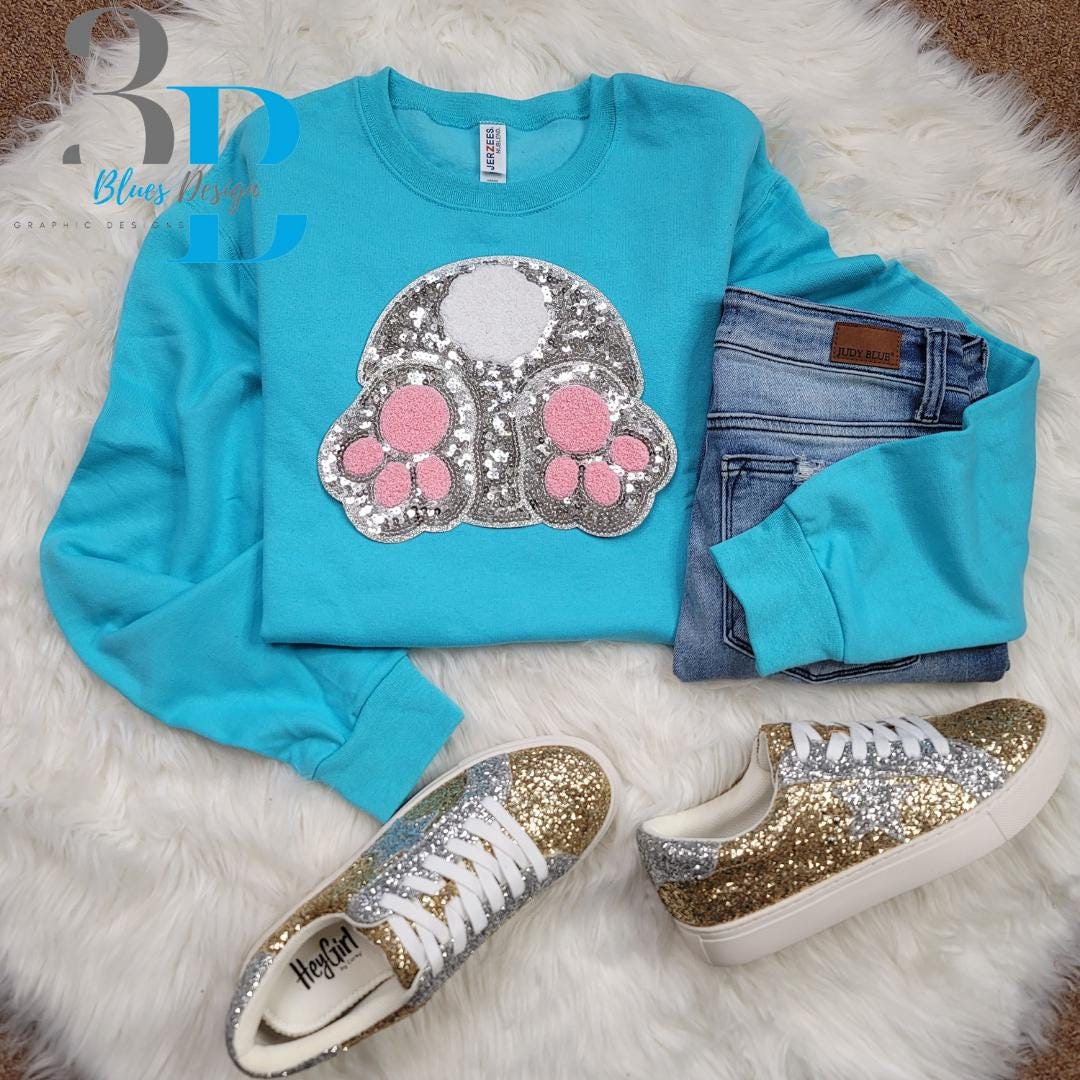 Hazel Blues® | Sequin Bunny Bum | Easter Large Bunny Chenille Iron-on Patch