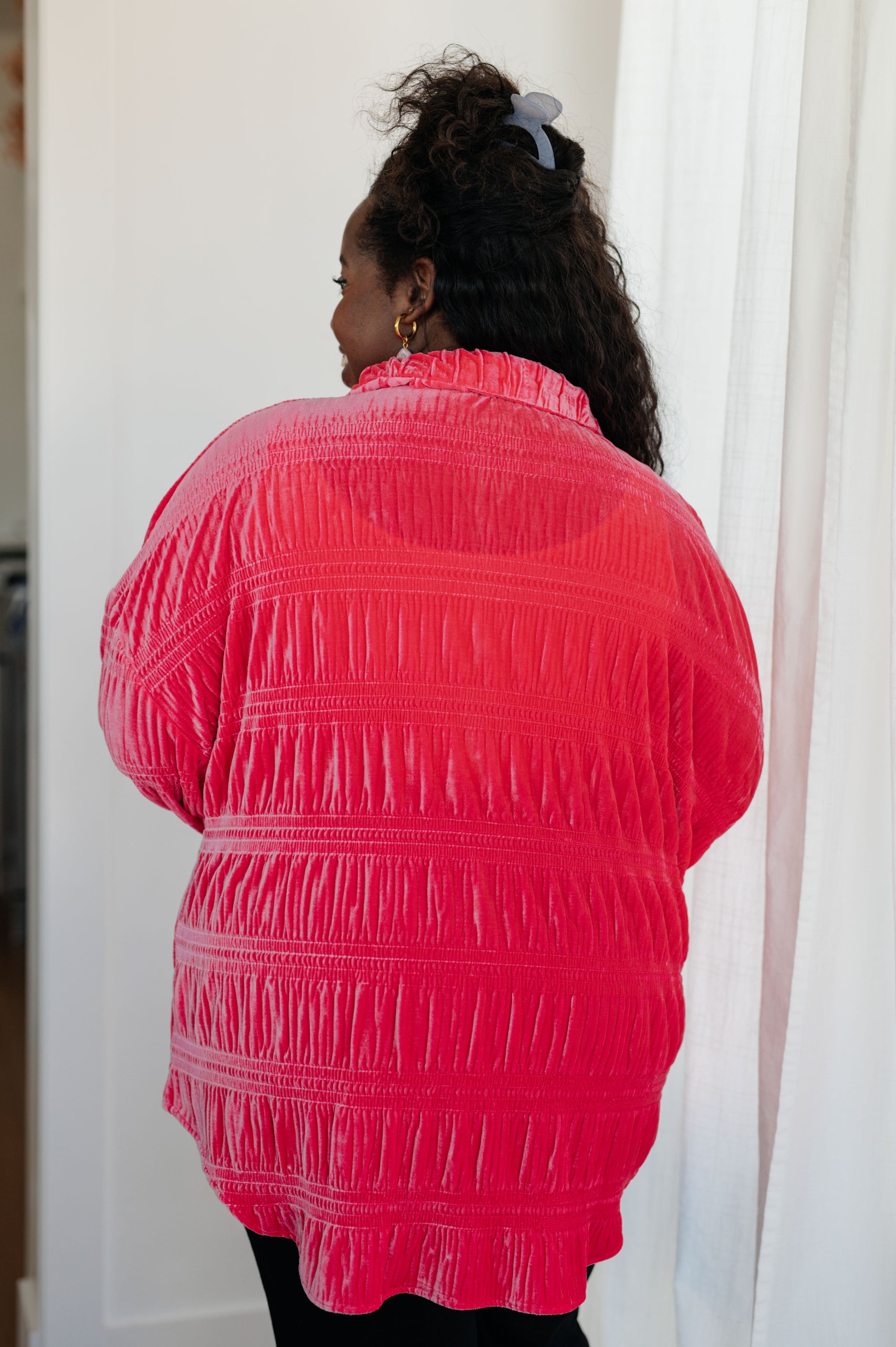 Look fabulous in this Feeling Fuchsia Velvet Button Down. With it's bright fuchsia color and luxe velvet texture, it's sure to be a show-stopper. Create an unforgettable outfit and feel amazing.