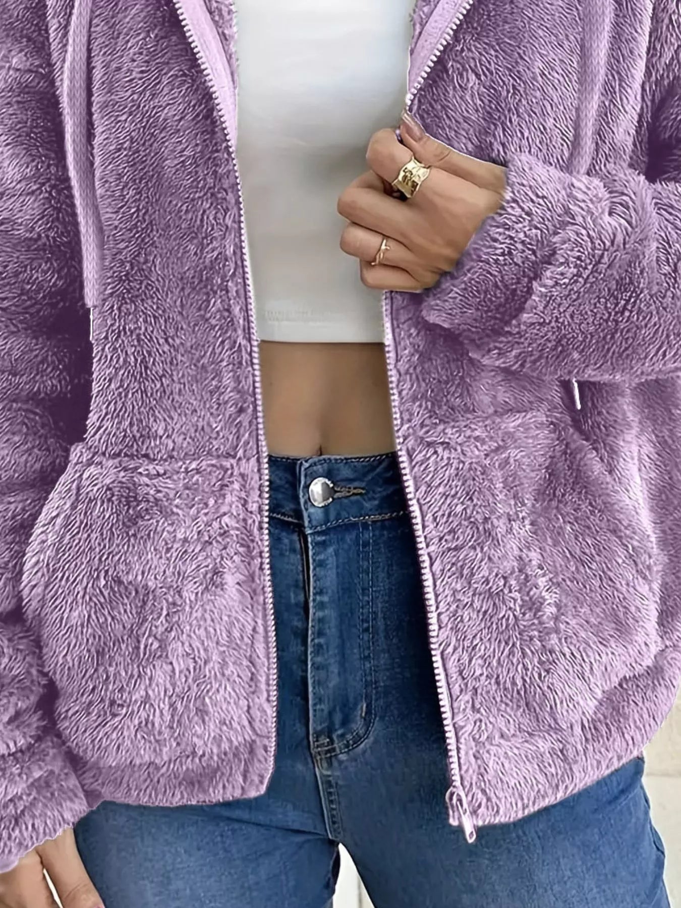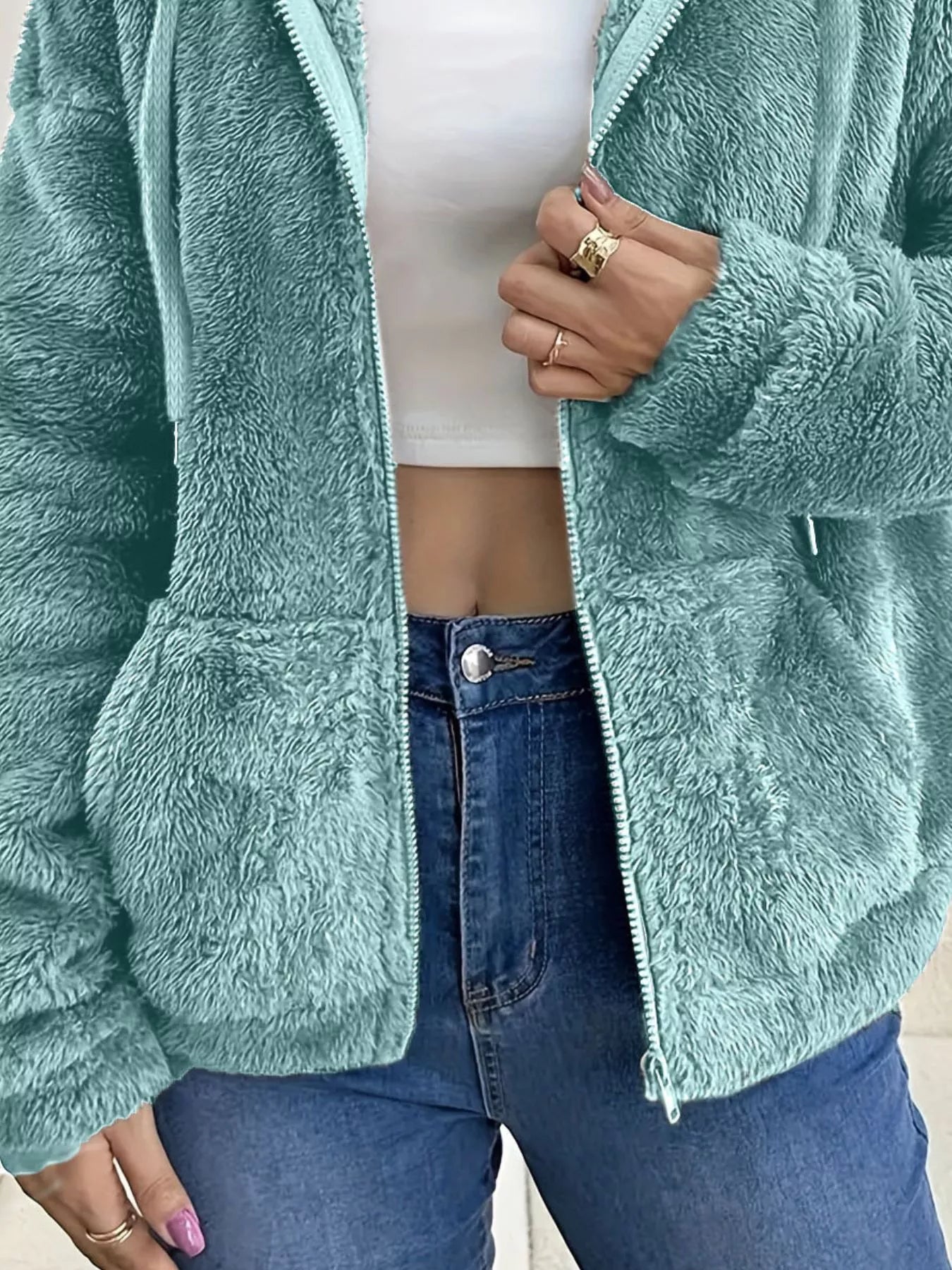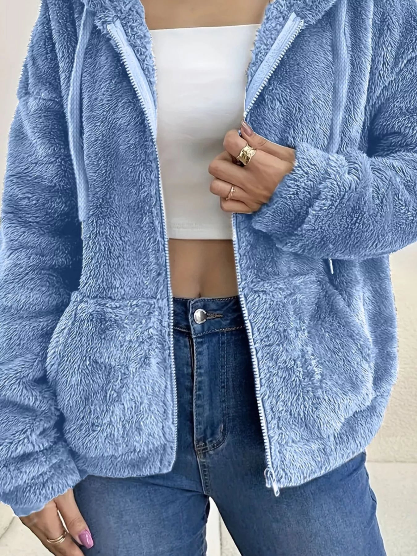 Hazel Blues® | Drawstring Fleece Zip-Up Outerwear