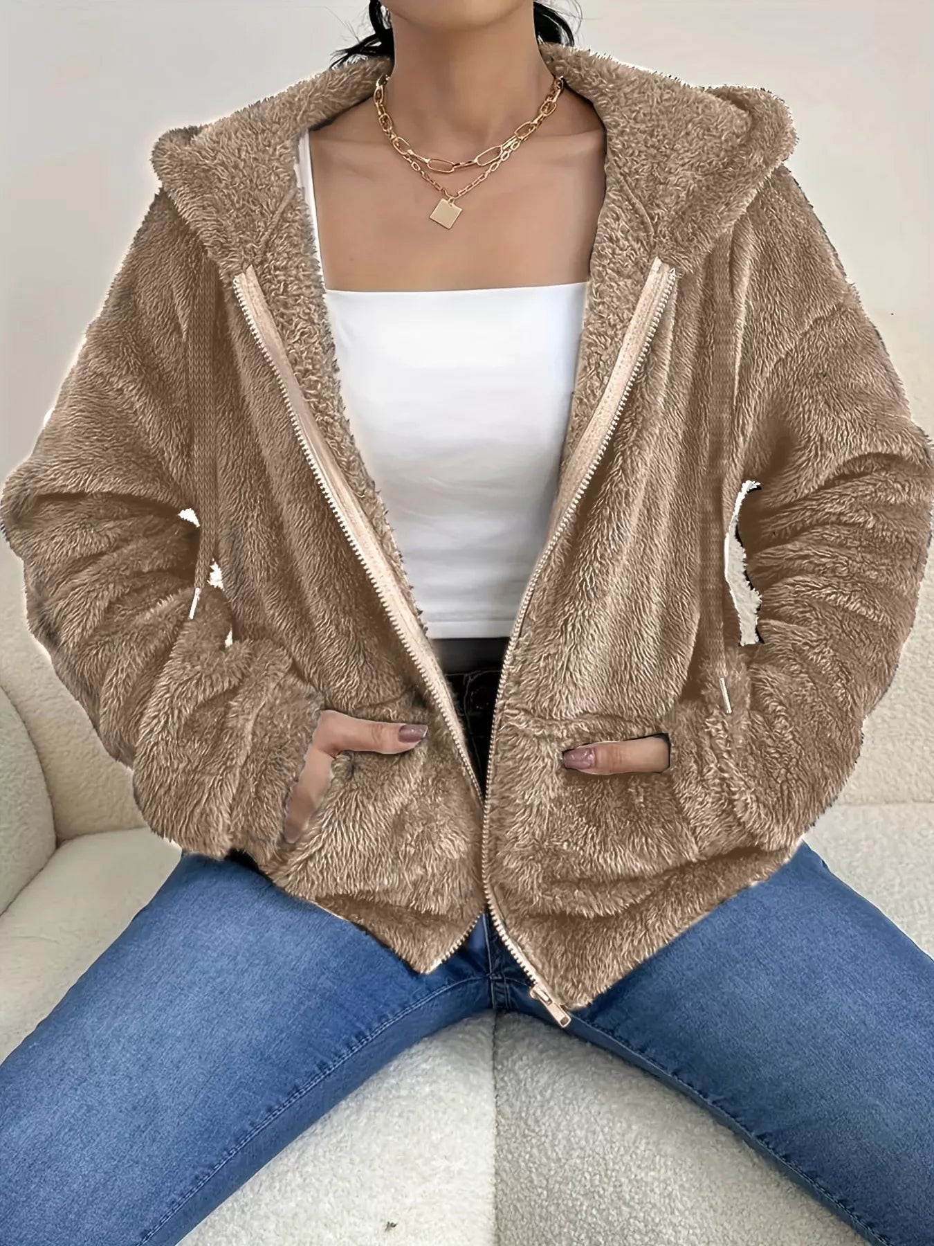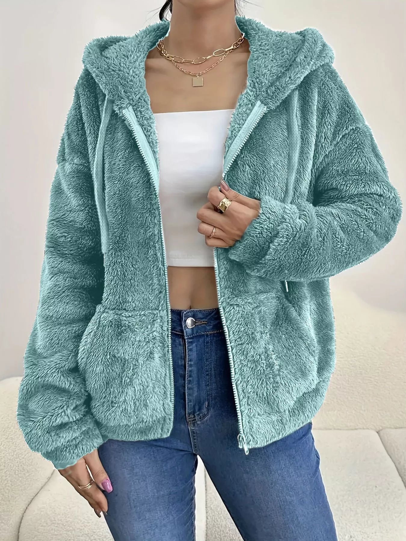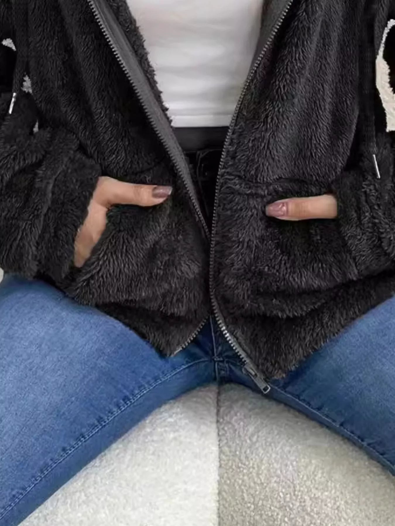 Hazel Blues® | Drawstring Fleece Zip-Up Outerwear