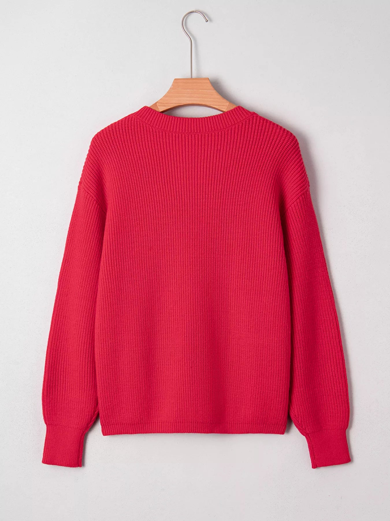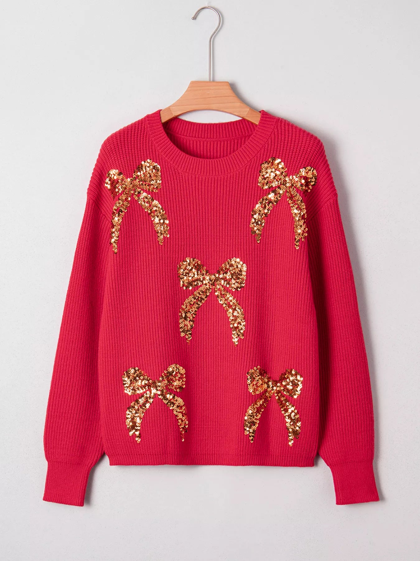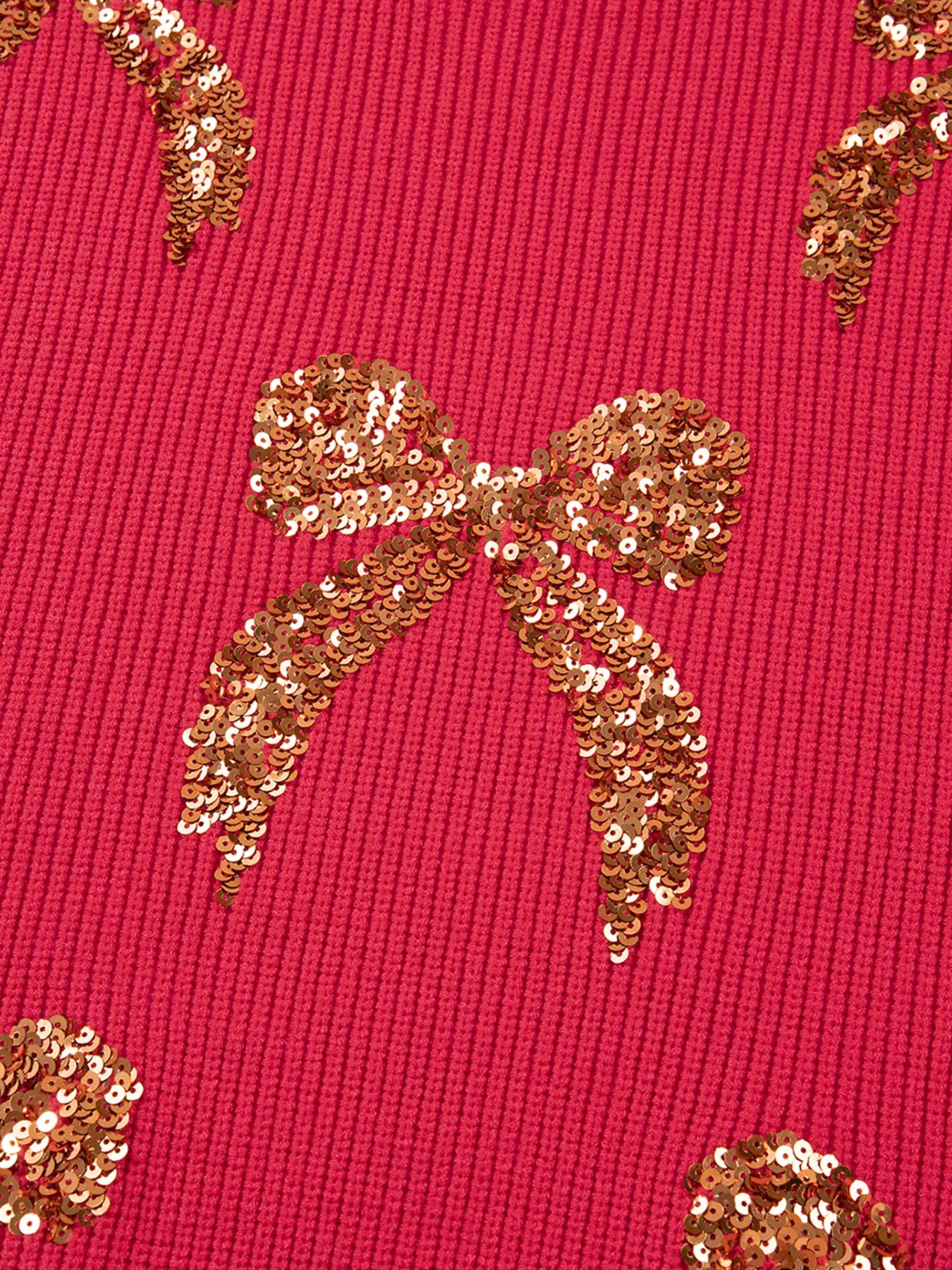 Hazel Blues® | Sequin Bow Accent Drop Shoulder Sweater
