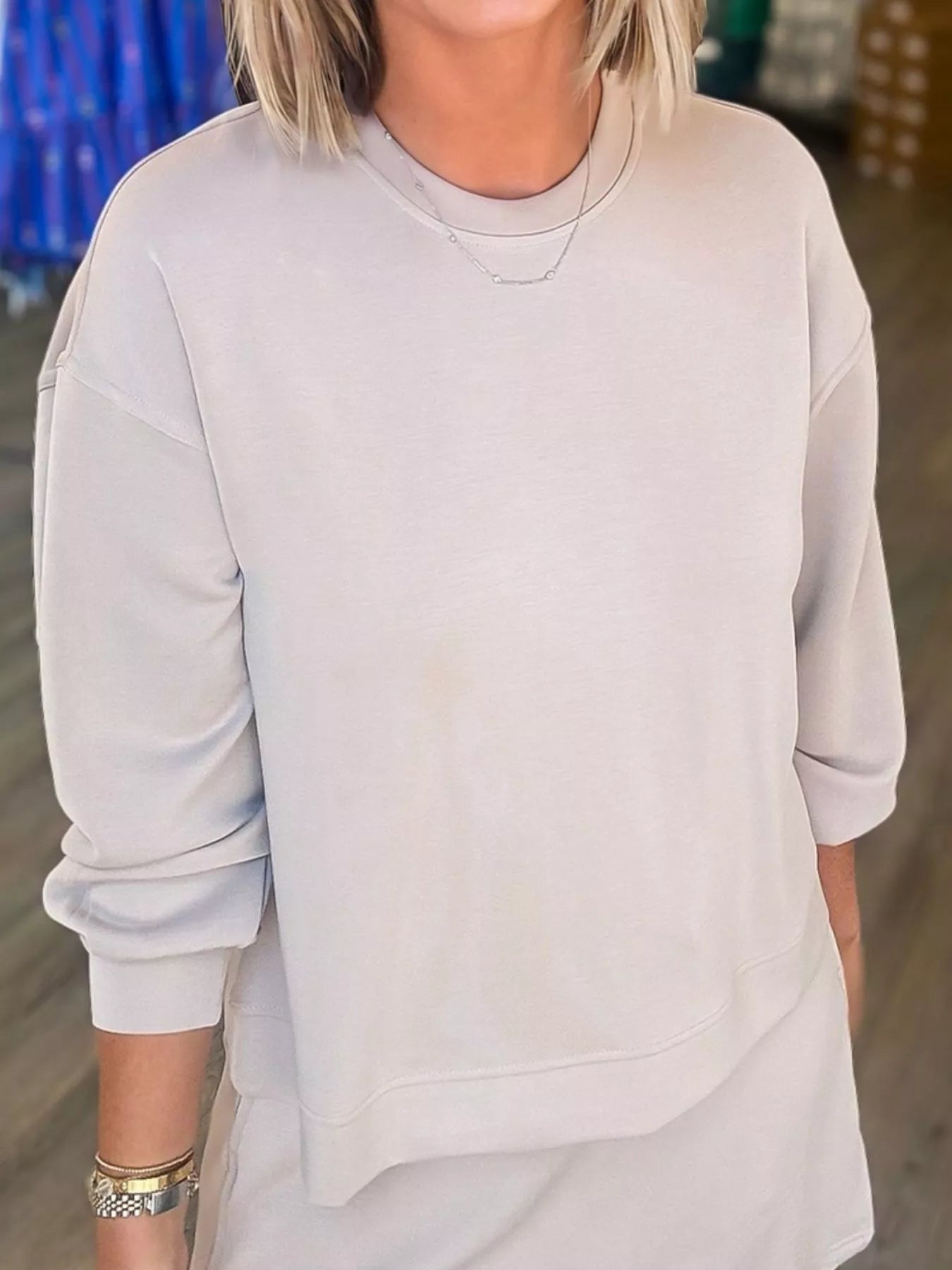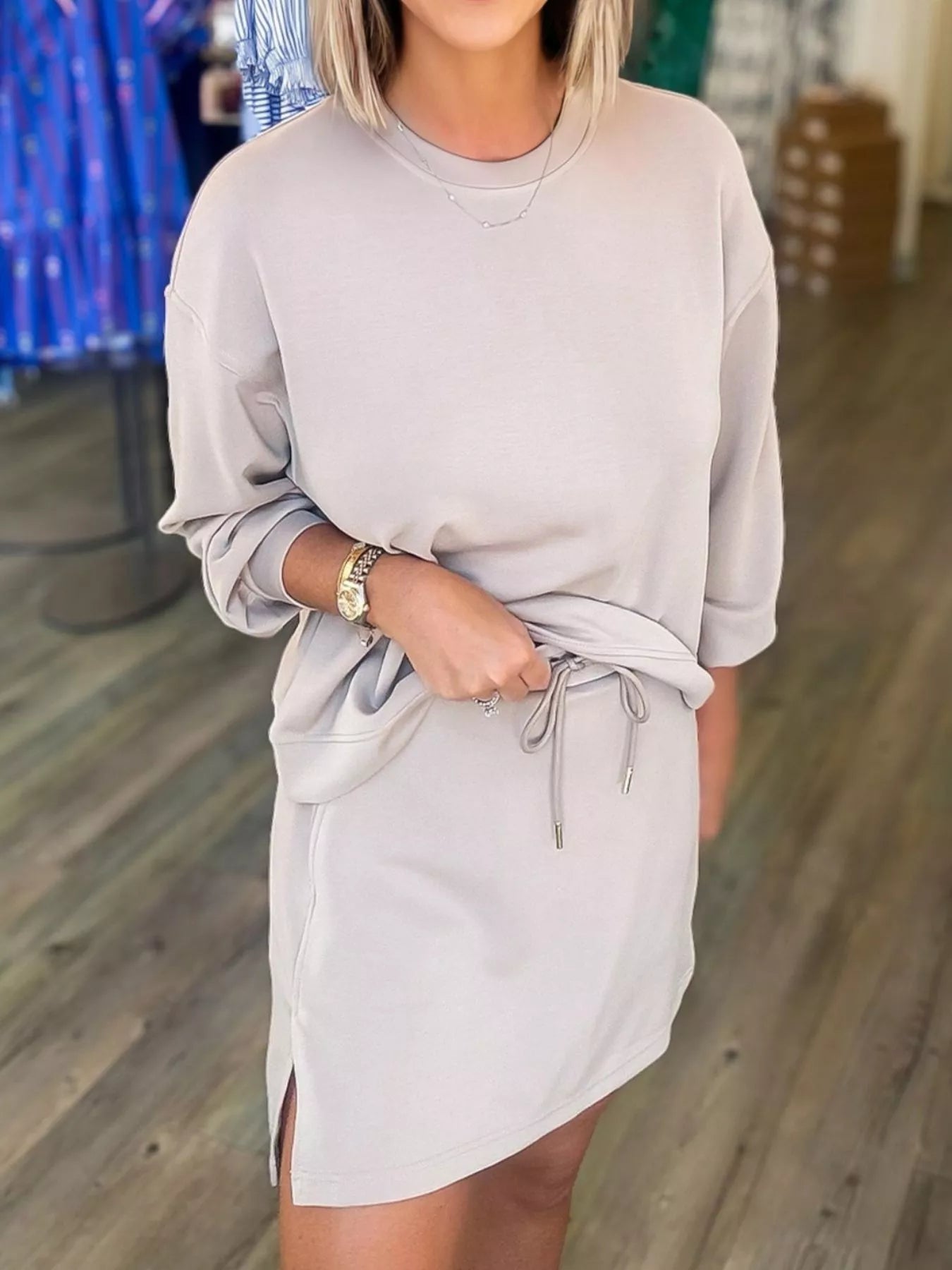 Hazel Blues® | Solid Color Drop Shoulder Pullover and Drawstring Mini Skirt 2pcs Outfit