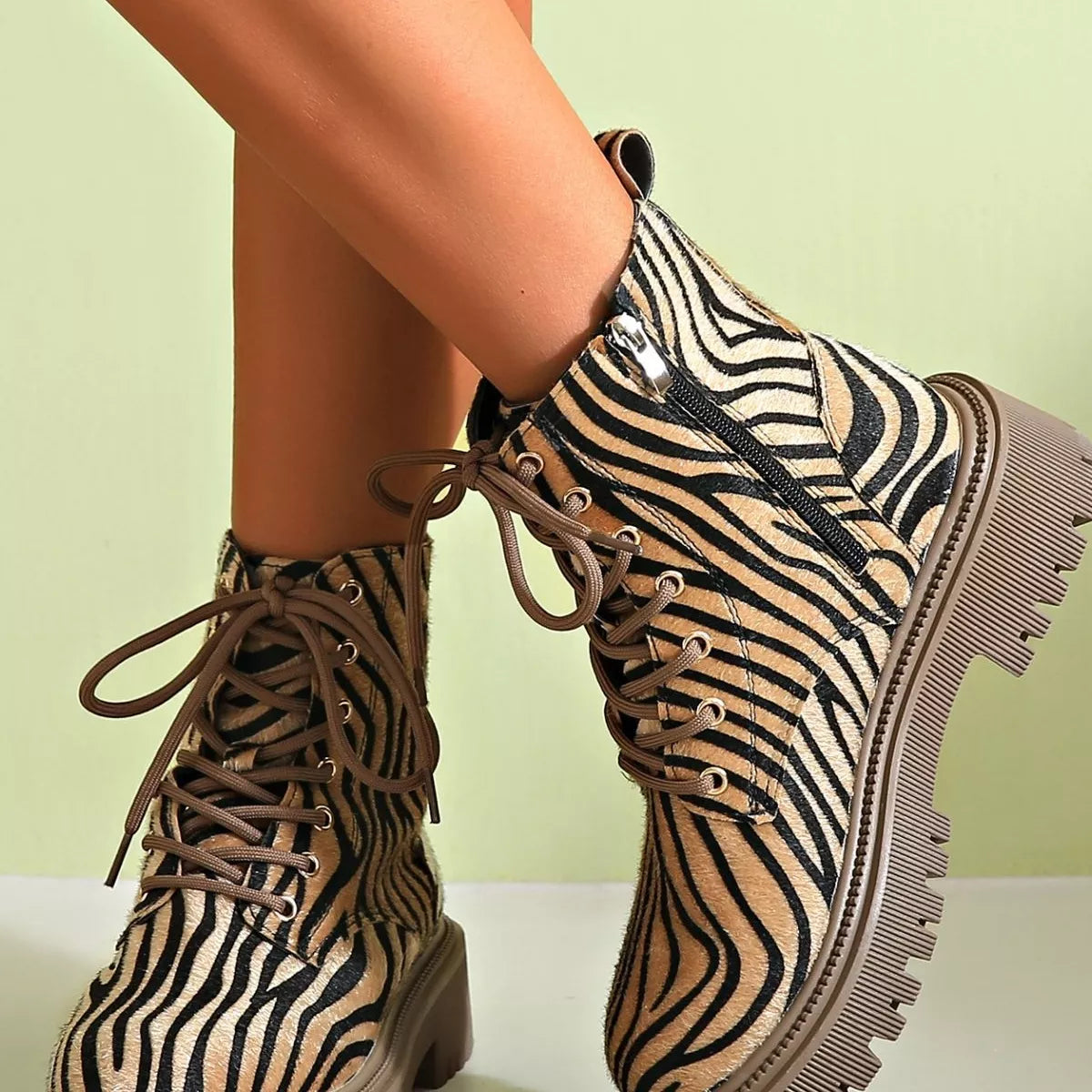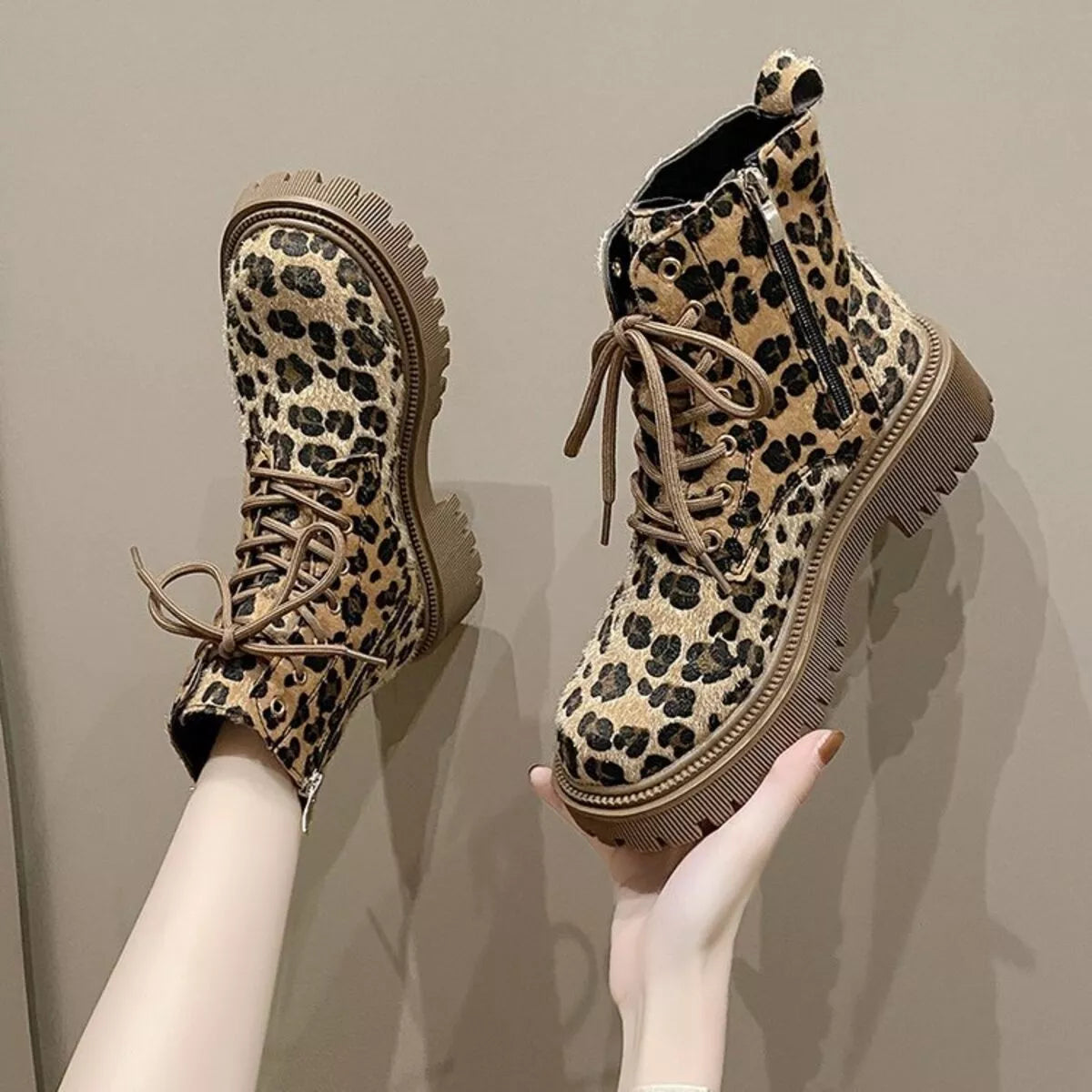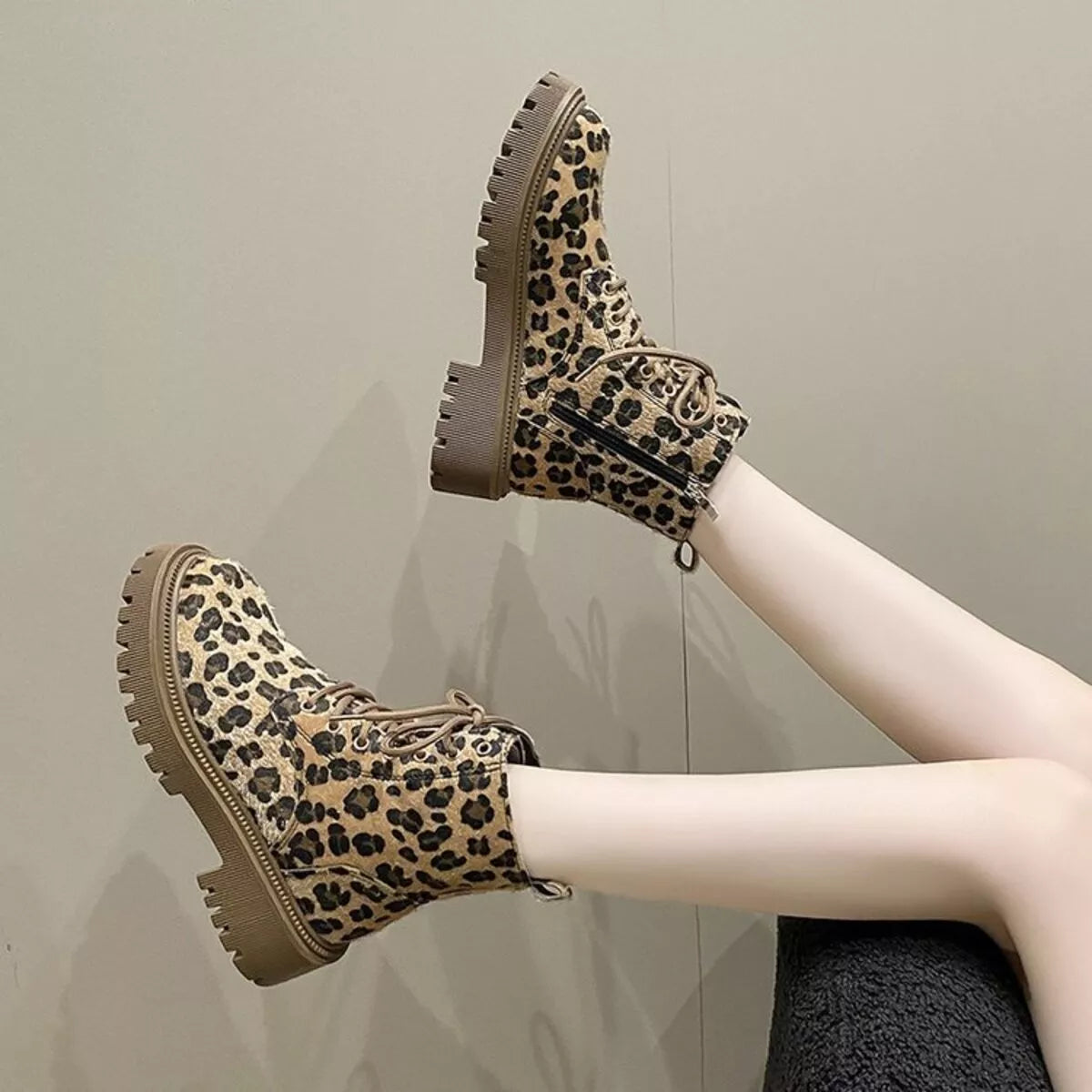 Hazel Blues® | Animal Print Lace-Up Ankle Boots