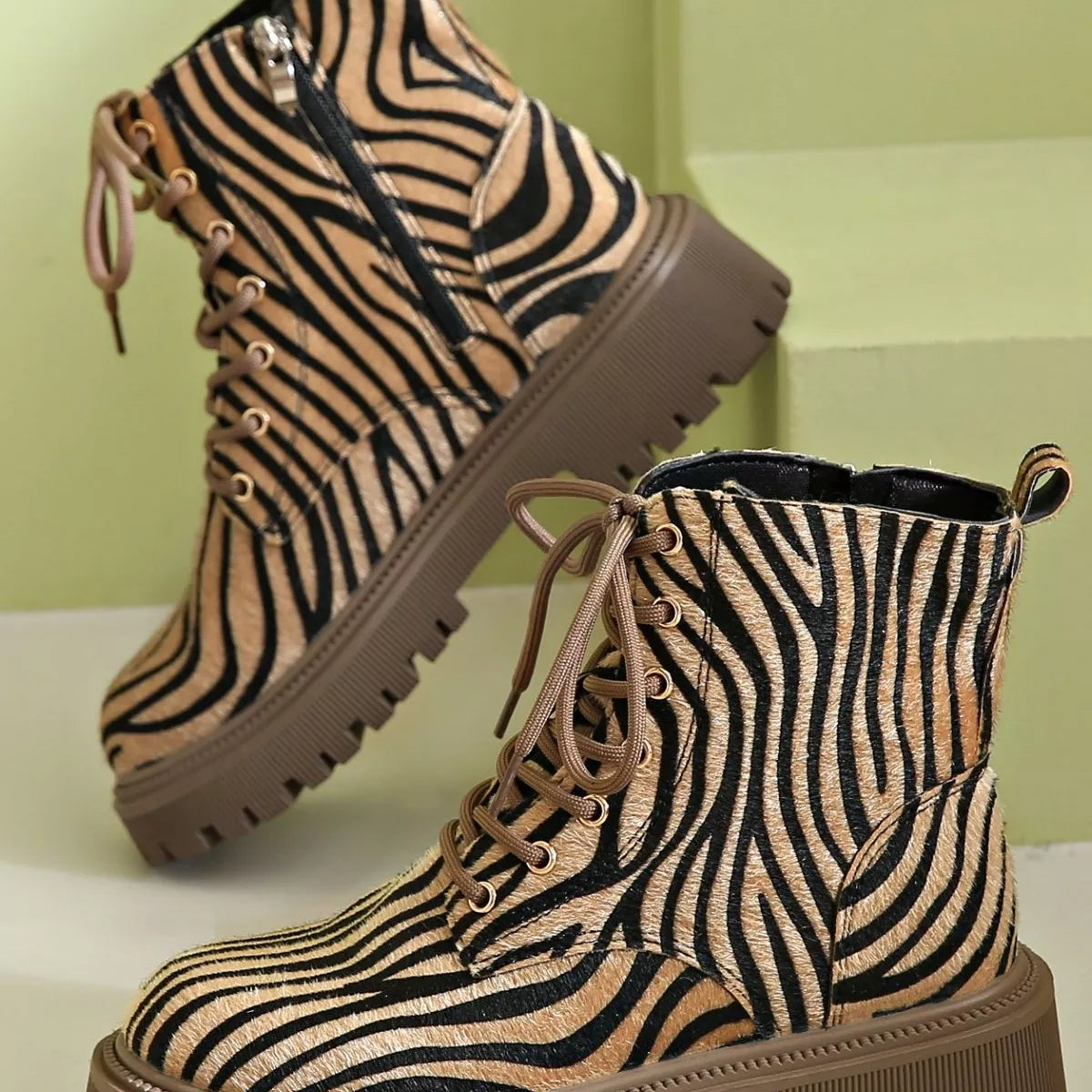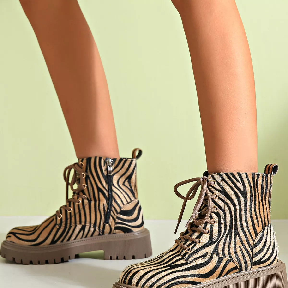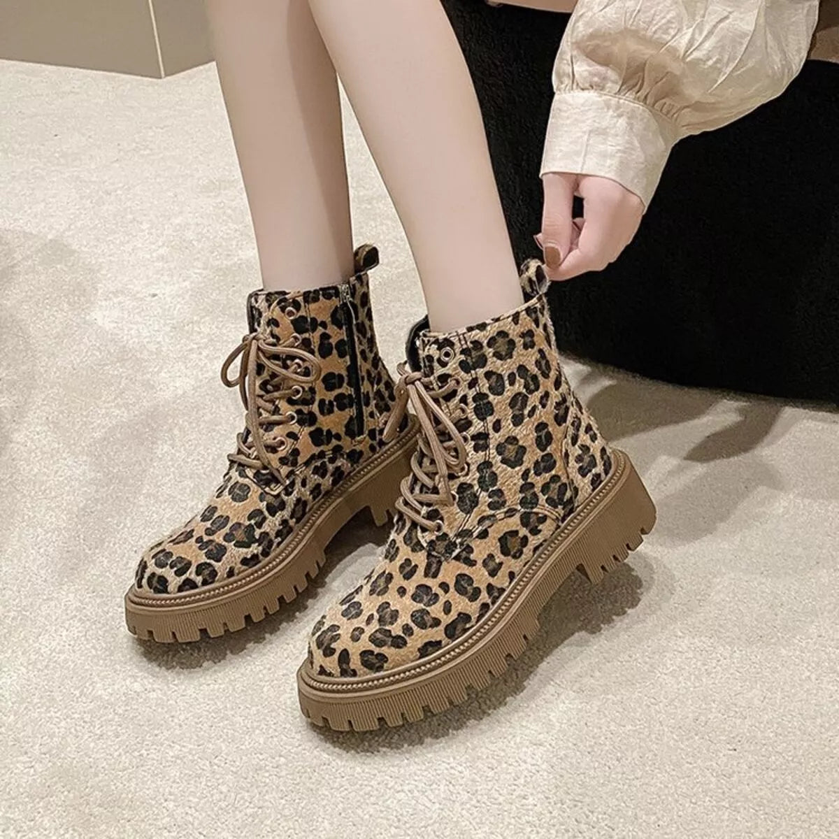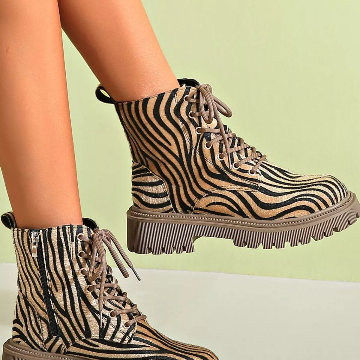 Hazel Blues® | Animal Print Lace-Up Ankle Boots