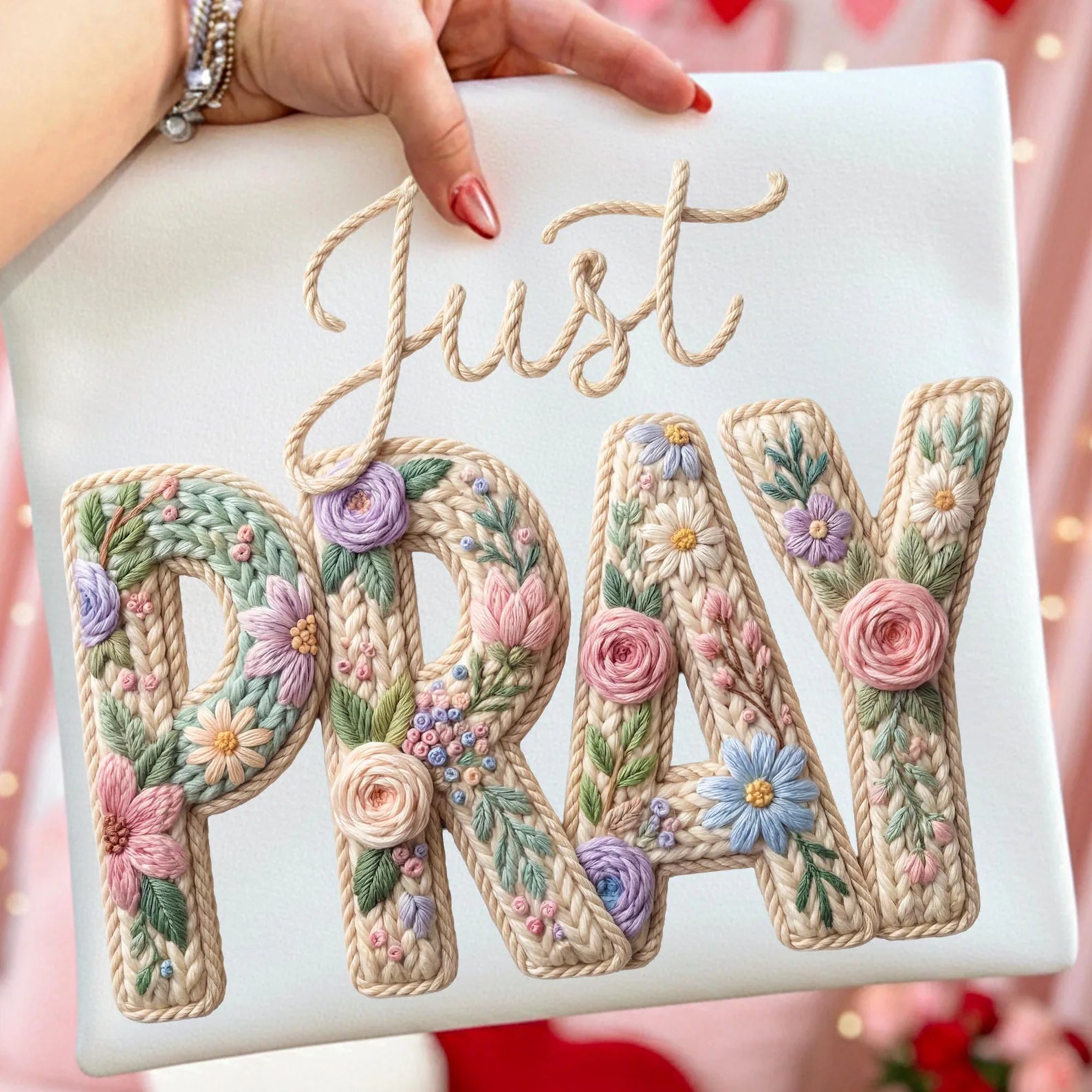 Hazel Blues® | Just Pray in Stitches Graphic Tee and Sweatshirt