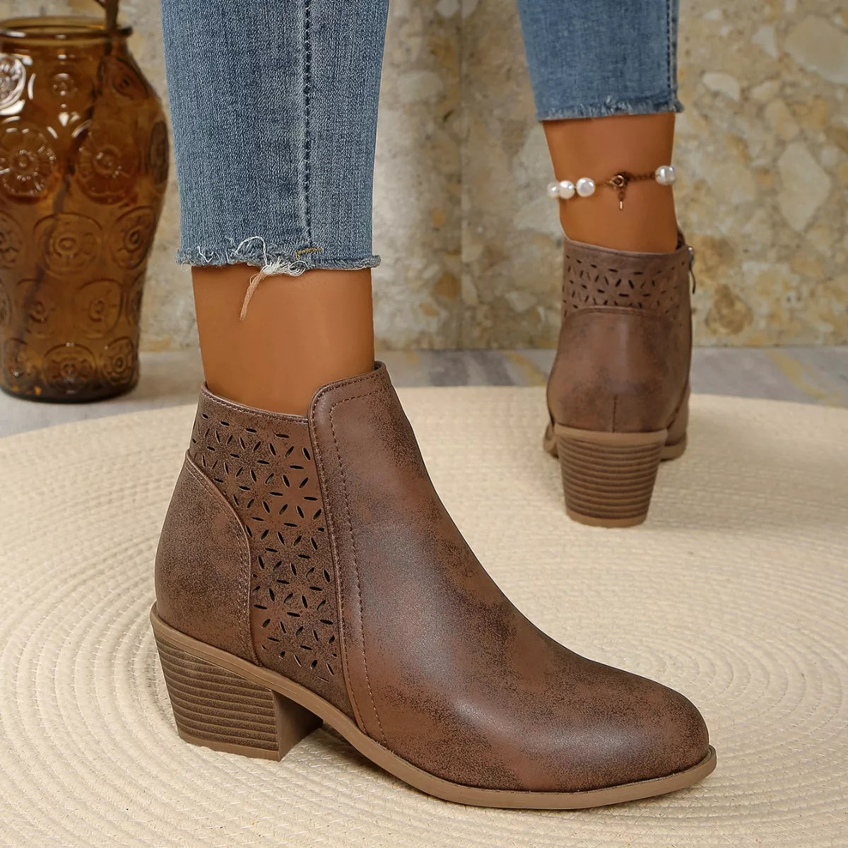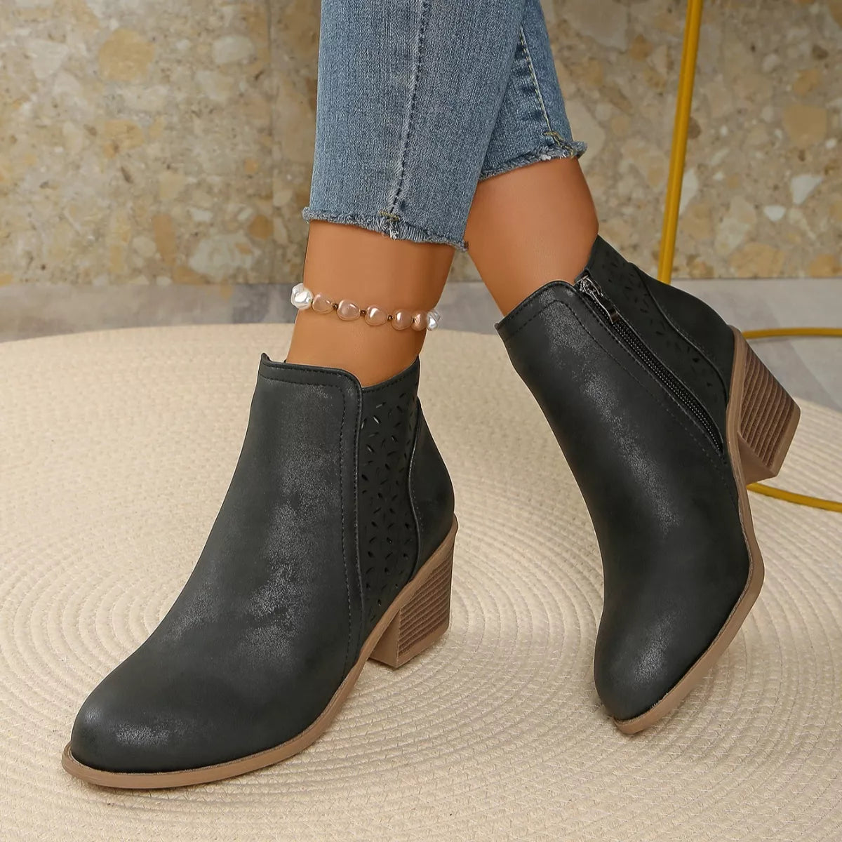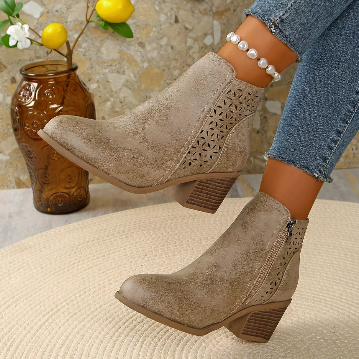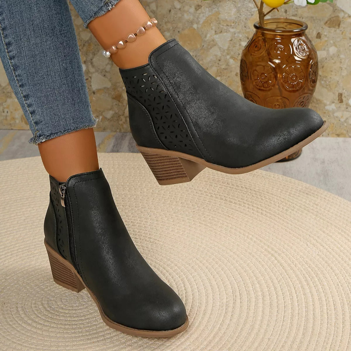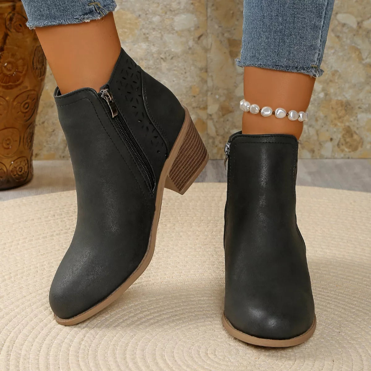 • Heel height:Mid heels