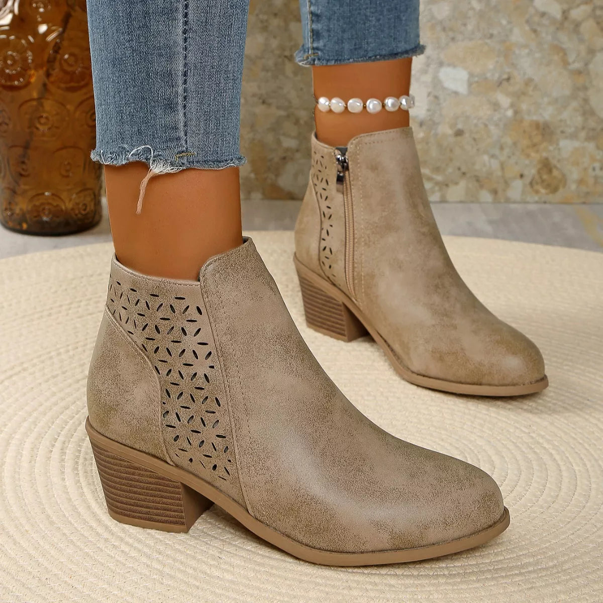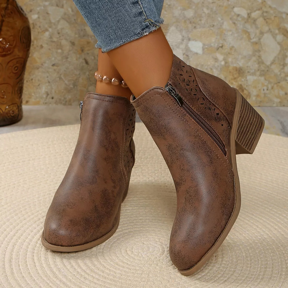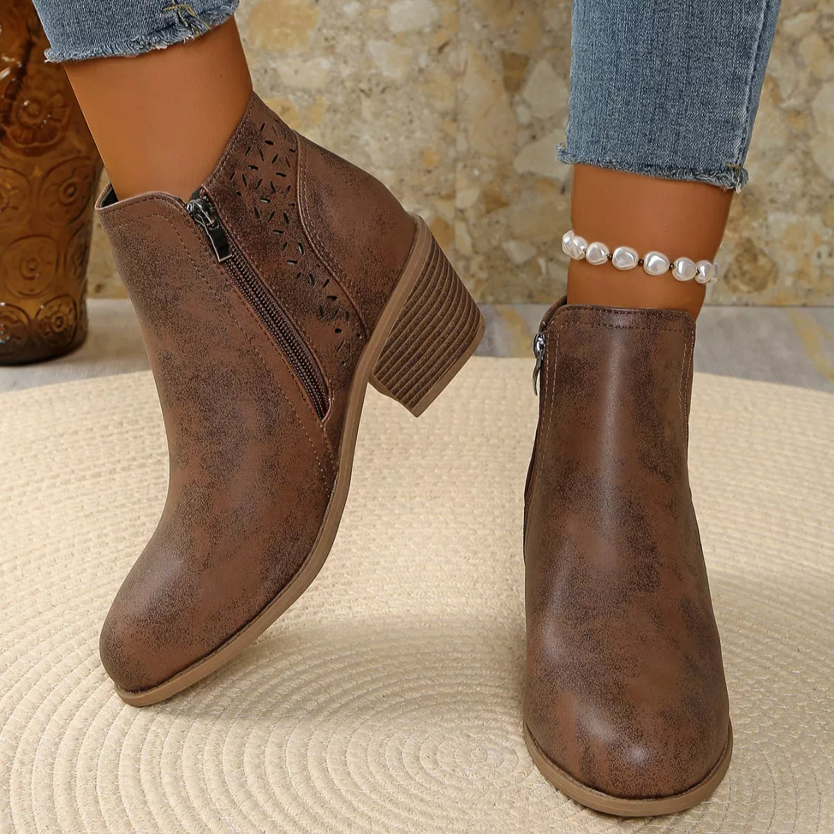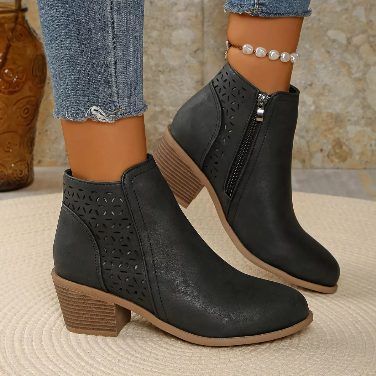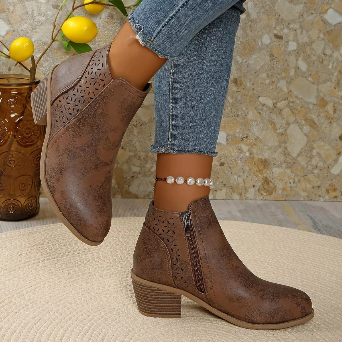 • Heel height:Mid heels