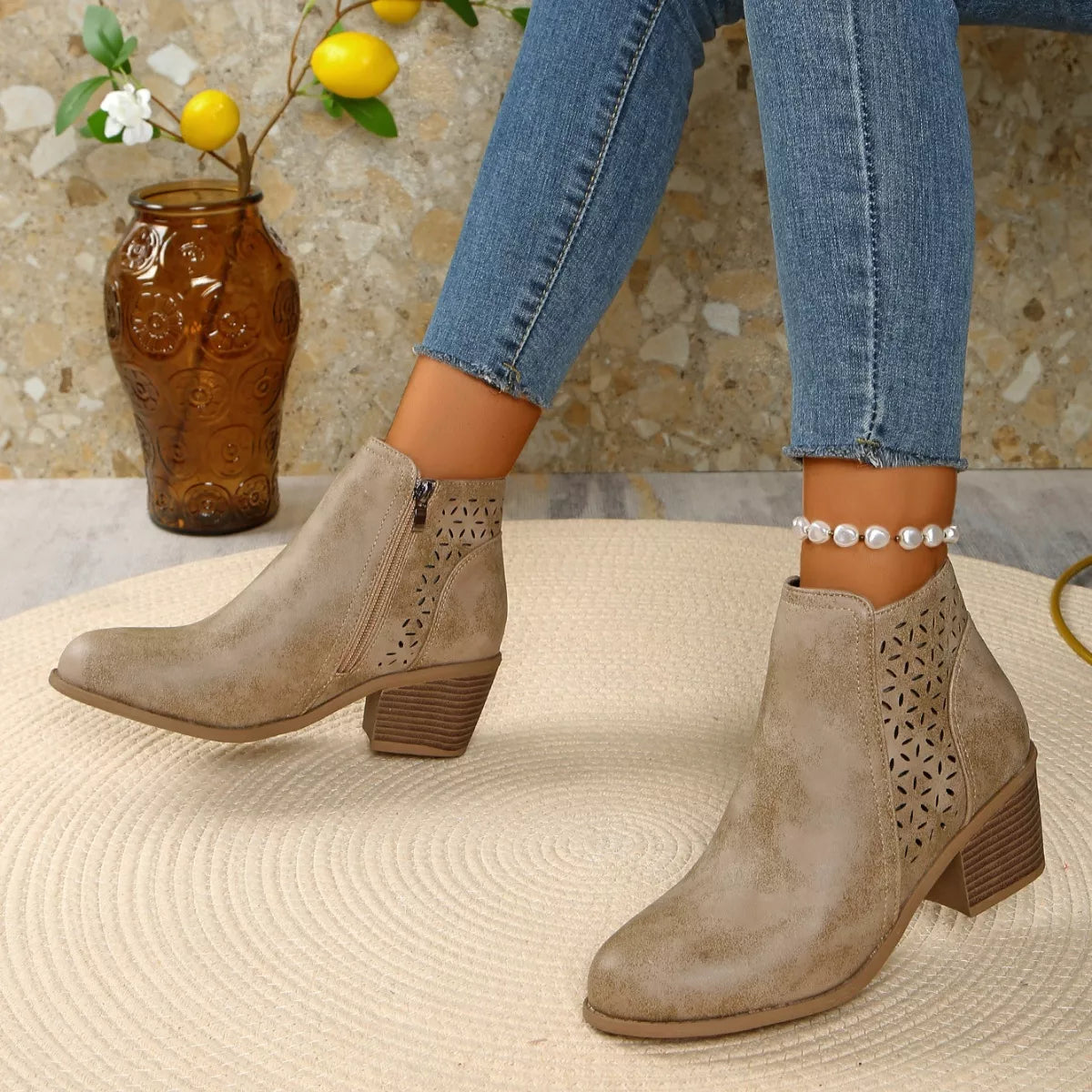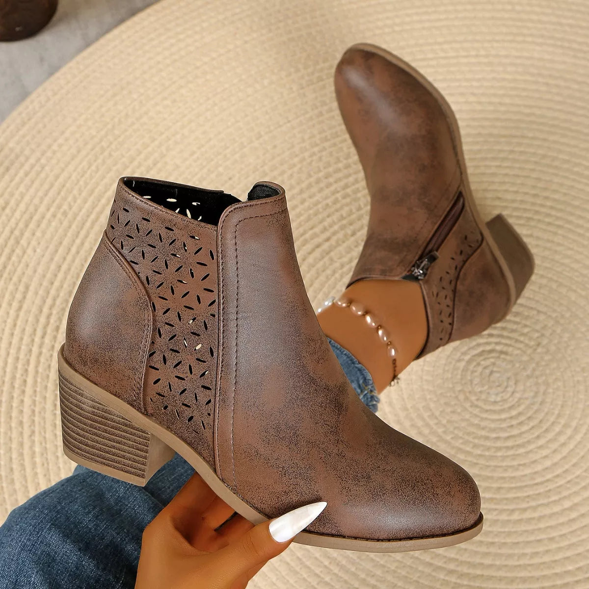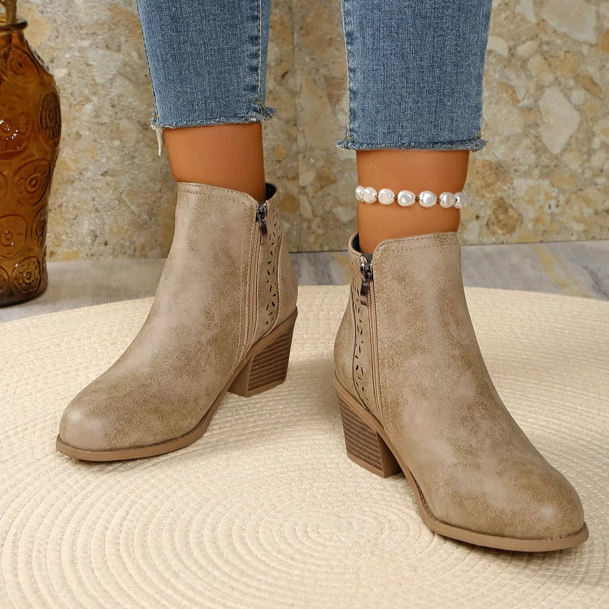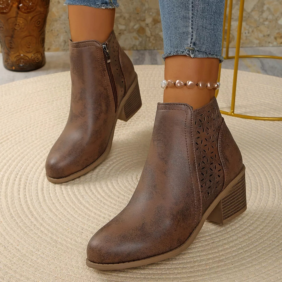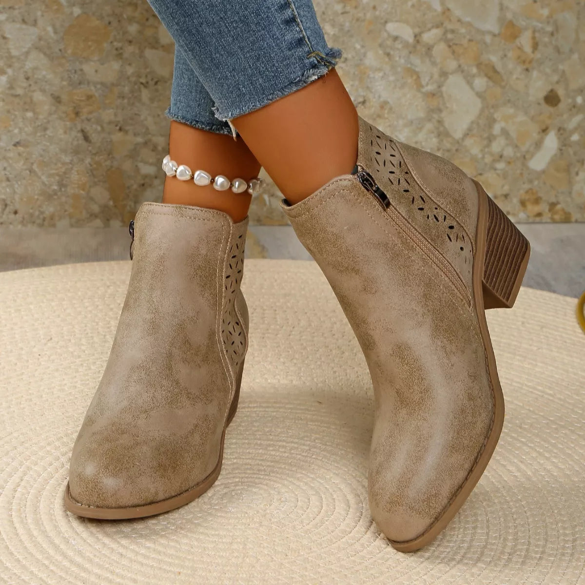 • Heel height:Mid heels