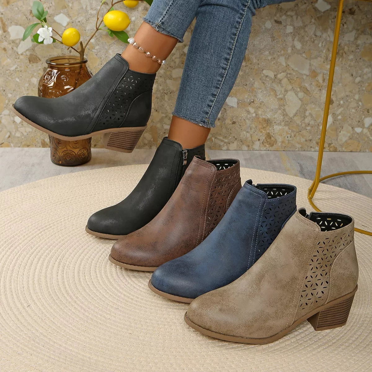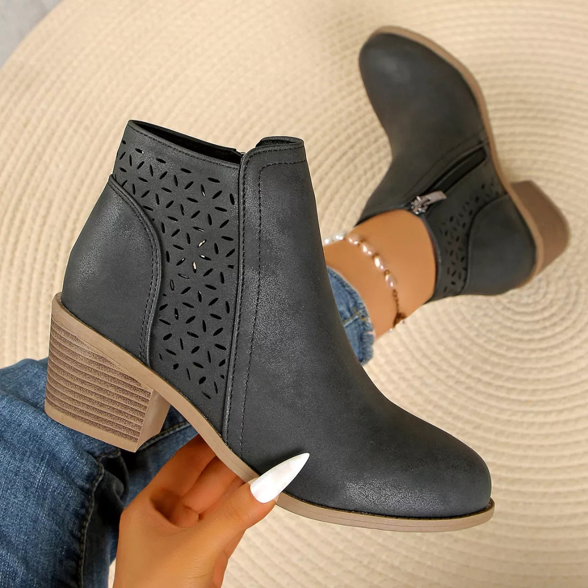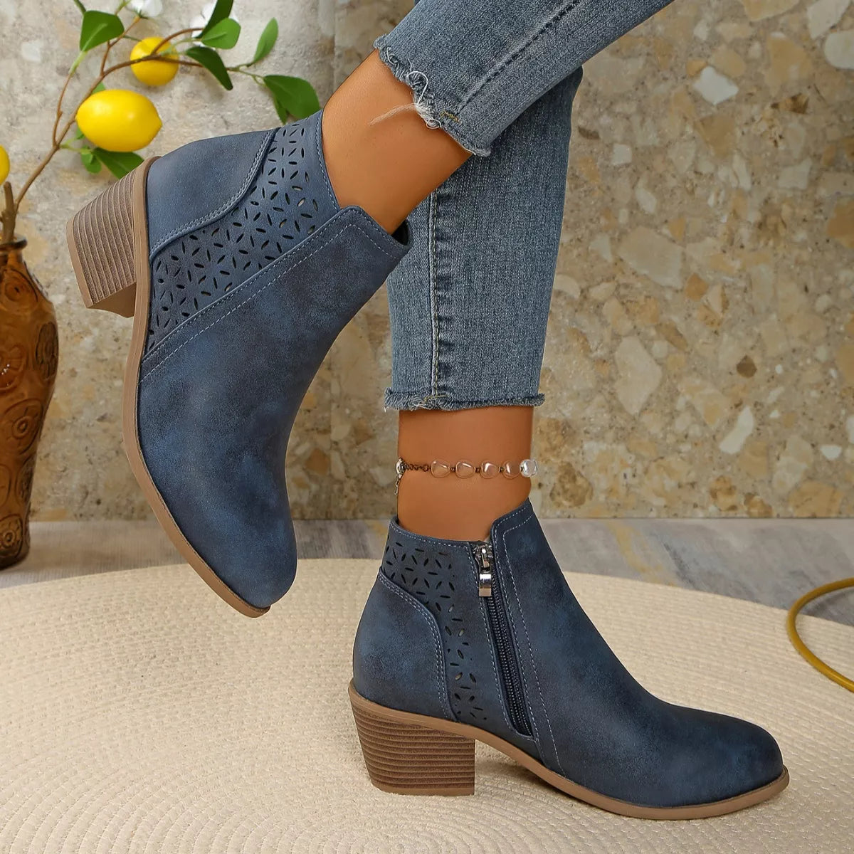 Hazel Blues® | Point Toe Block Heels Boots