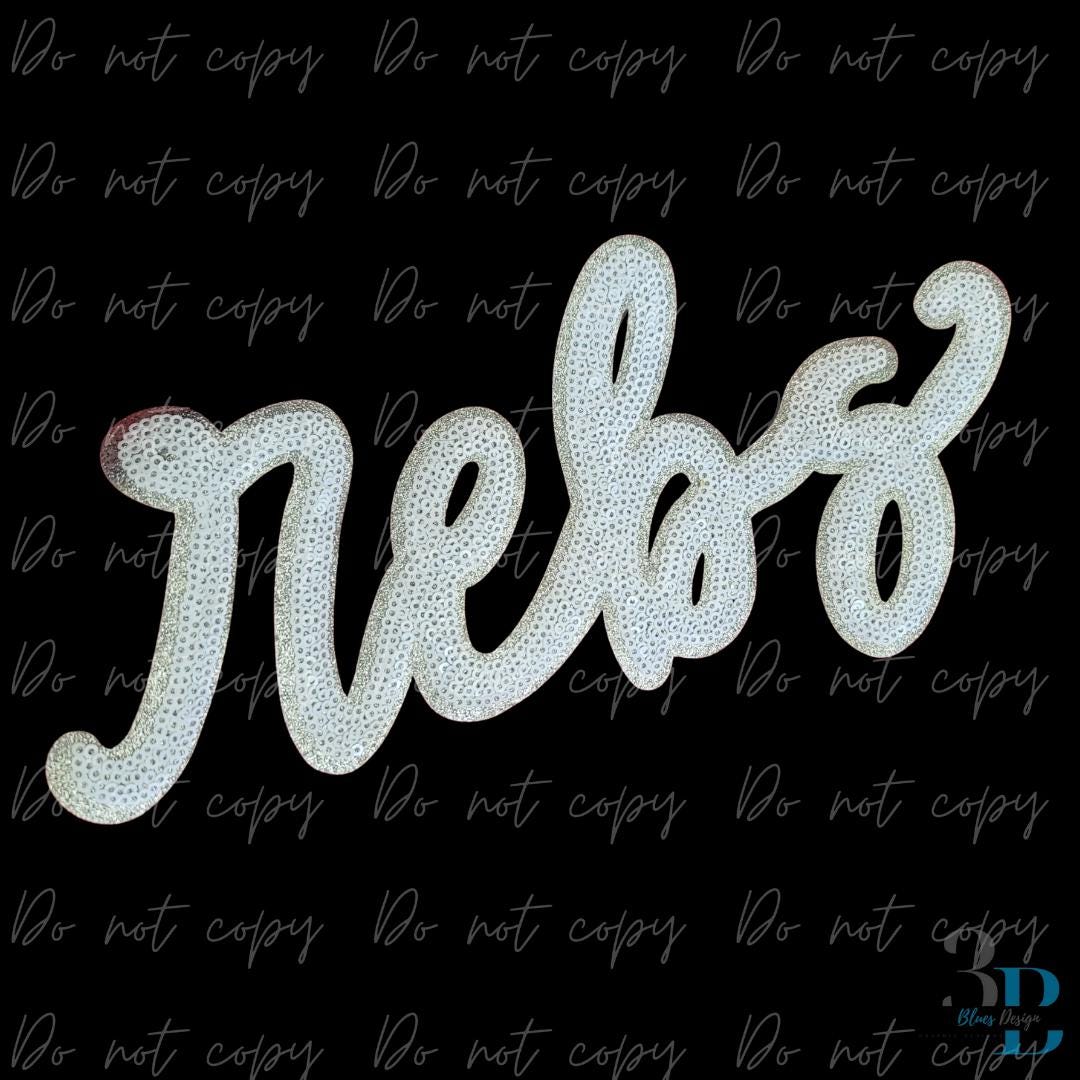 Hazel Blues® | Rebs Sequin Script | Mascot | Iron-on Patch
