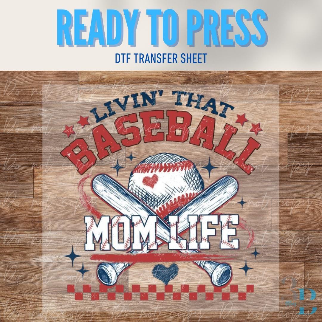 Hazel Blues® | Livin That Baseball Mom Life | Baseball | Game Day | DTF Transfer Sheet Iron On