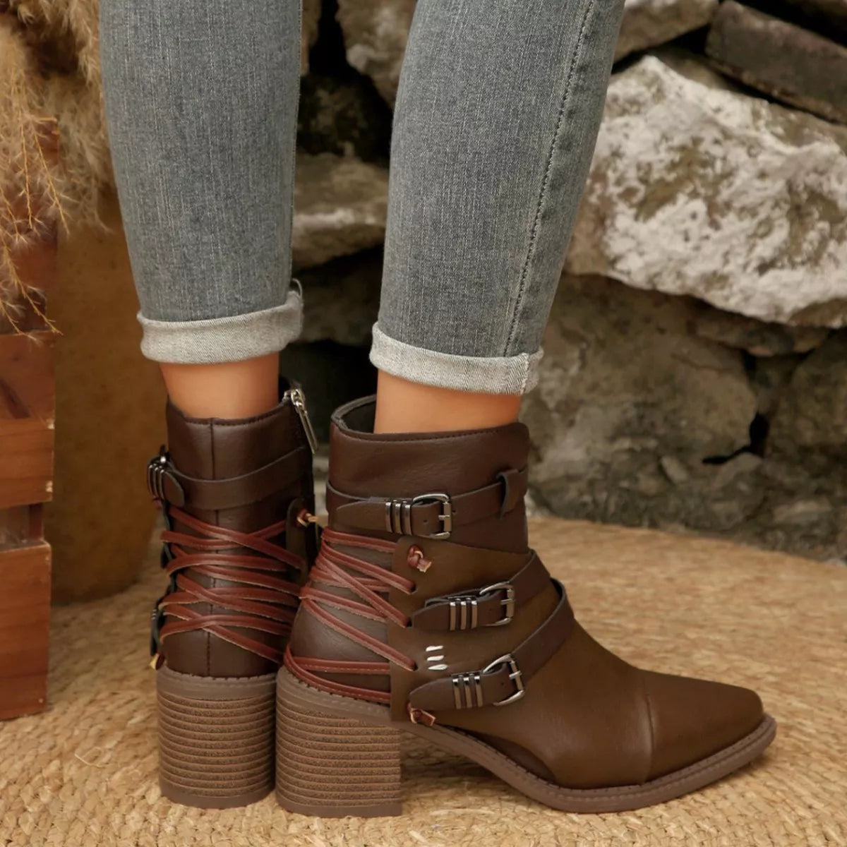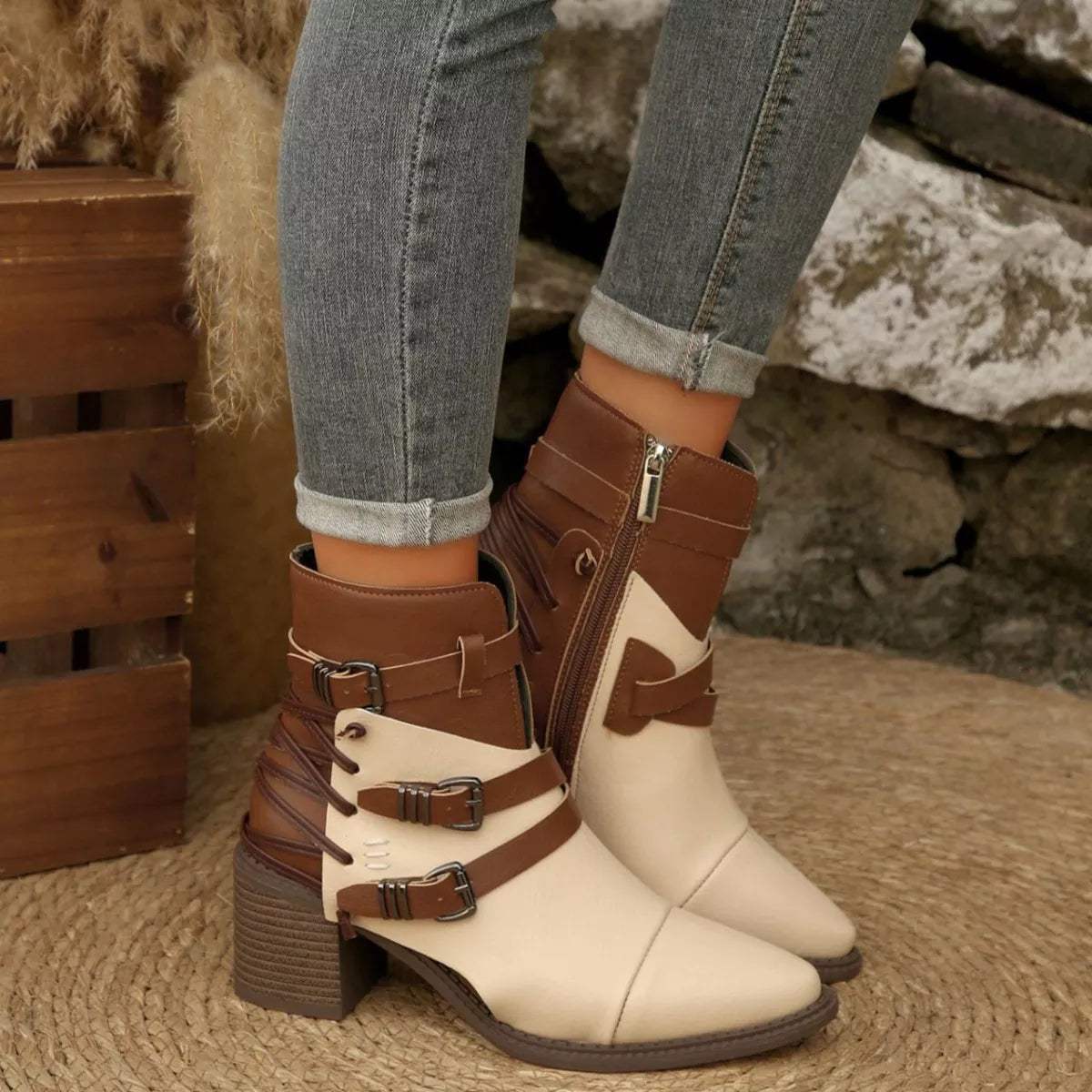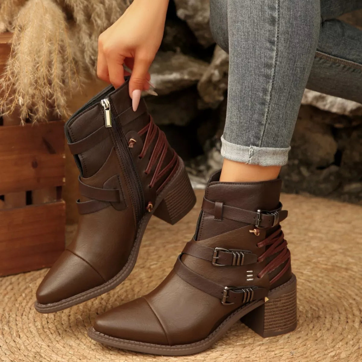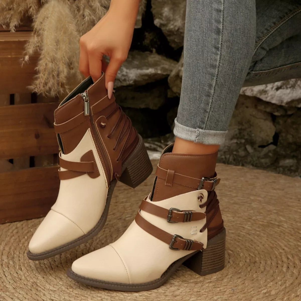 Hazel Blues® | Point Toe Block Heels Boots
