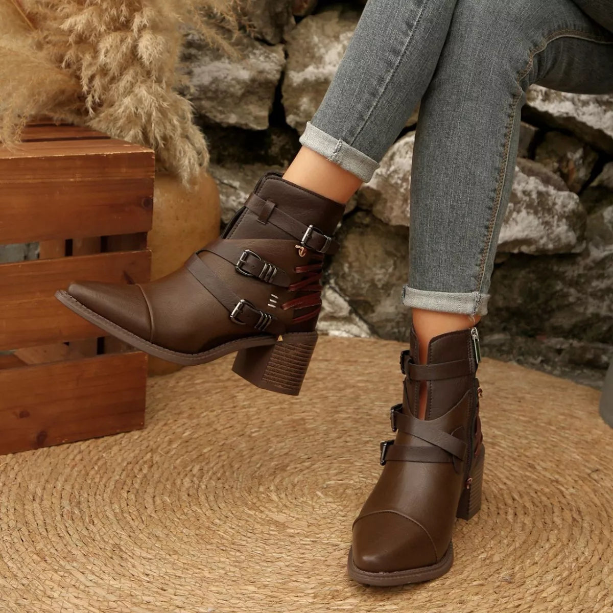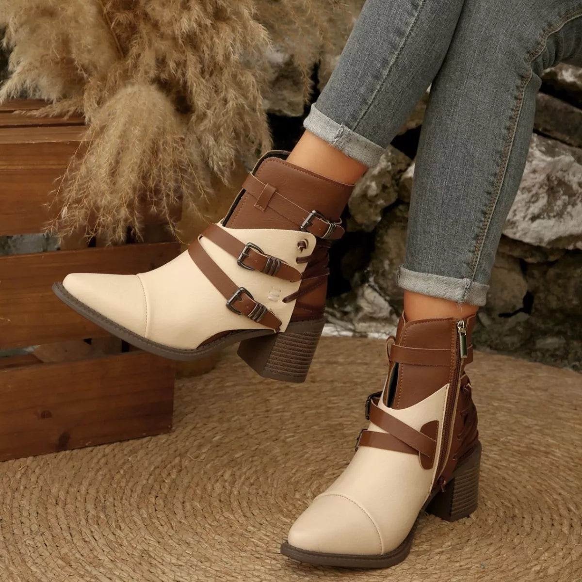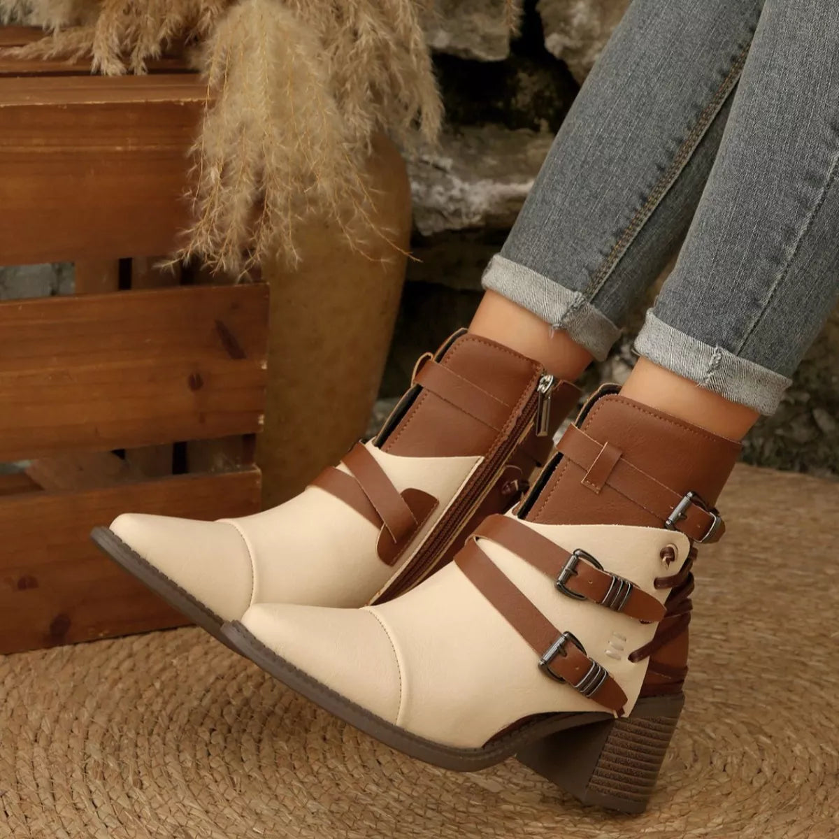 Hazel Blues® | Point Toe Block Heels Boots