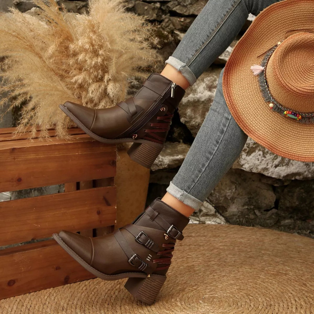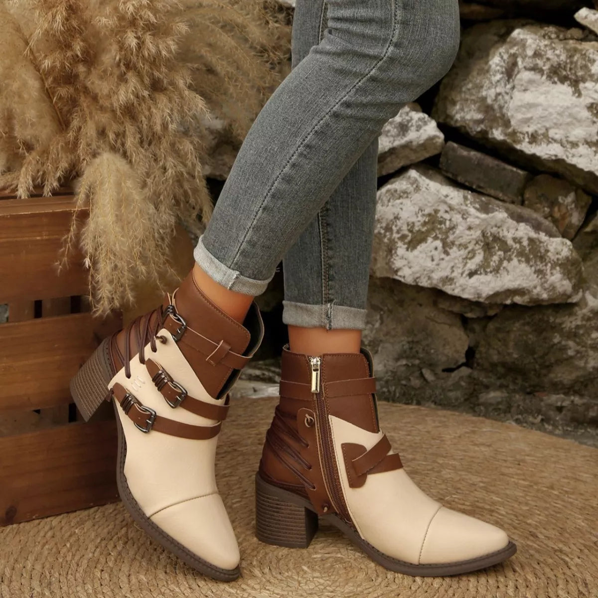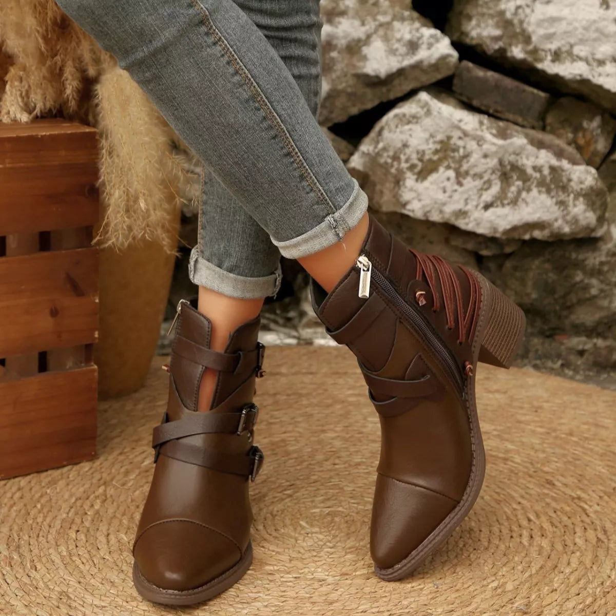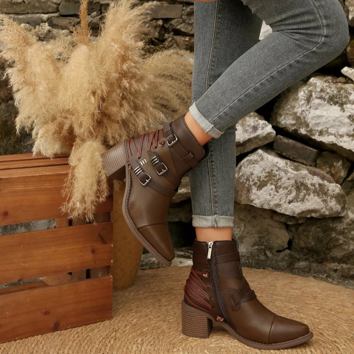 Hazel Blues® | Point Toe Block Heels Boots