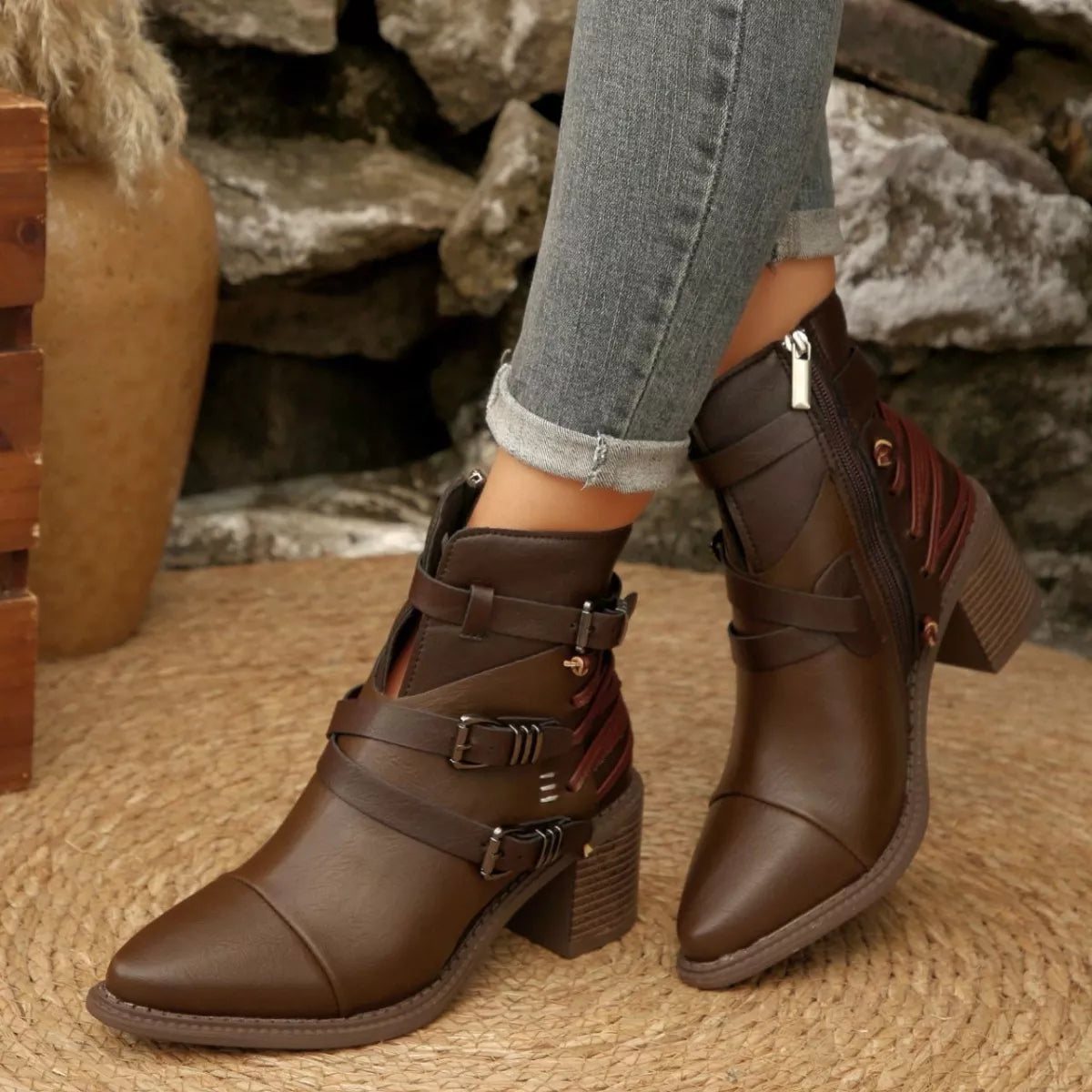 • Heel height:Mid heels