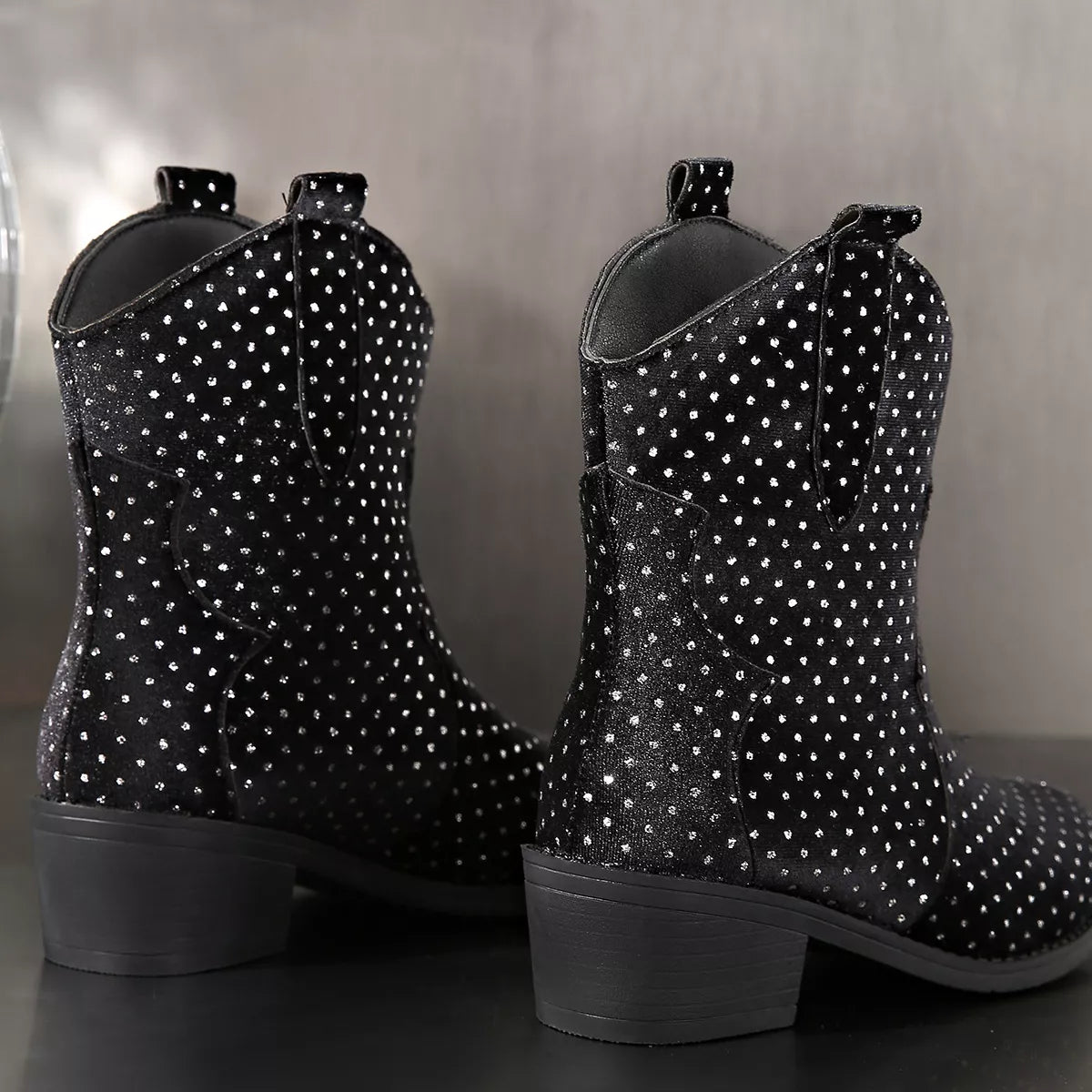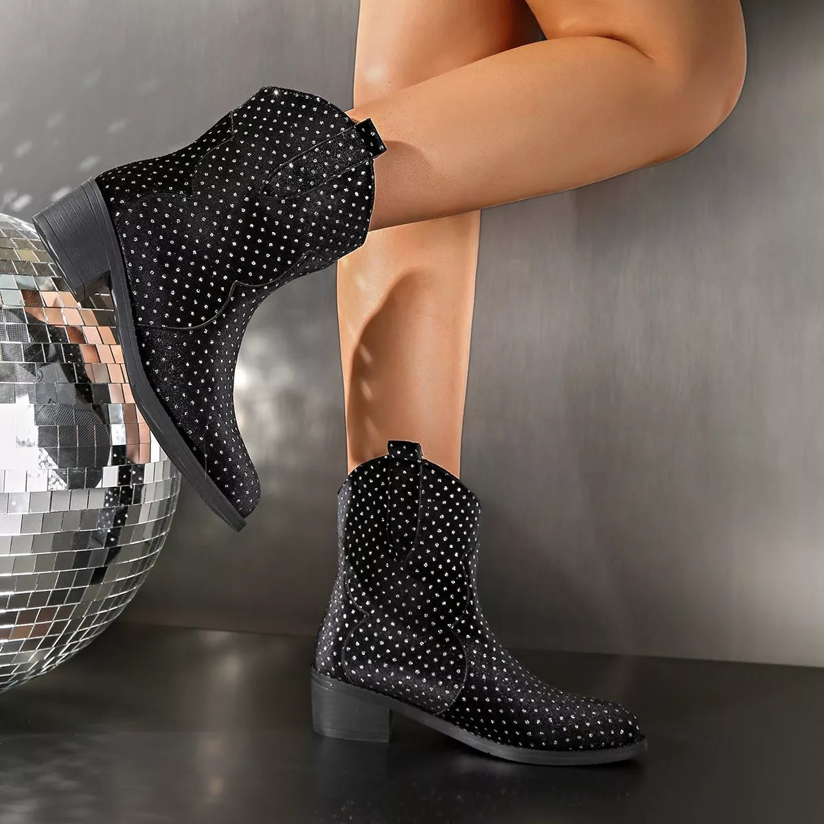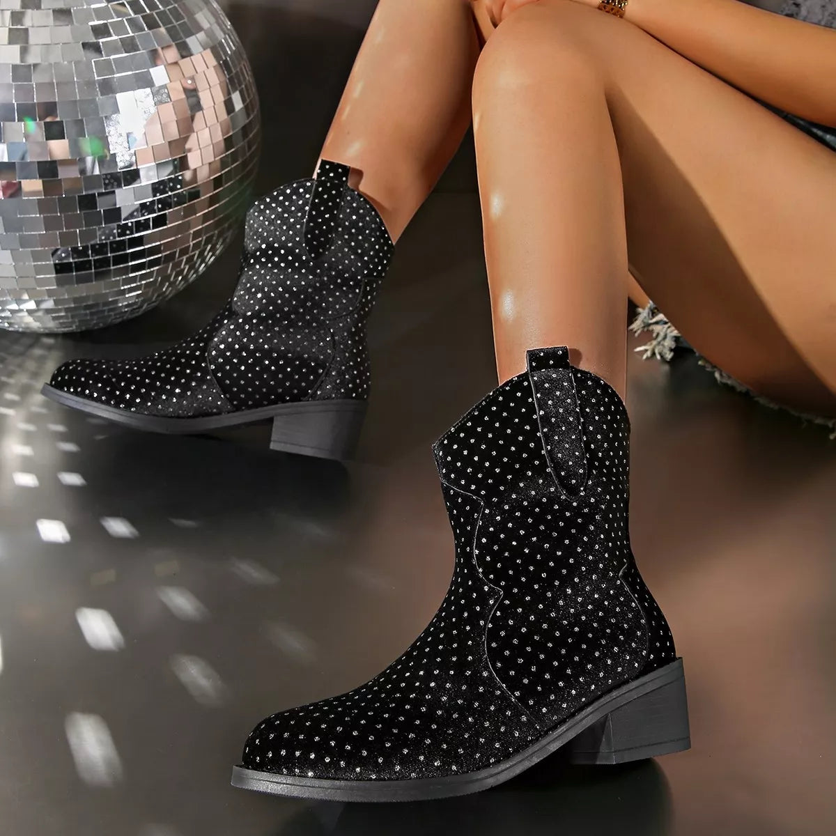 Hazel Blues® | Sparkling Point Toe Block Heels Boots