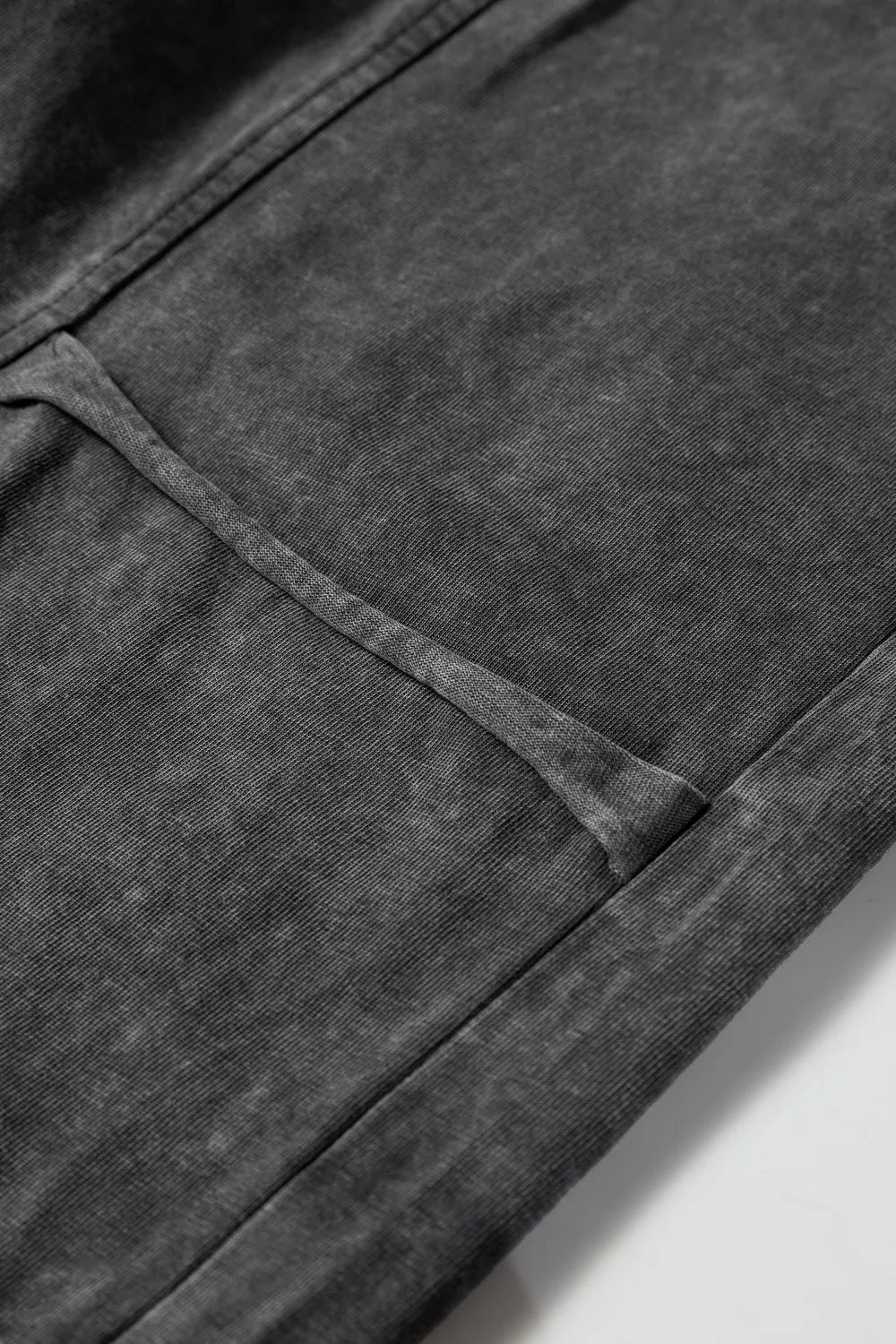 Hazel Blues® | Mineral Wash Lace-up High Waist Raw Hem Patched Pocket Pants