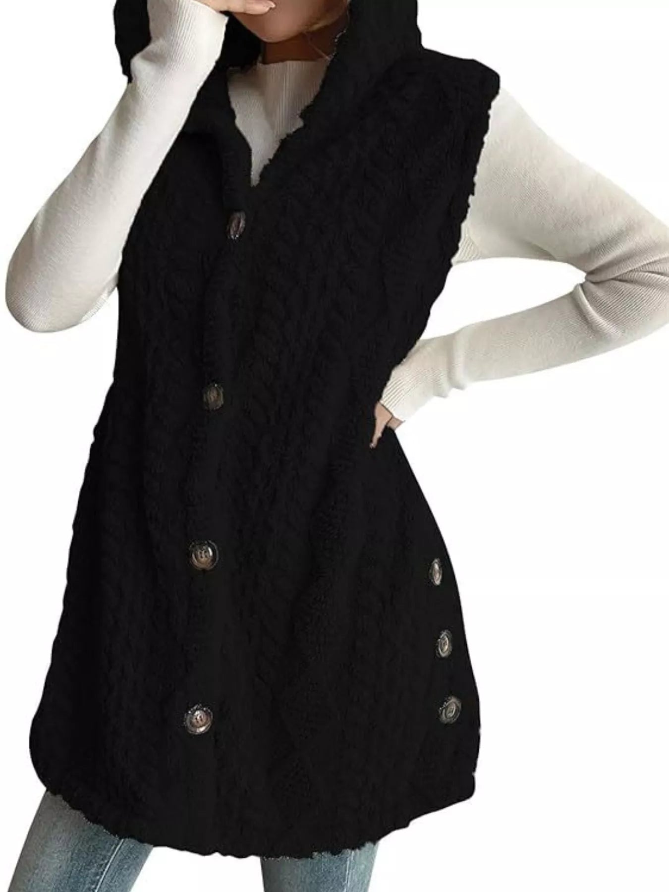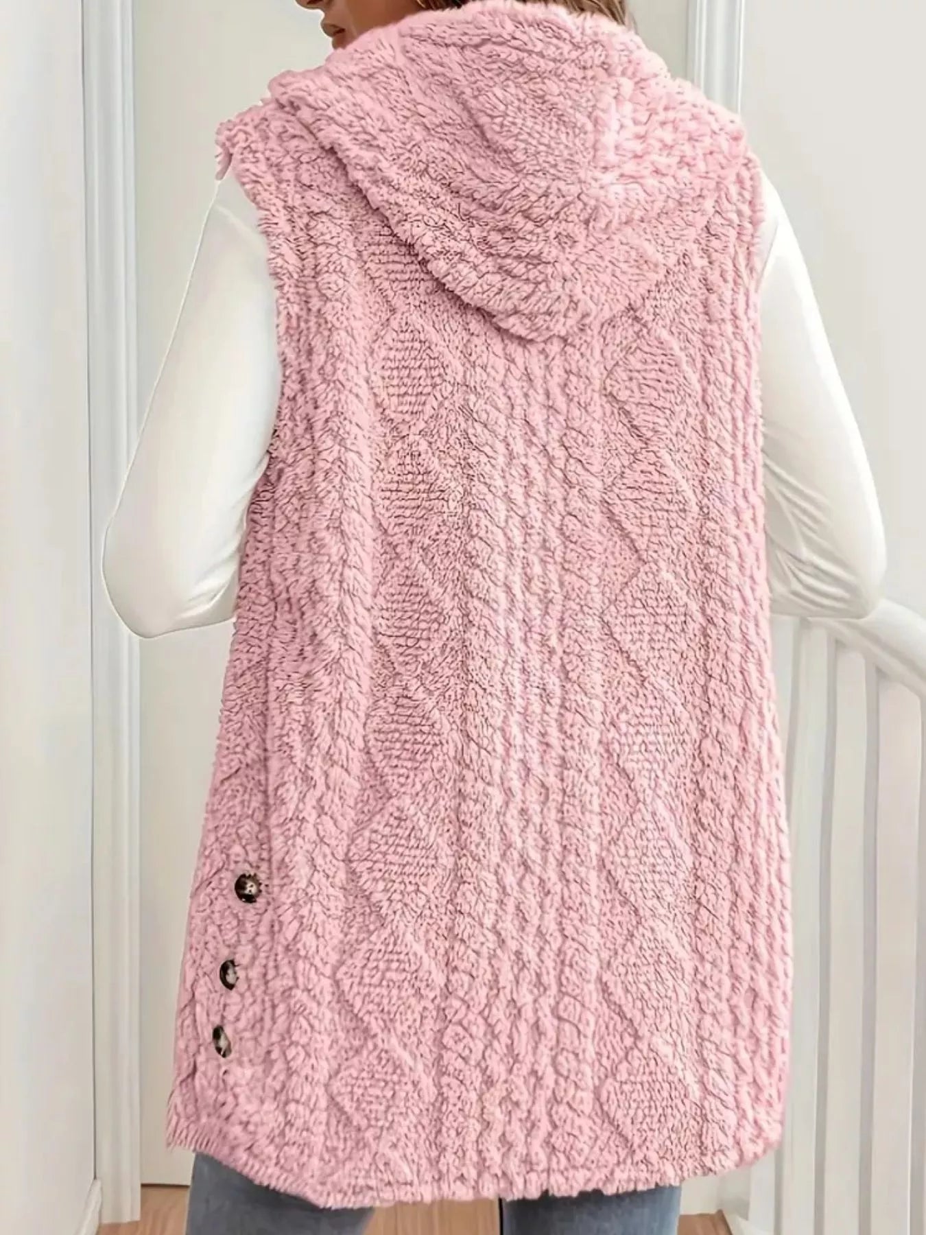 Hazel Blues® | Button-Down Sherpa Hooded Vest Coat