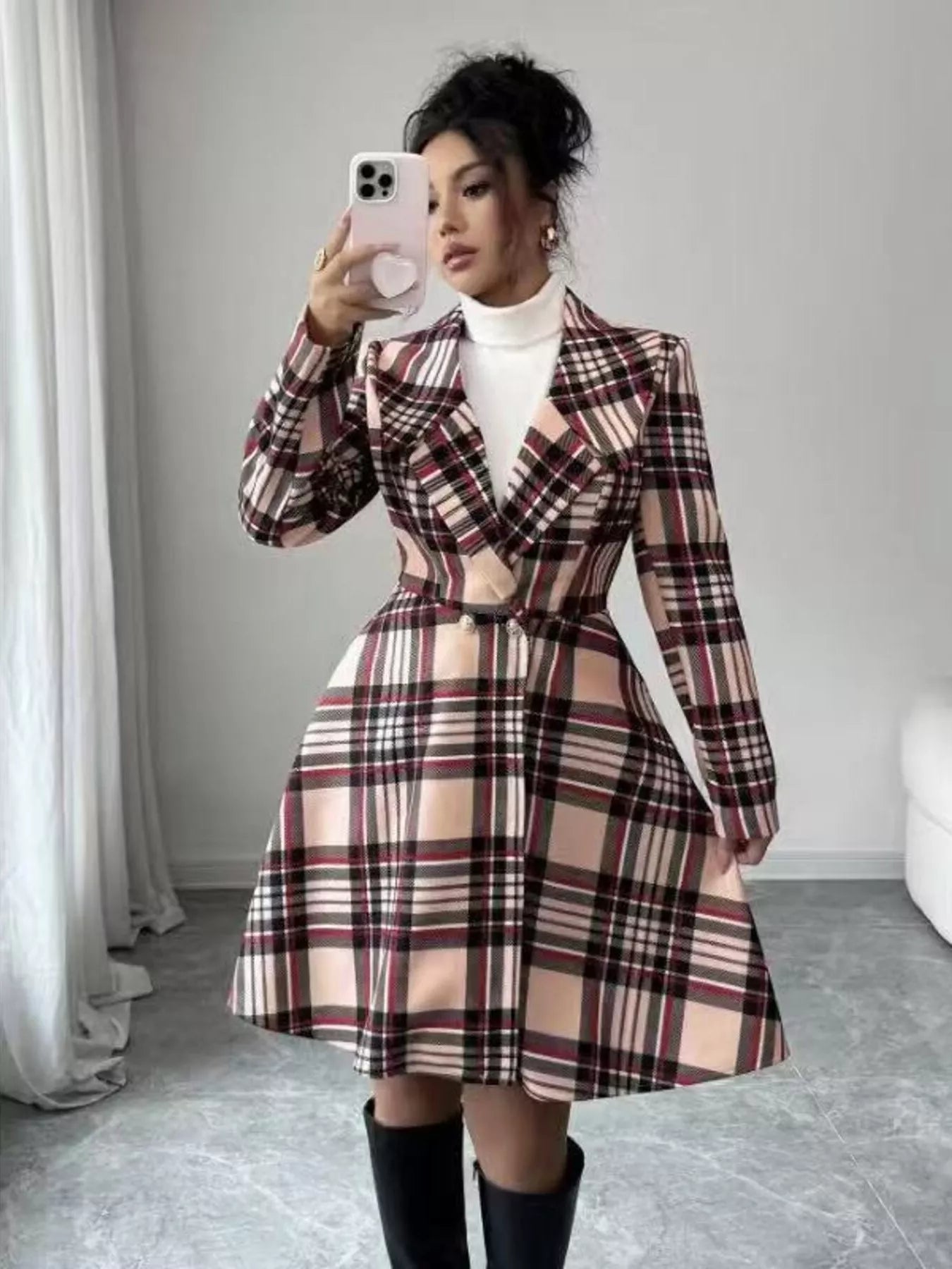 Hazel Blues® | Plaid Button Up Long Sleeve Coat