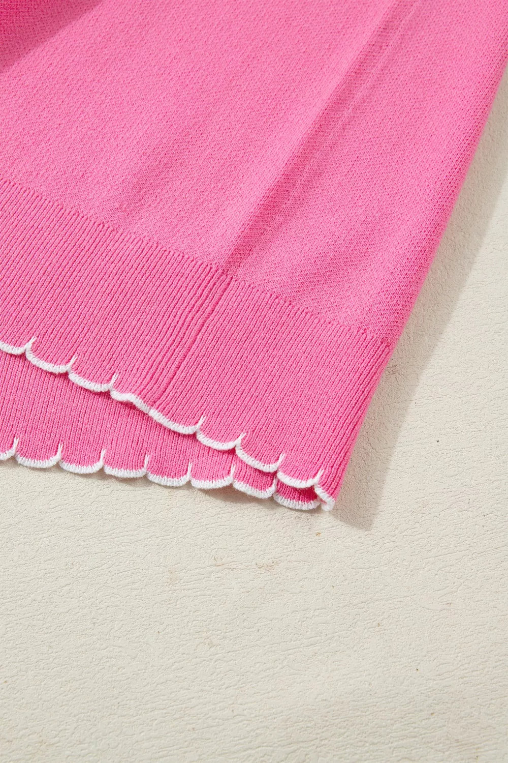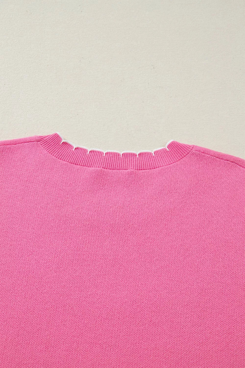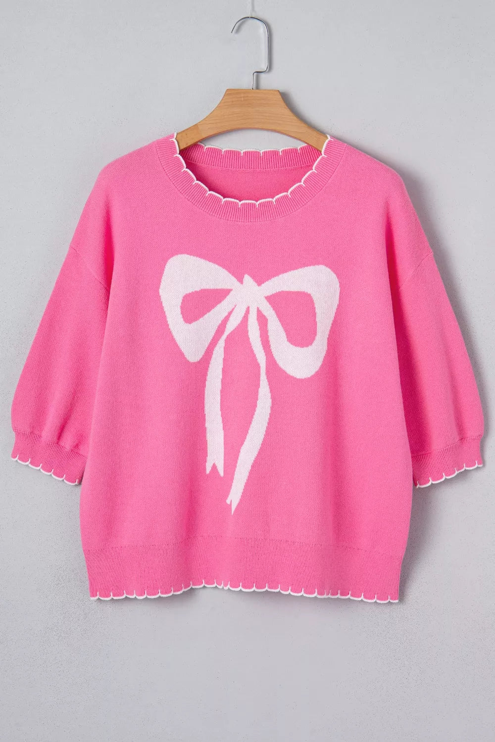 Hazel Blues® | Ribbon Bow Print Contrast Stitch Trim Drop Shoulder Sweater