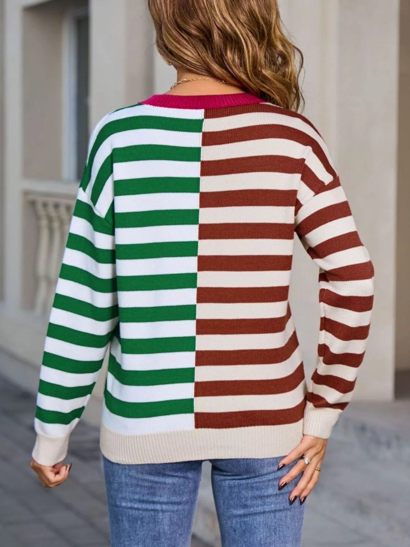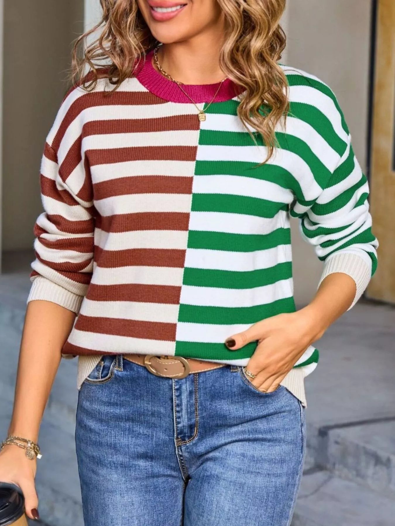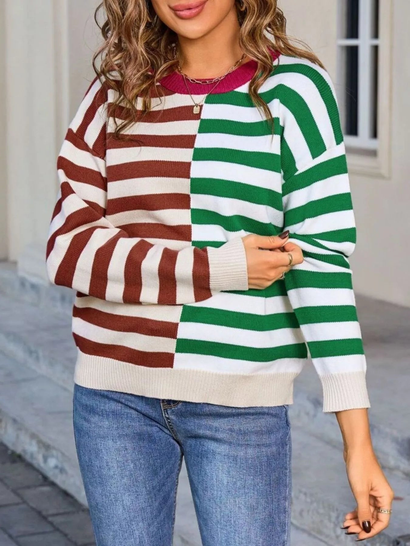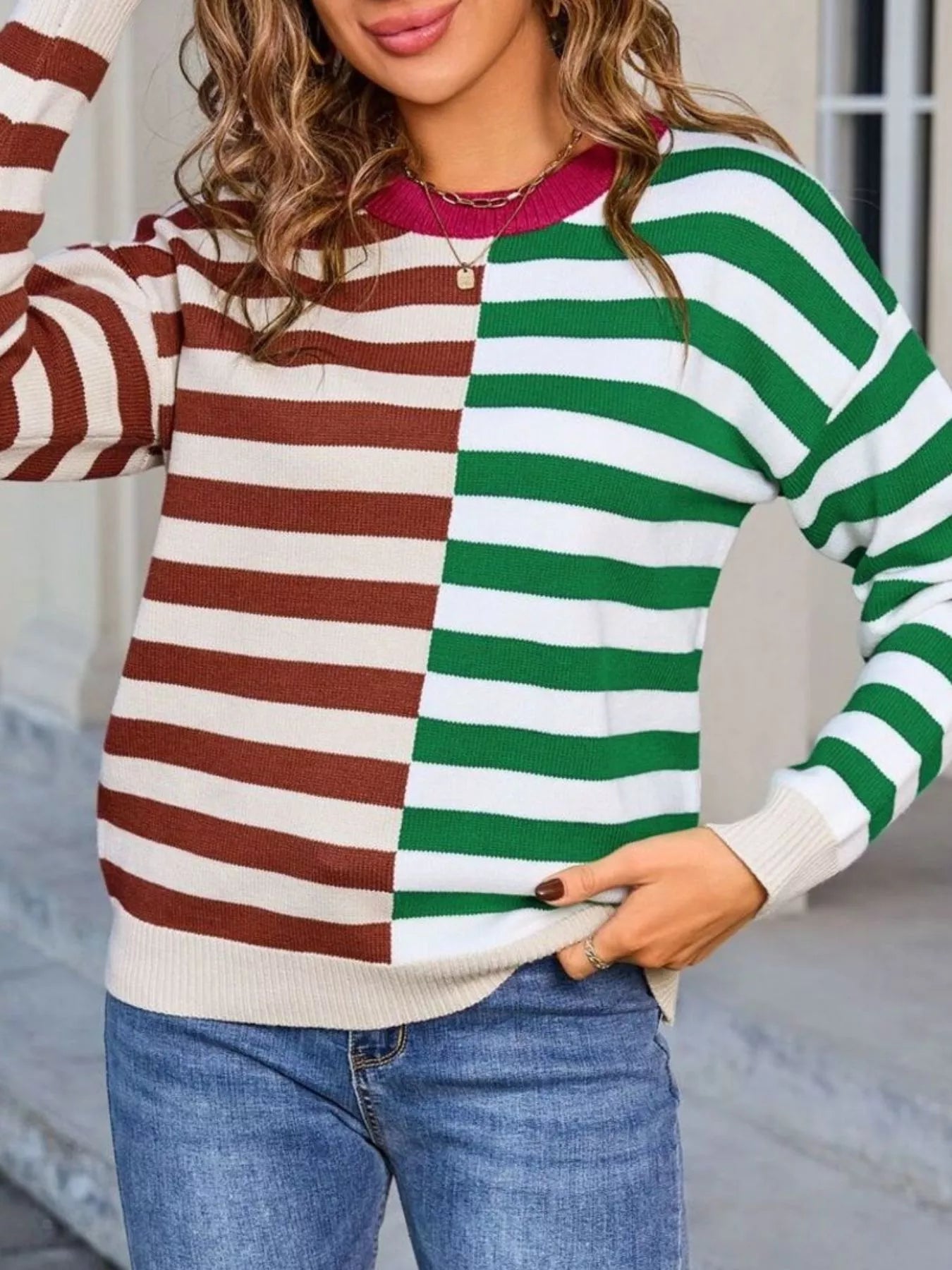 Hazel Blues® | Striped Round Neck Long Sleeve Sweater