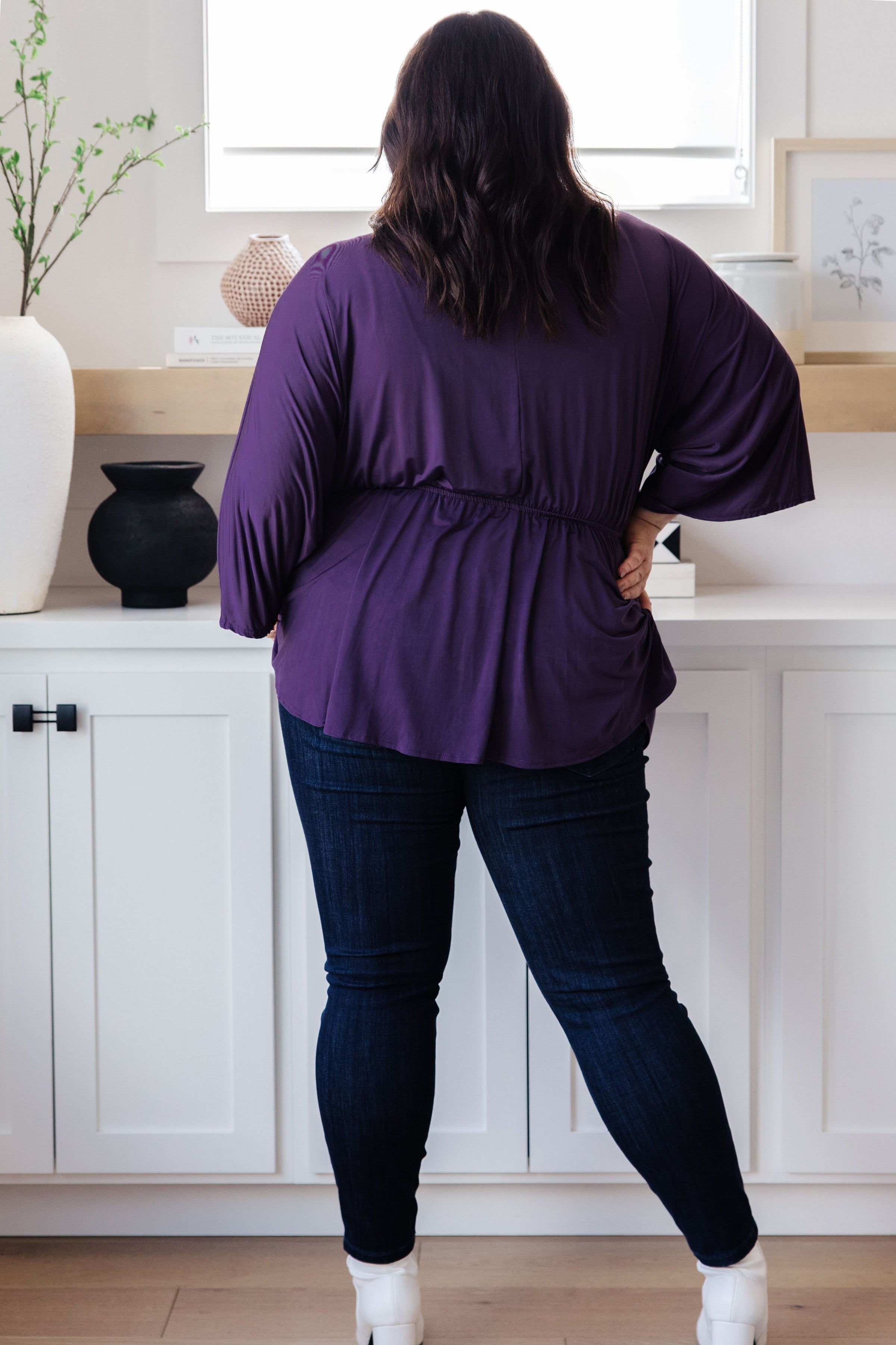 Freshen up your wardrobe with this Love On The Line V-Neck Peplum Blouse! Made from a slinky knit, this beautiful purple blouse features a v-neckline, dolman sleeves, and a flattering peplum style. Look your best with this stylish and comfortable blouse!