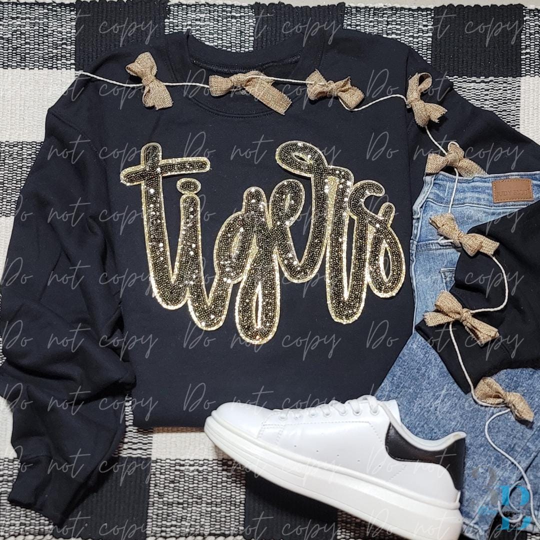 XL Tigers Script Sequin Black & Gold Glitter Iron-on Patch