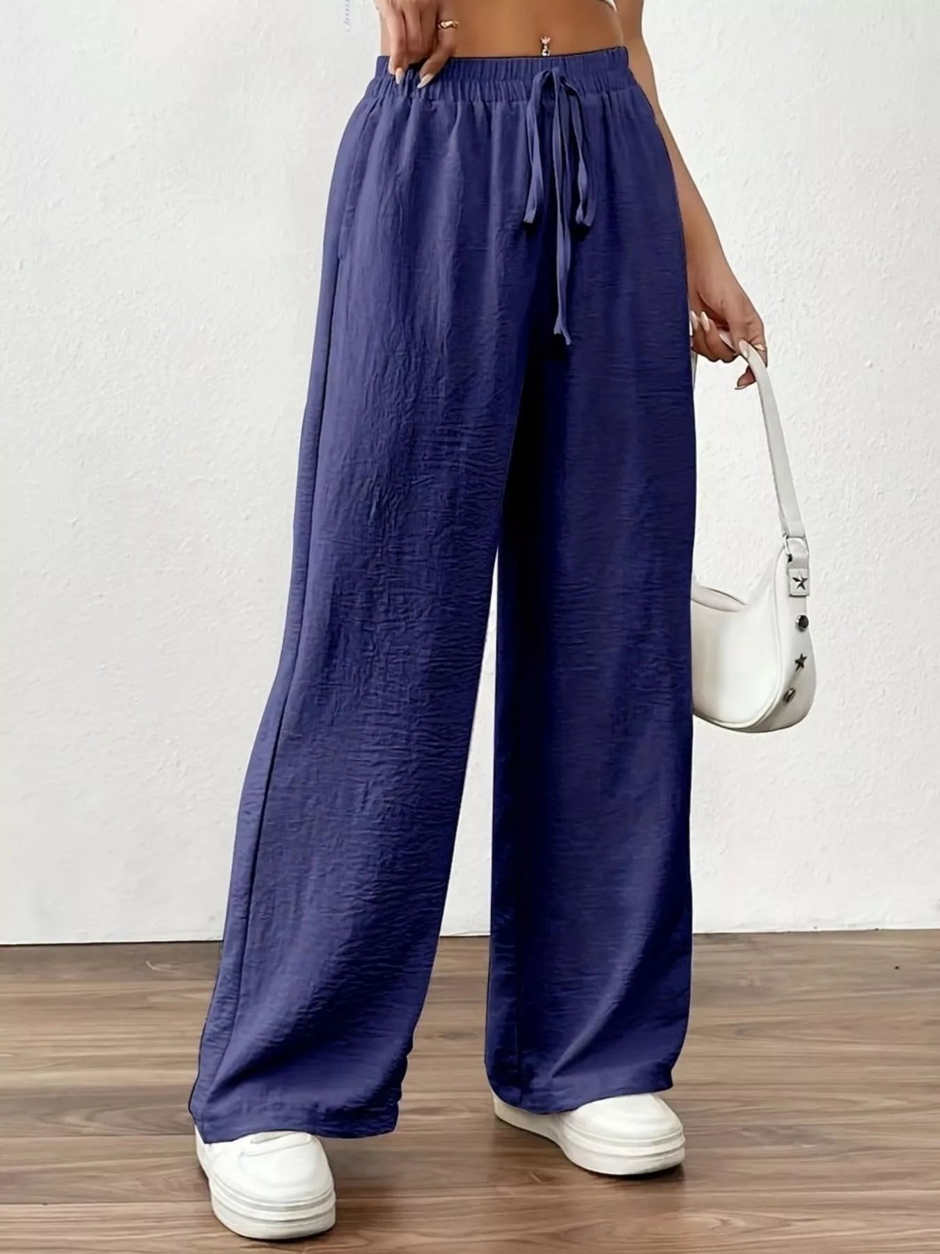 Casual Drawstring Wide Leg Pants