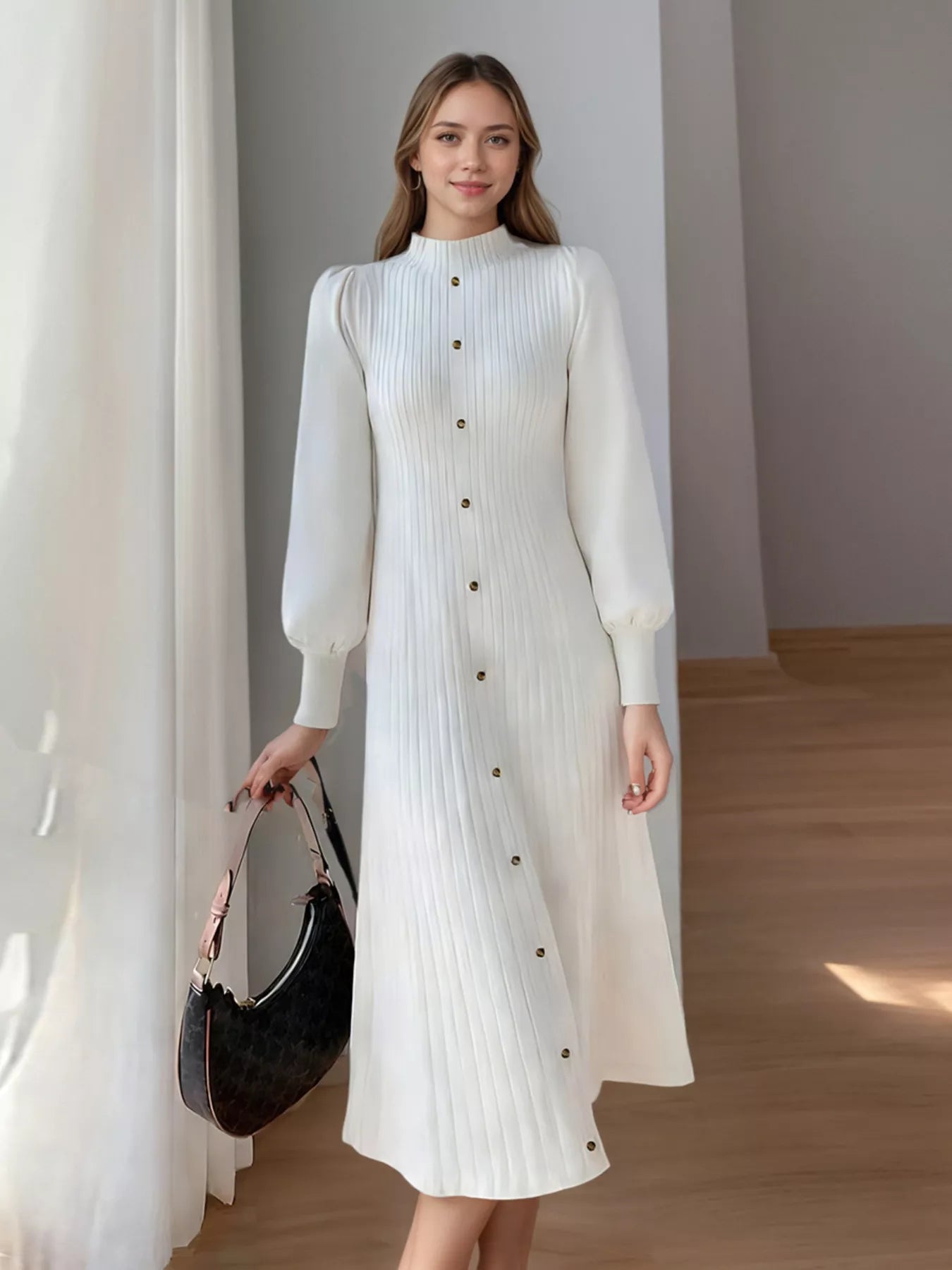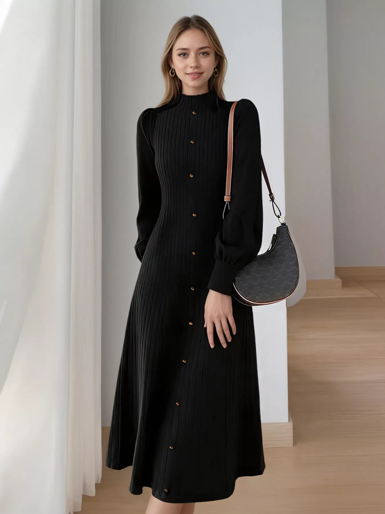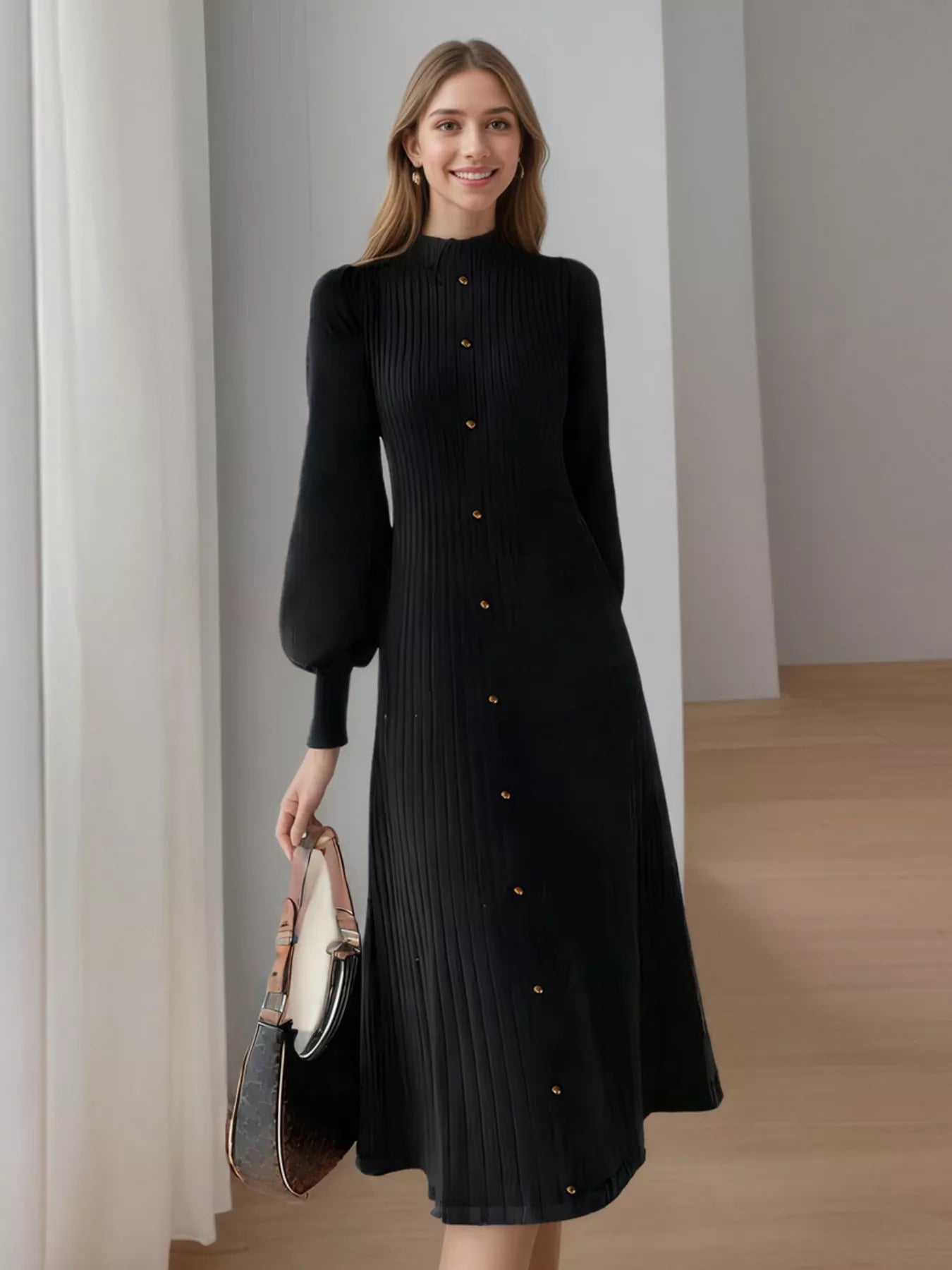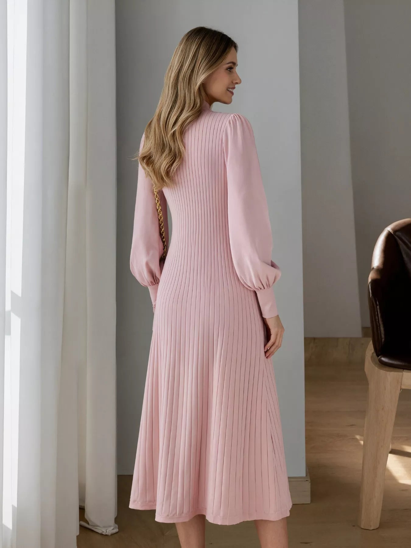 Hazel Blues® | Ribbed Knit Mock Neck Midi Dress