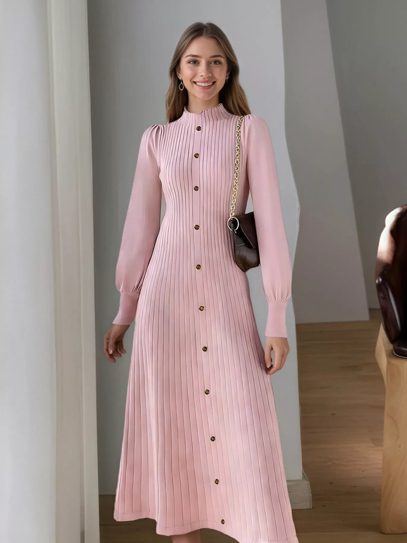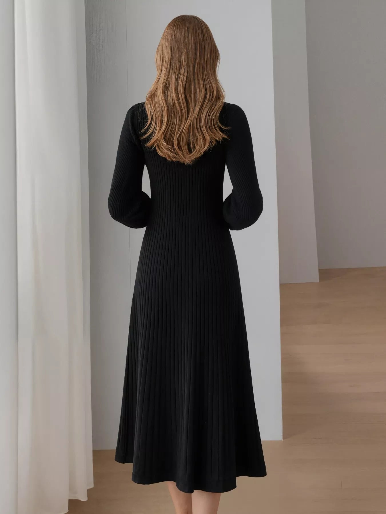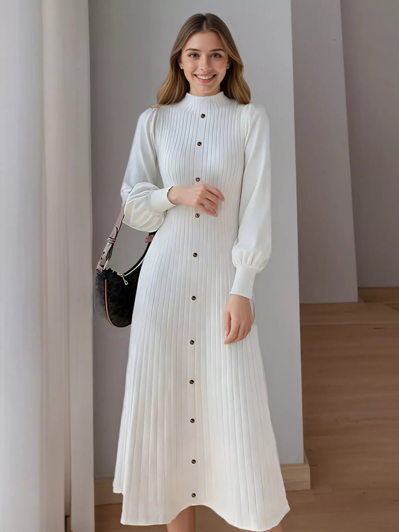 Hazel Blues® | Ribbed Knit Mock Neck Midi Dress