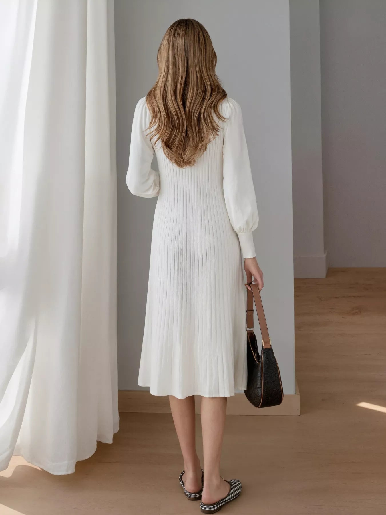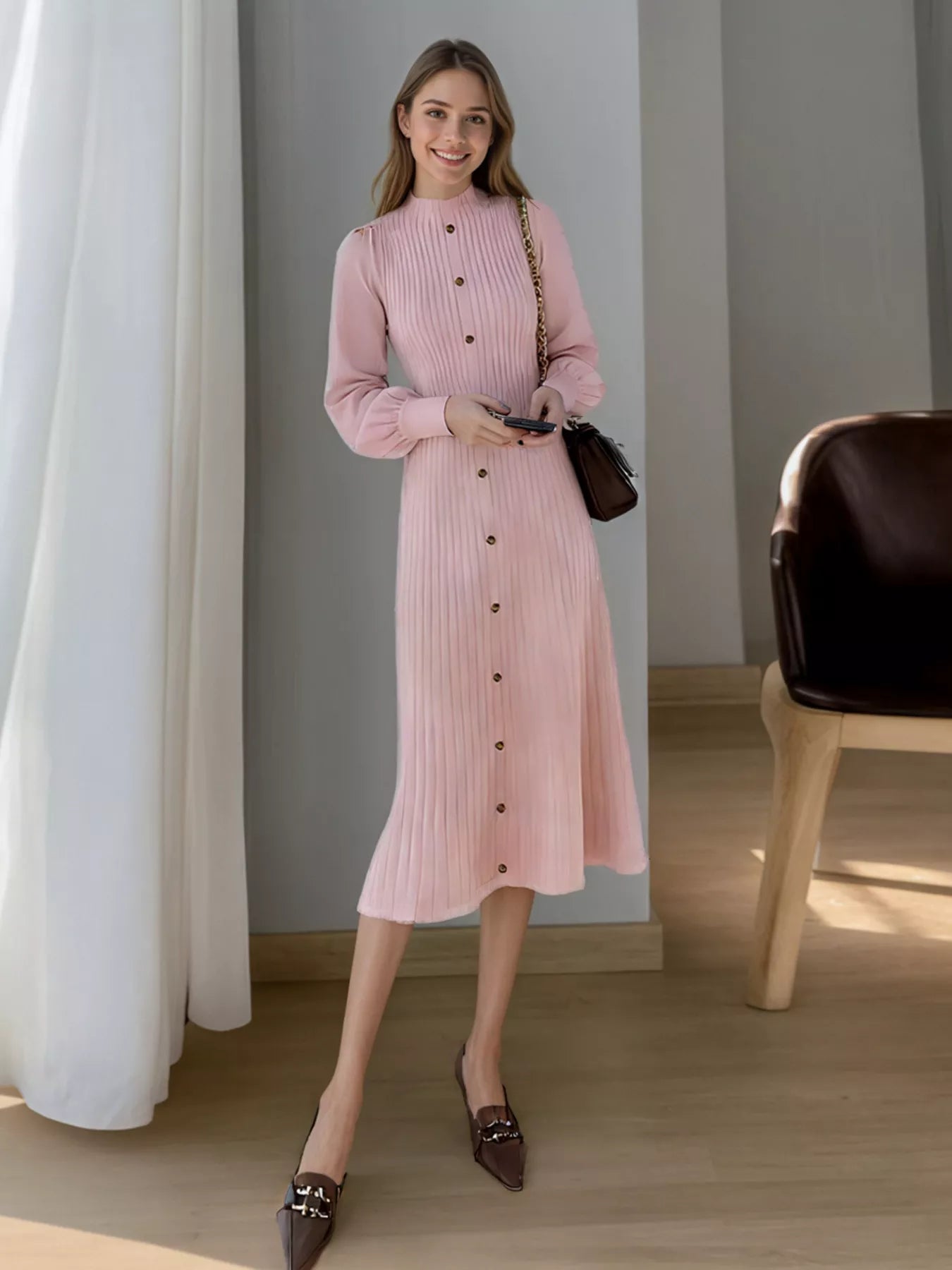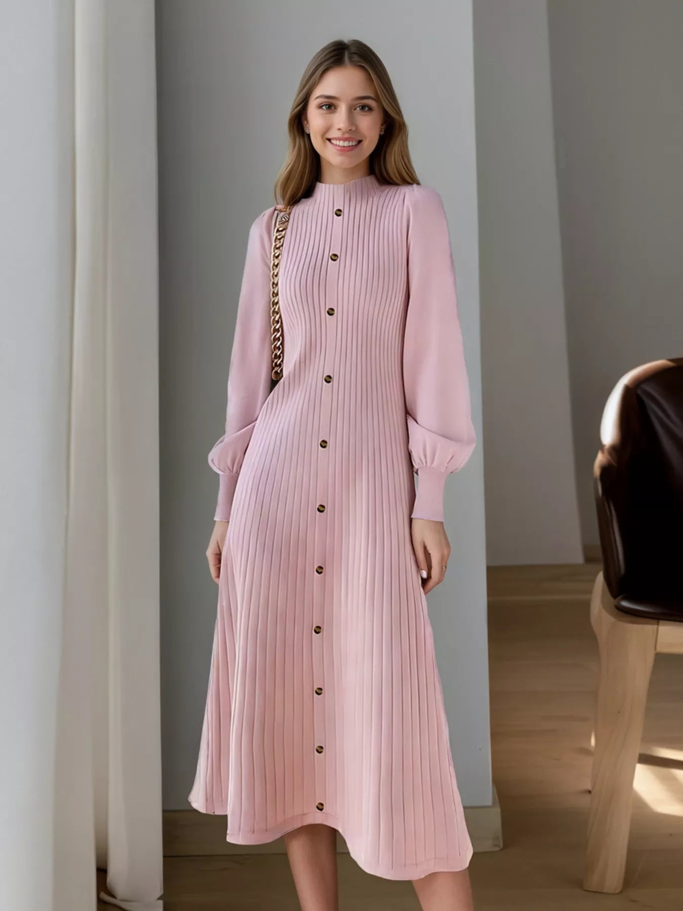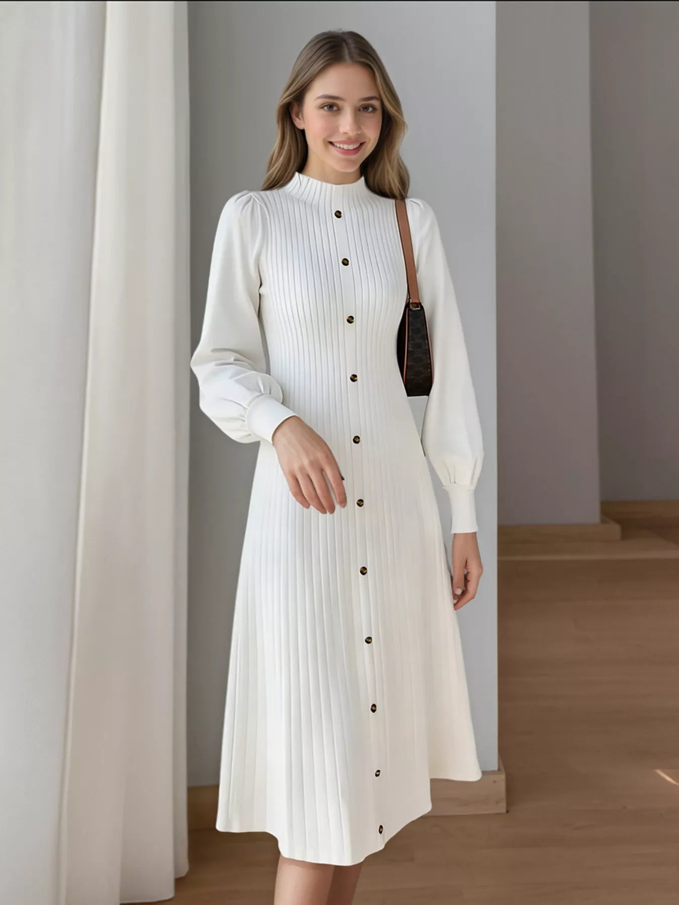 Hazel Blues® | Ribbed Knit Mock Neck Midi Dress