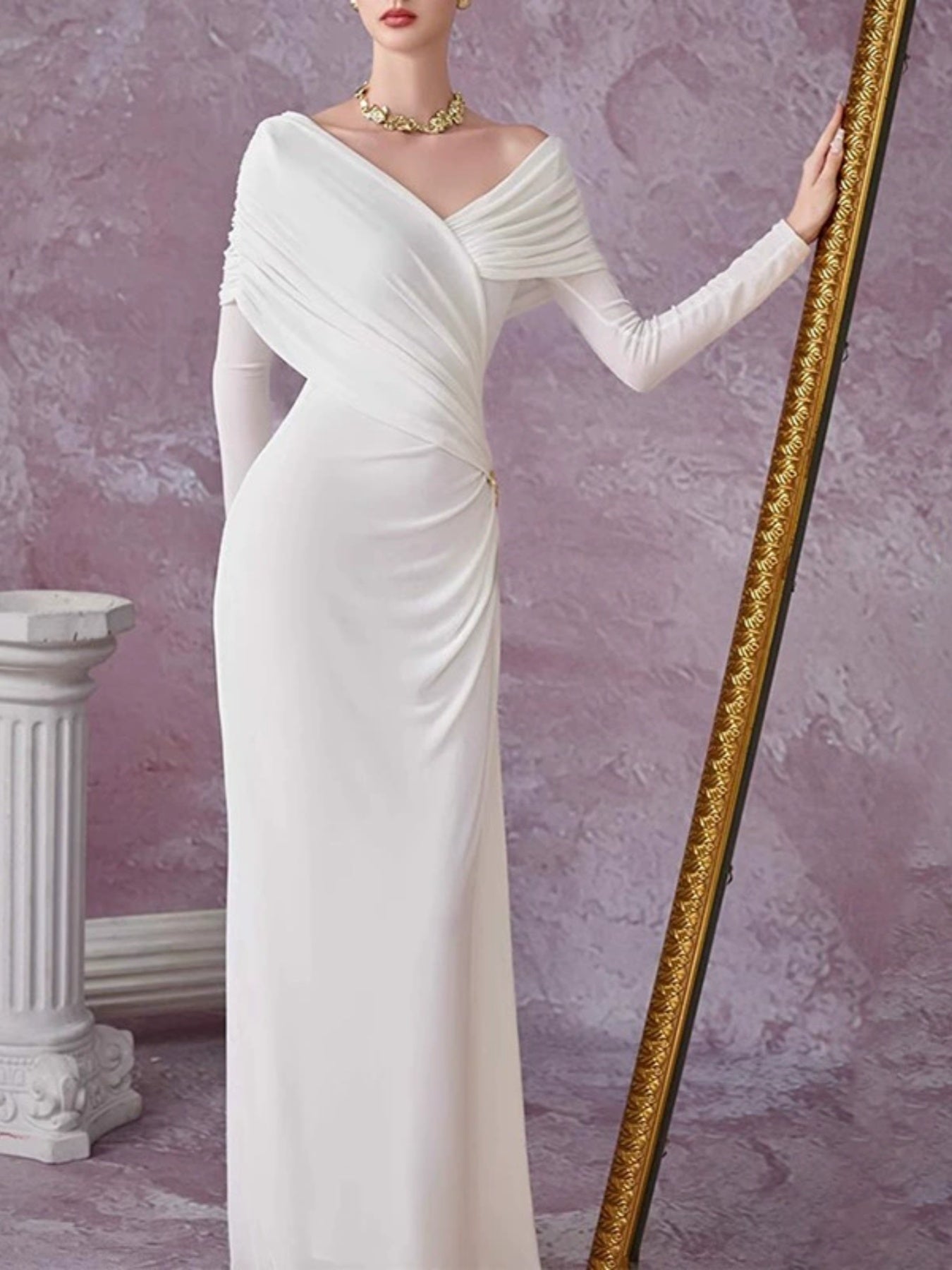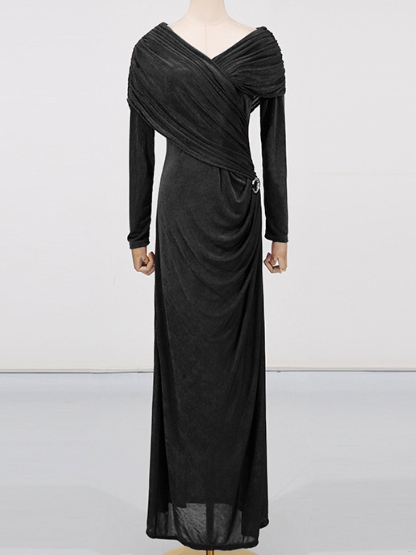 Hazel Blues® | Ruched Draped Long Sleeve Maxi Dress