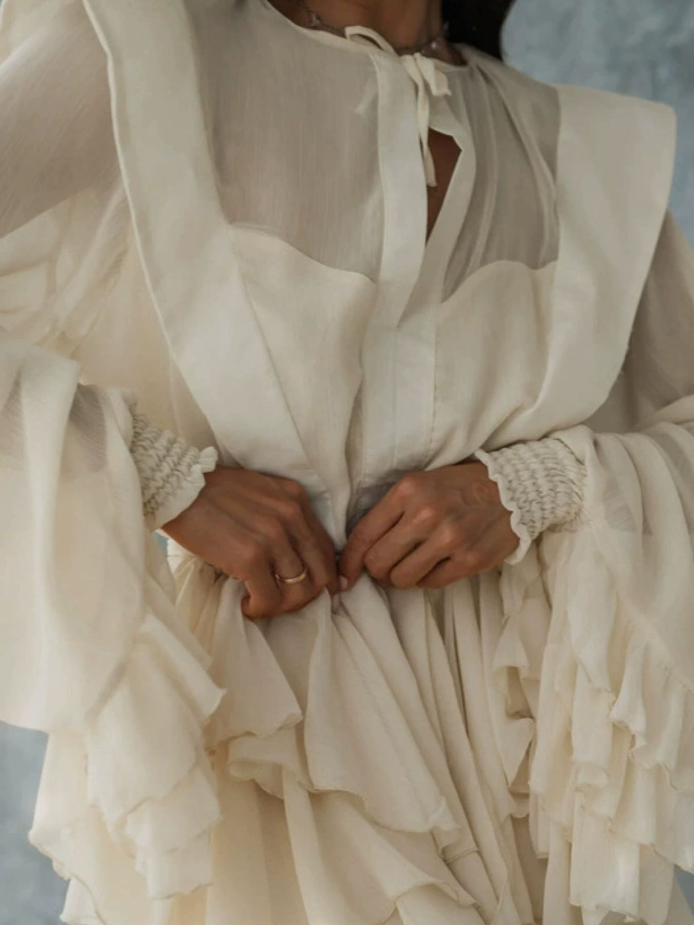 - Features:Buttoned,Tiered,Belted,Ruffled