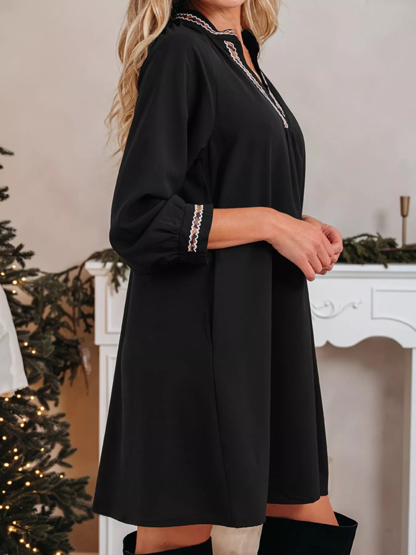 Hazel Blues® | Contrast Trim Bracelet Sleeve Shift Mini Dress