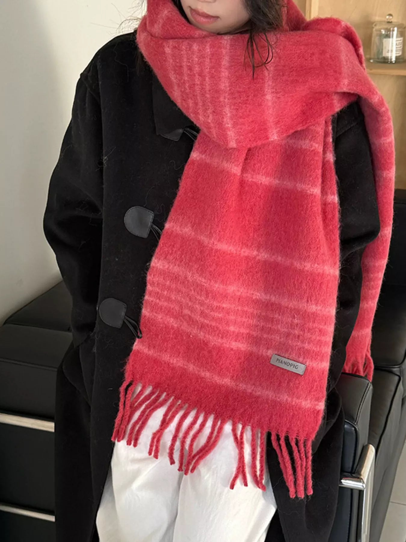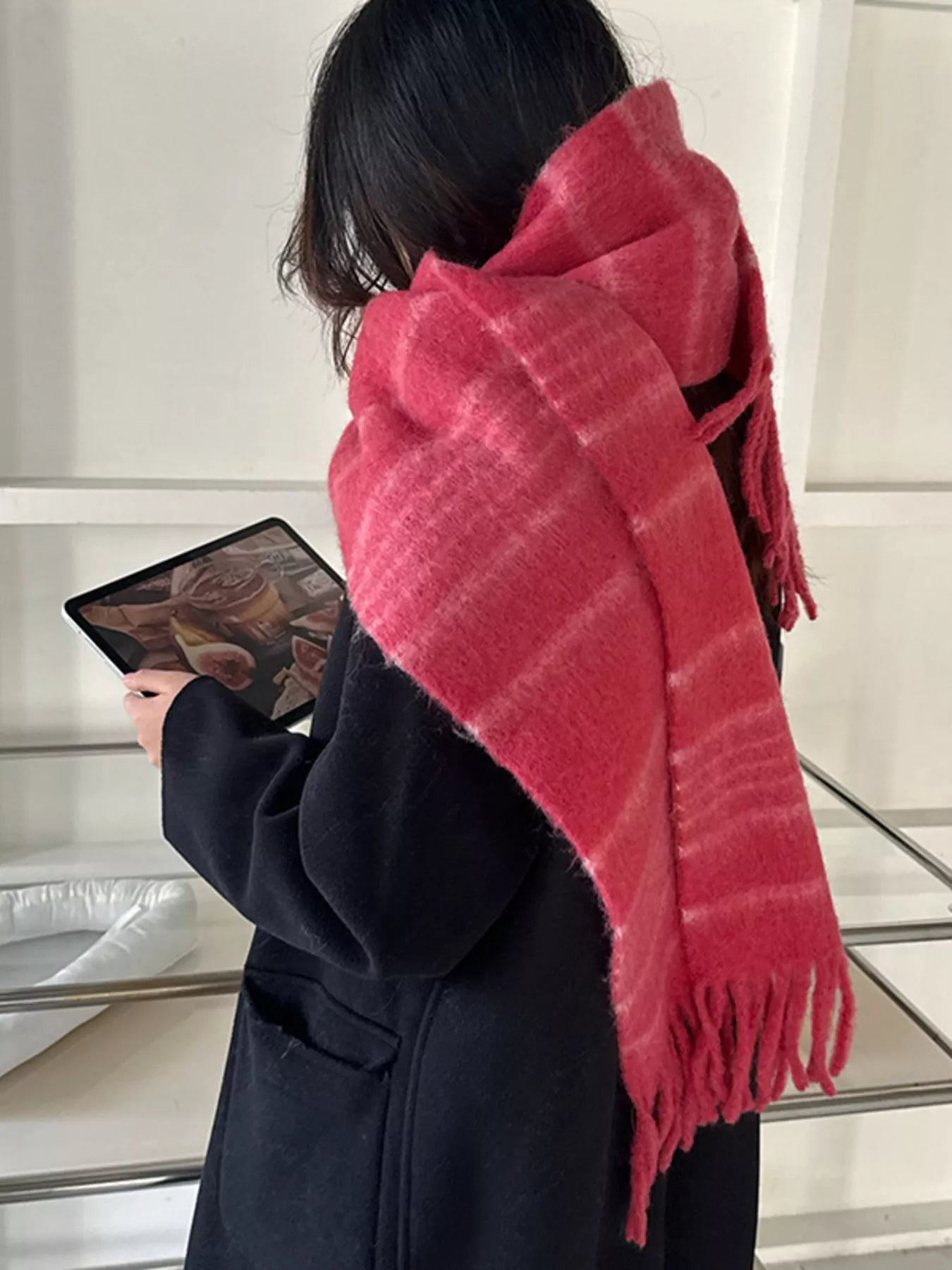 Hazel Blues® | Cozy Striped Fringe Hem Scarf