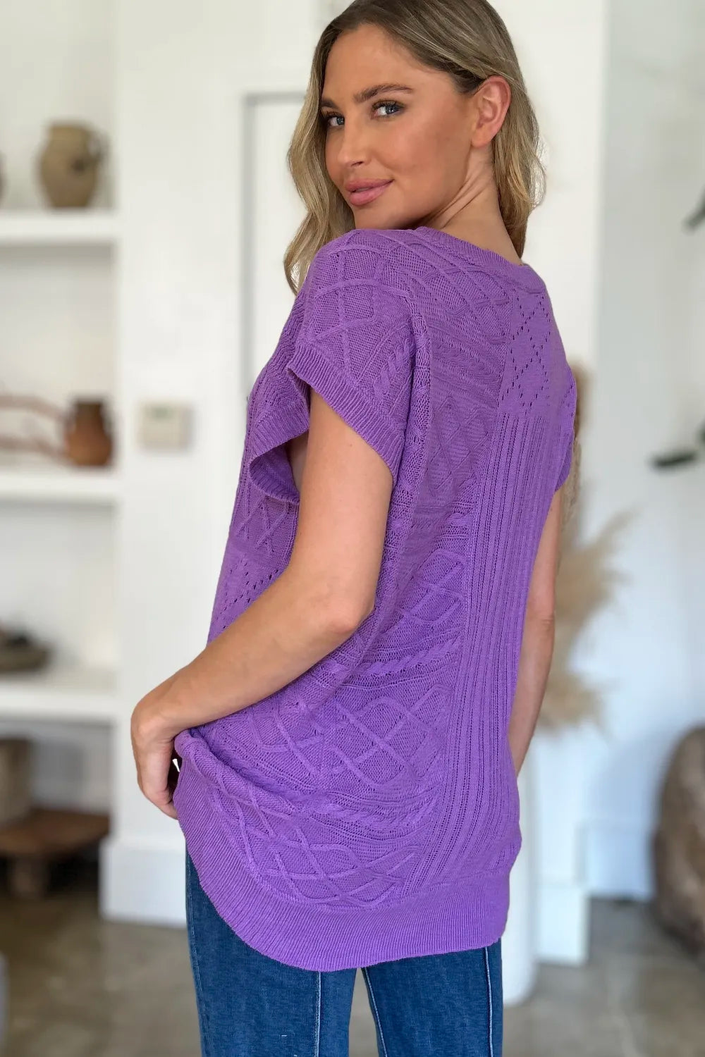 Hazel Blues® | Double Take Cable-Knit Round Neck Cap Sleeve Sweater