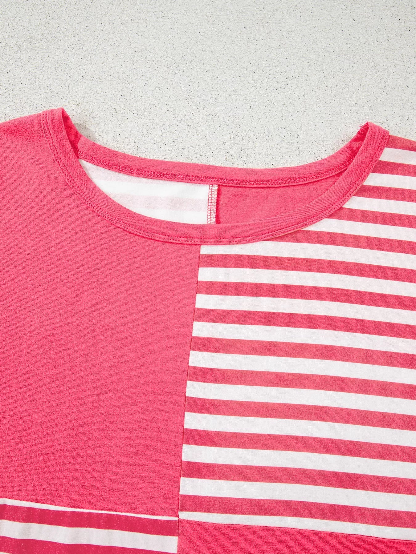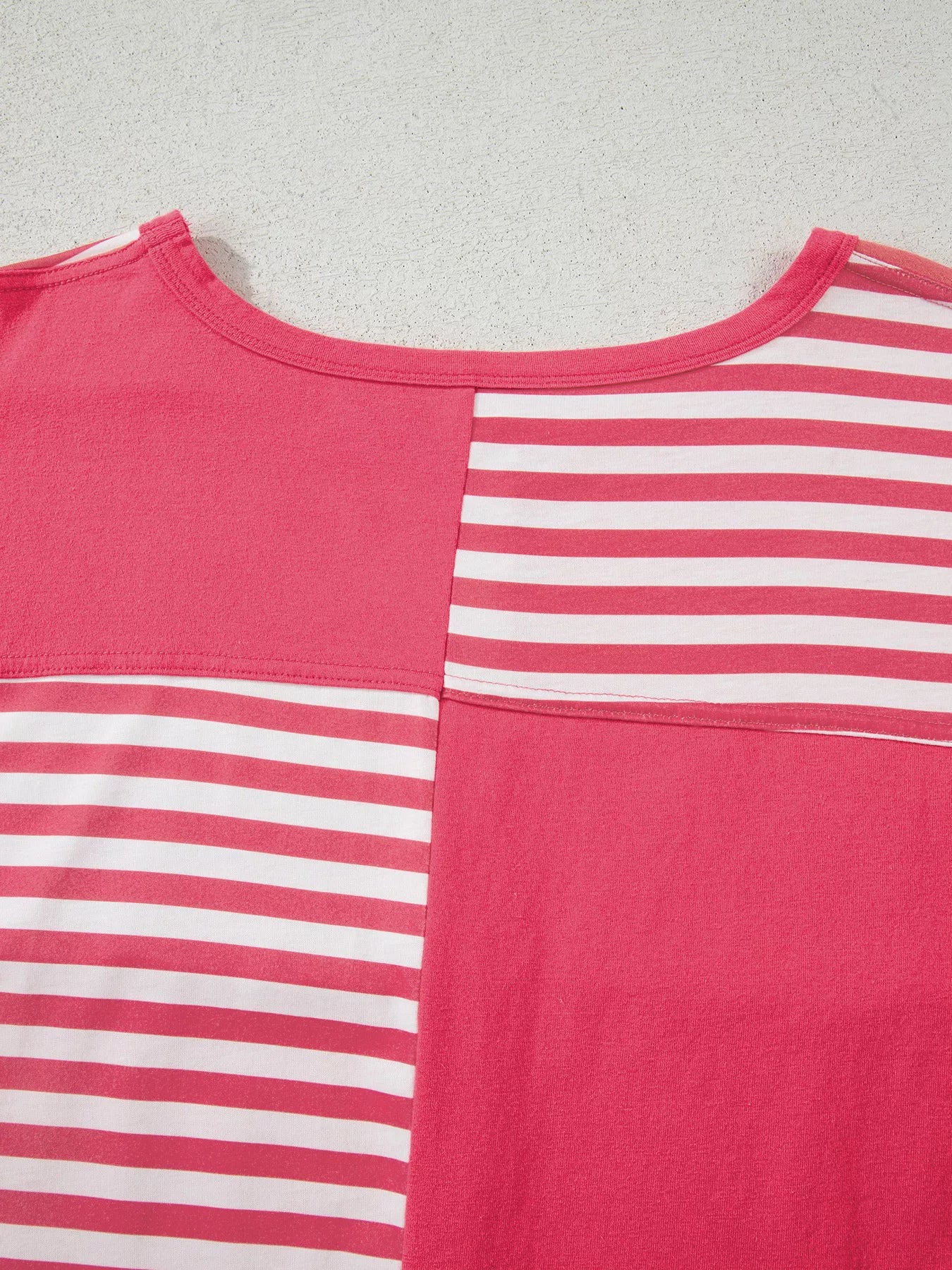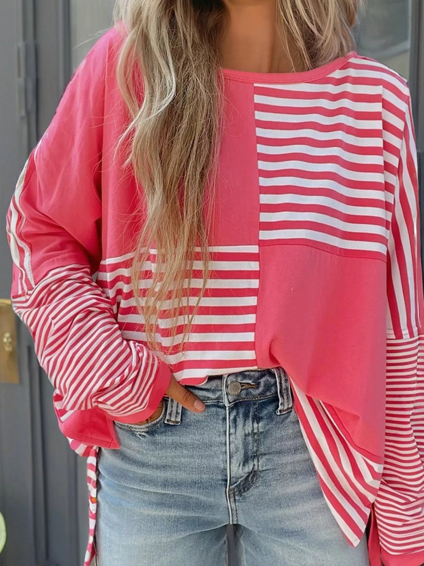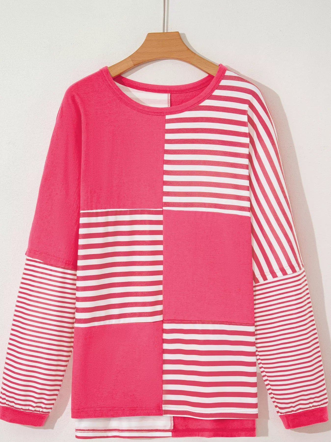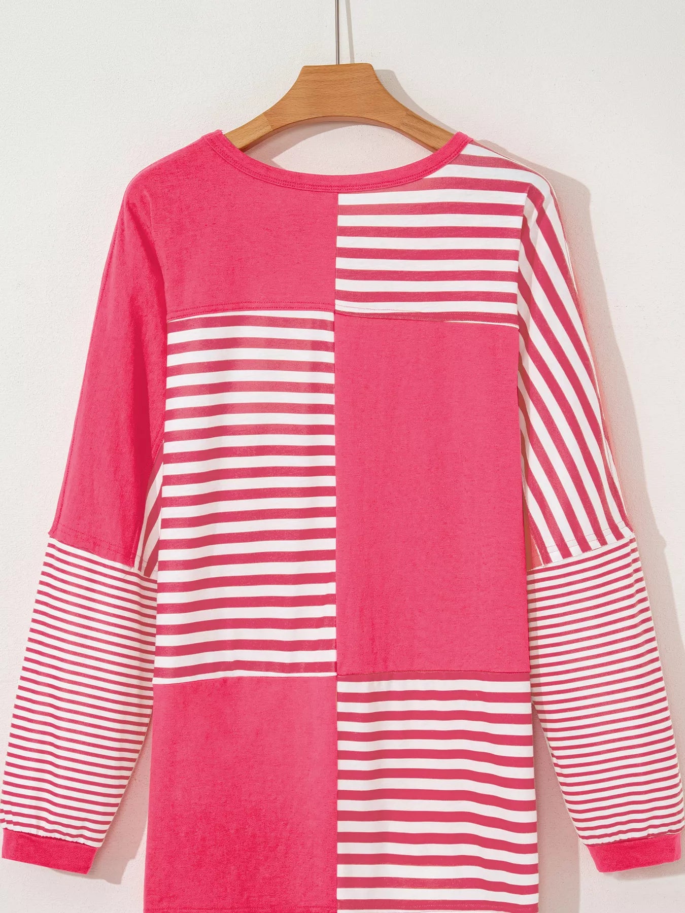 Stripe Color Block Patchwork Drop Shoulder Long Sleeve Tunic Top