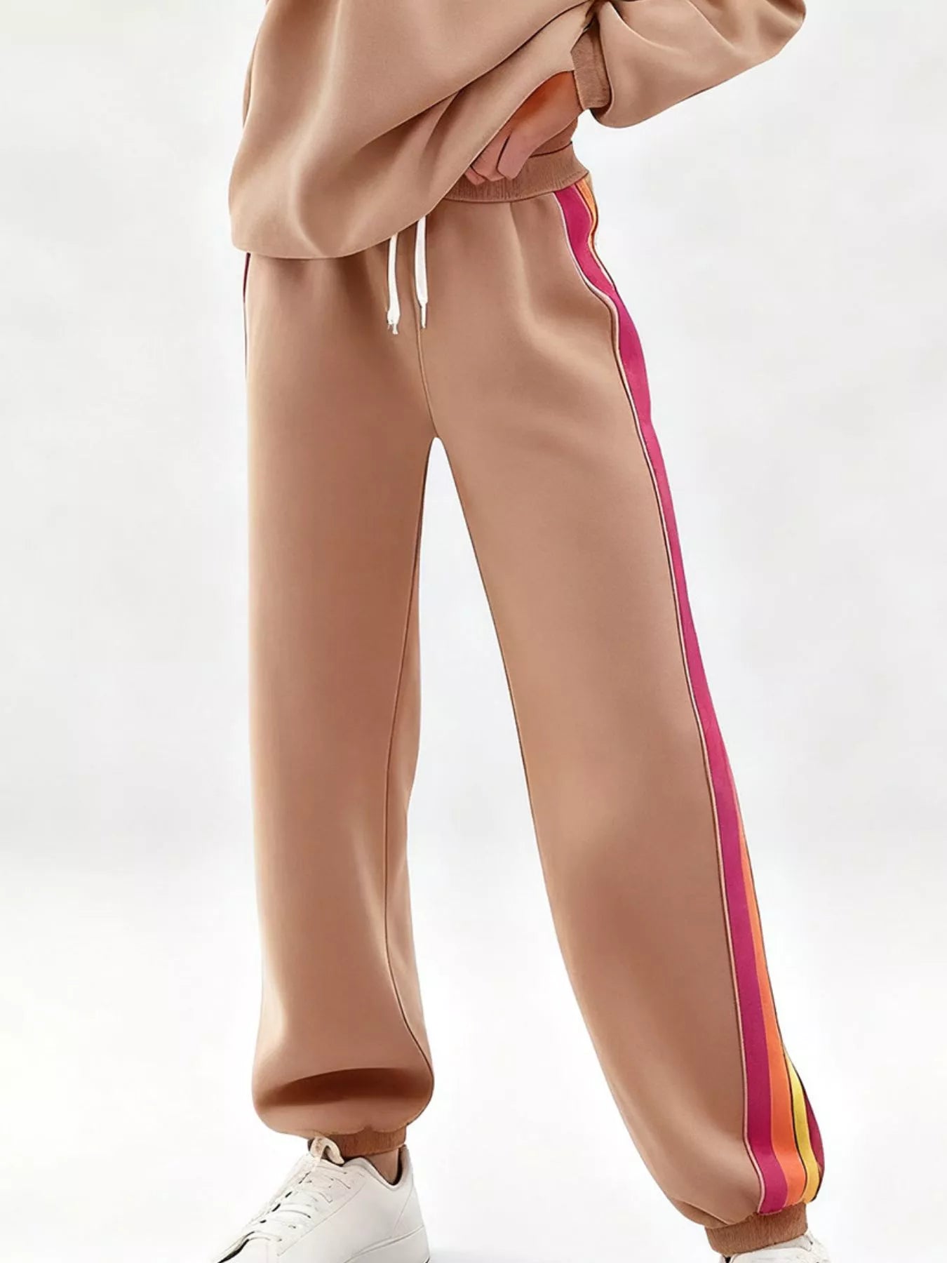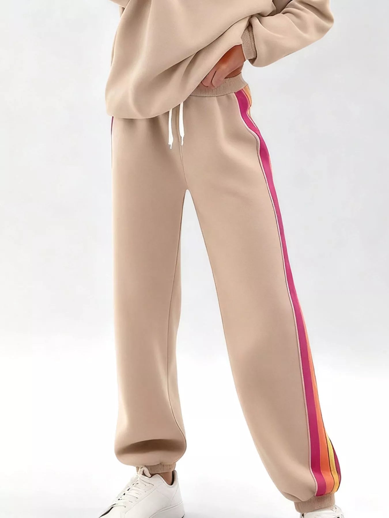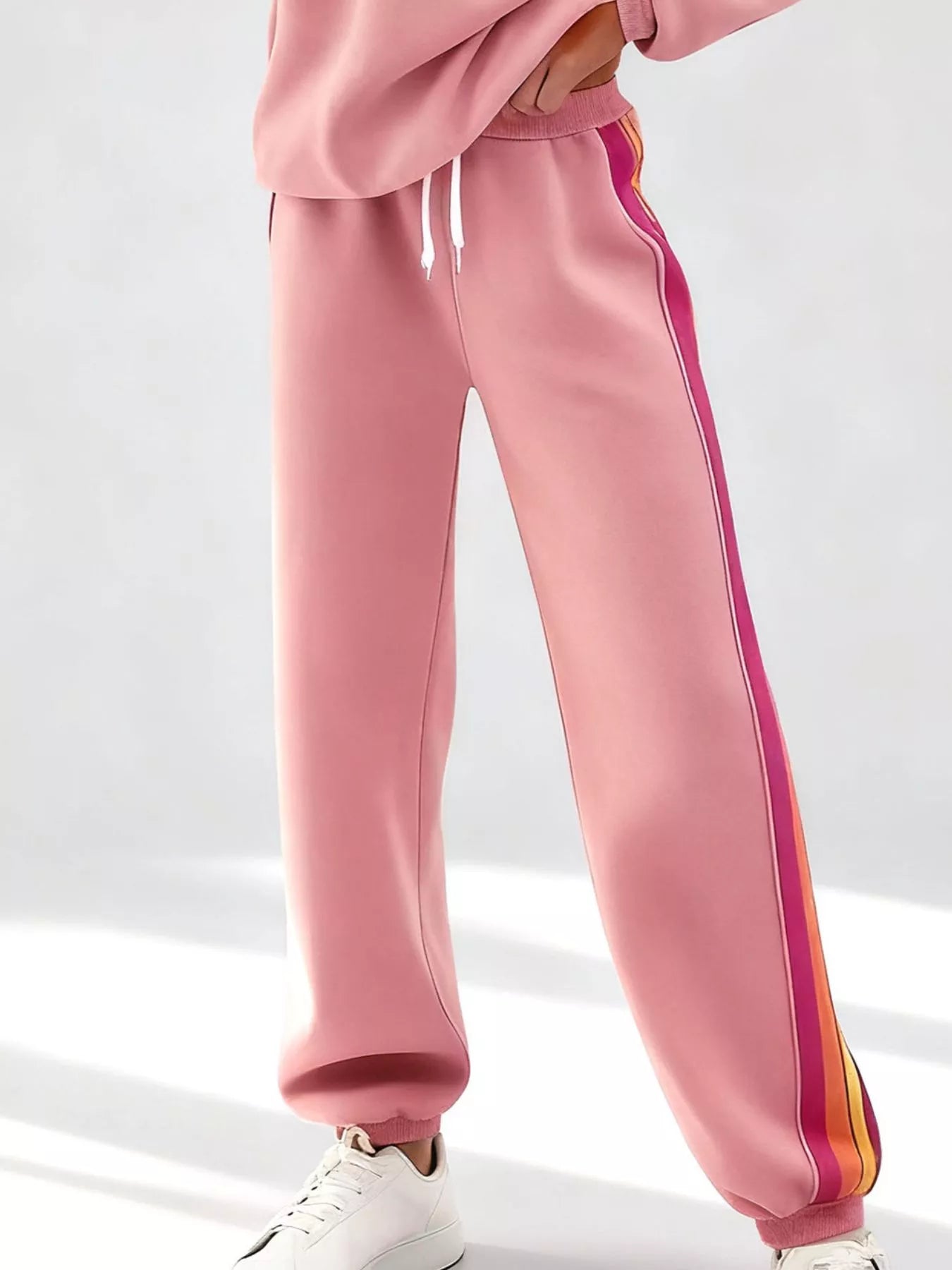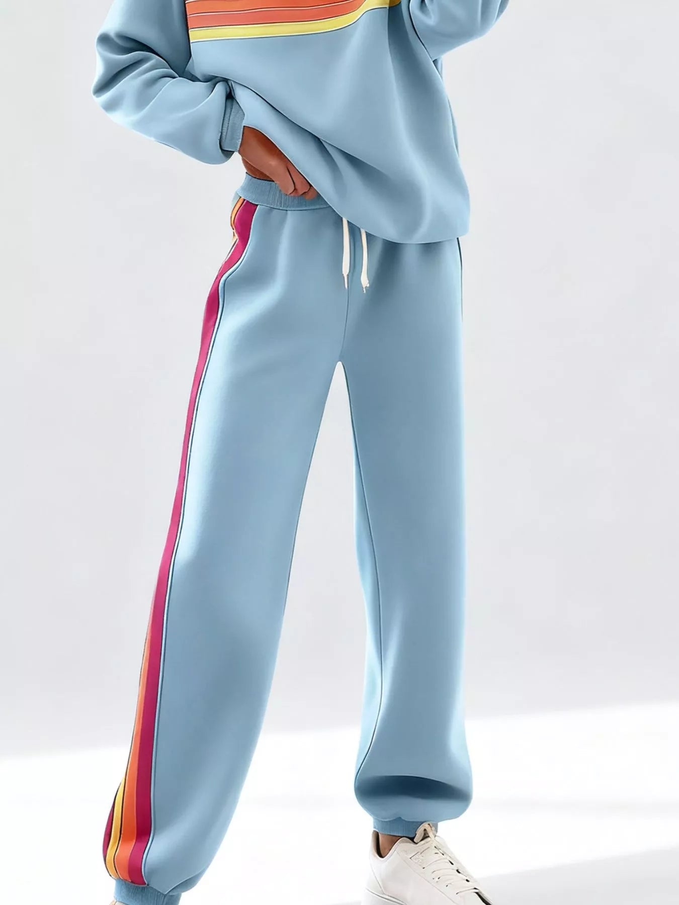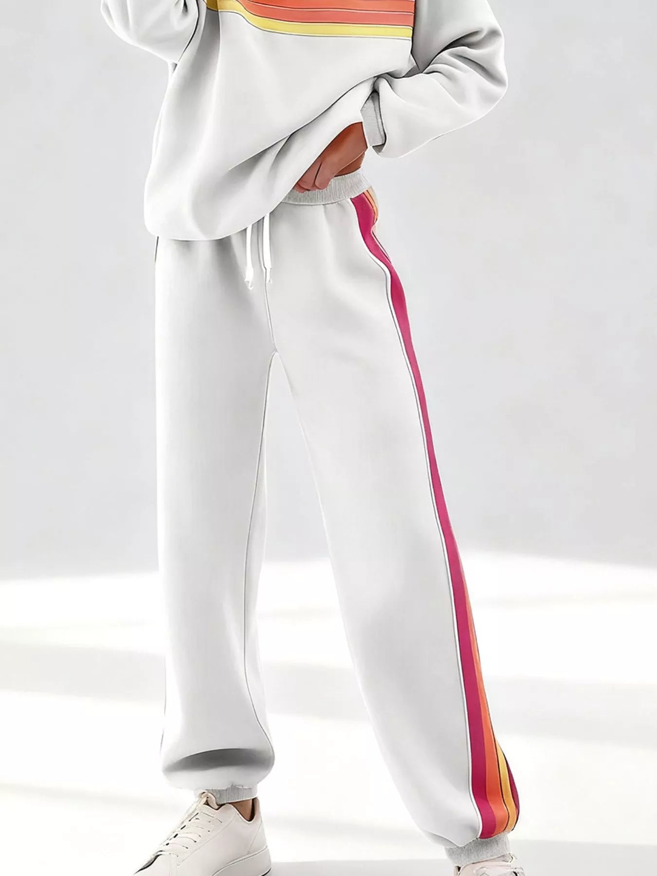 Hazel Blues® | Striped Round Neck Sweatshirt and Pants Set