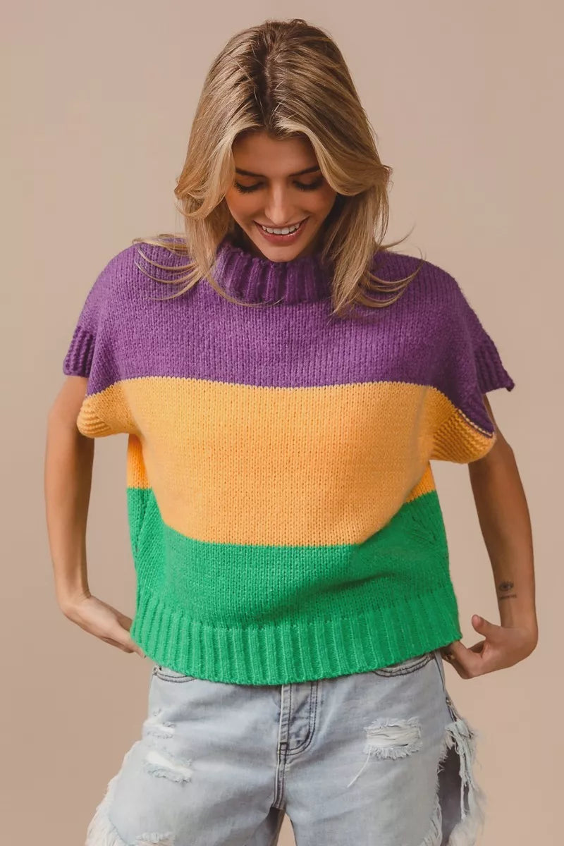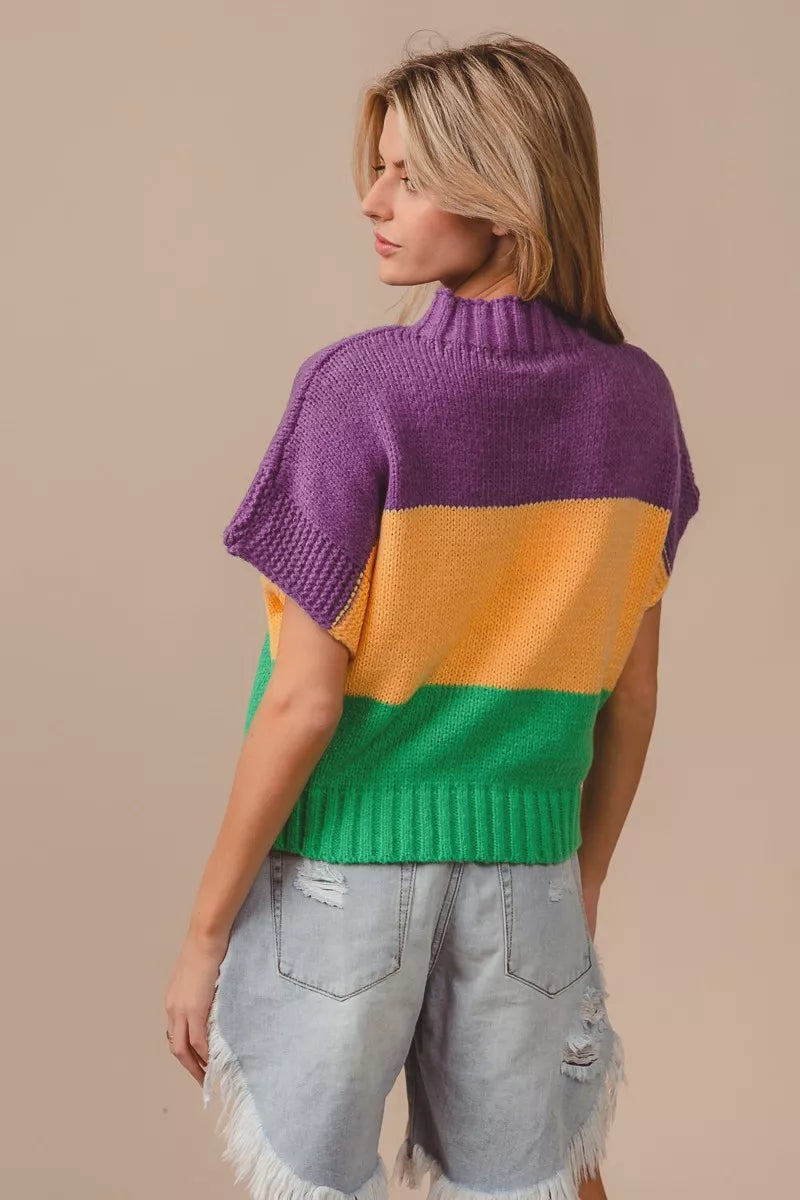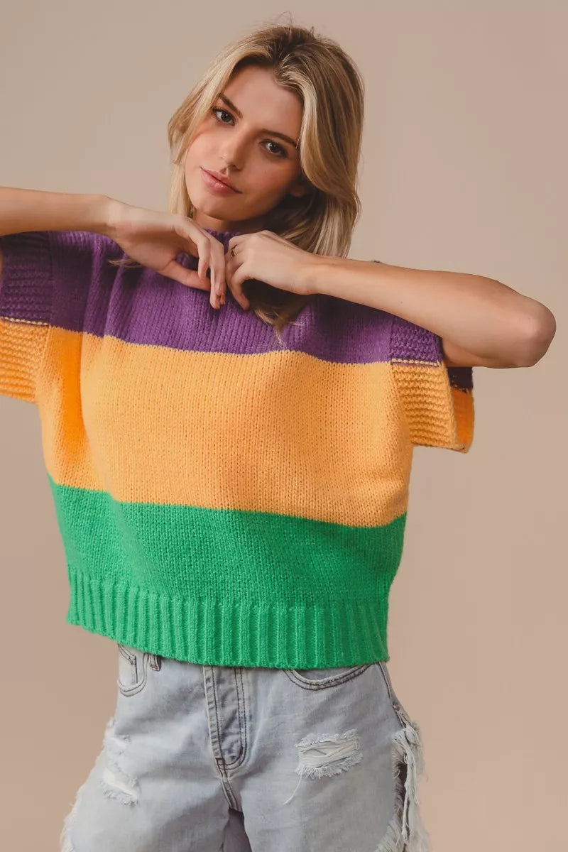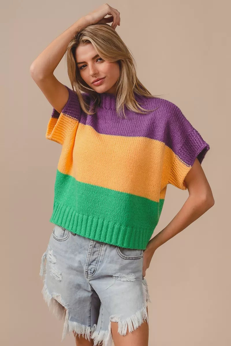 This Mardi Gras Color Block Drop Shoulder Sweater Top is a vibrant and stylish choice for the festive season. The color block design adds a playful and eye-catching element to the sweater. The drop shoulder silhouette offers a relaxed and comfortable fit. Perfect for celebrating Mardi Gras or adding a pop of color to your everyday wardrobe. Stay cozy and chic with this statement sweater top.