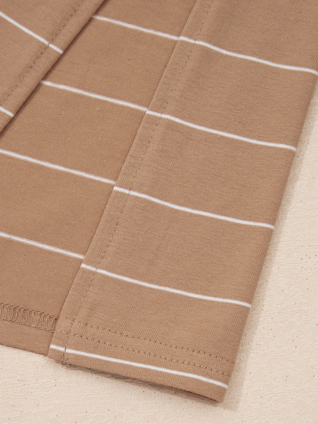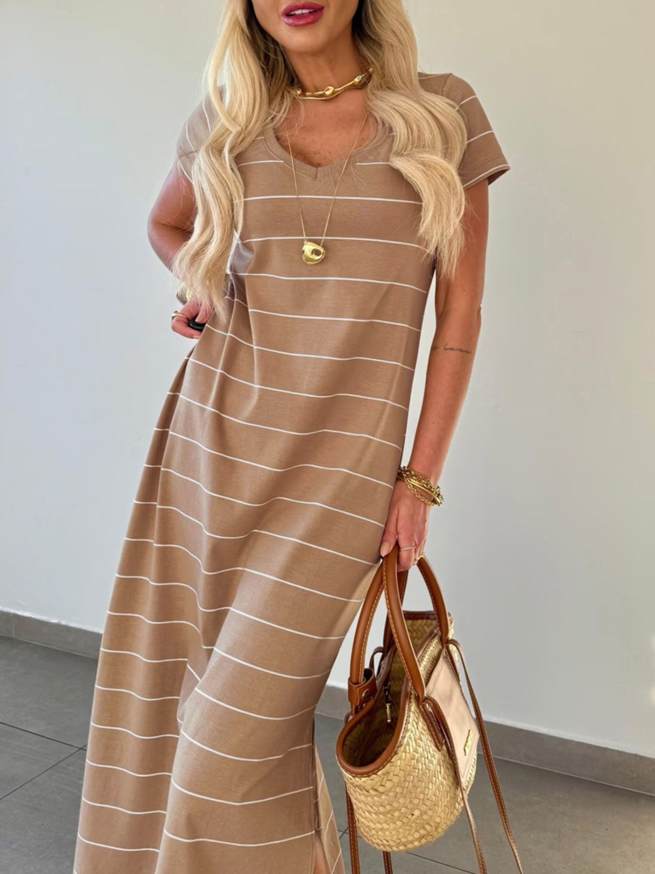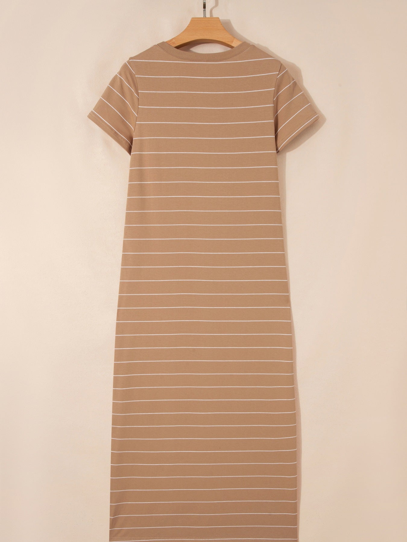 Stripe Short Sleeve Side Slit Maxi T Shirt Dress