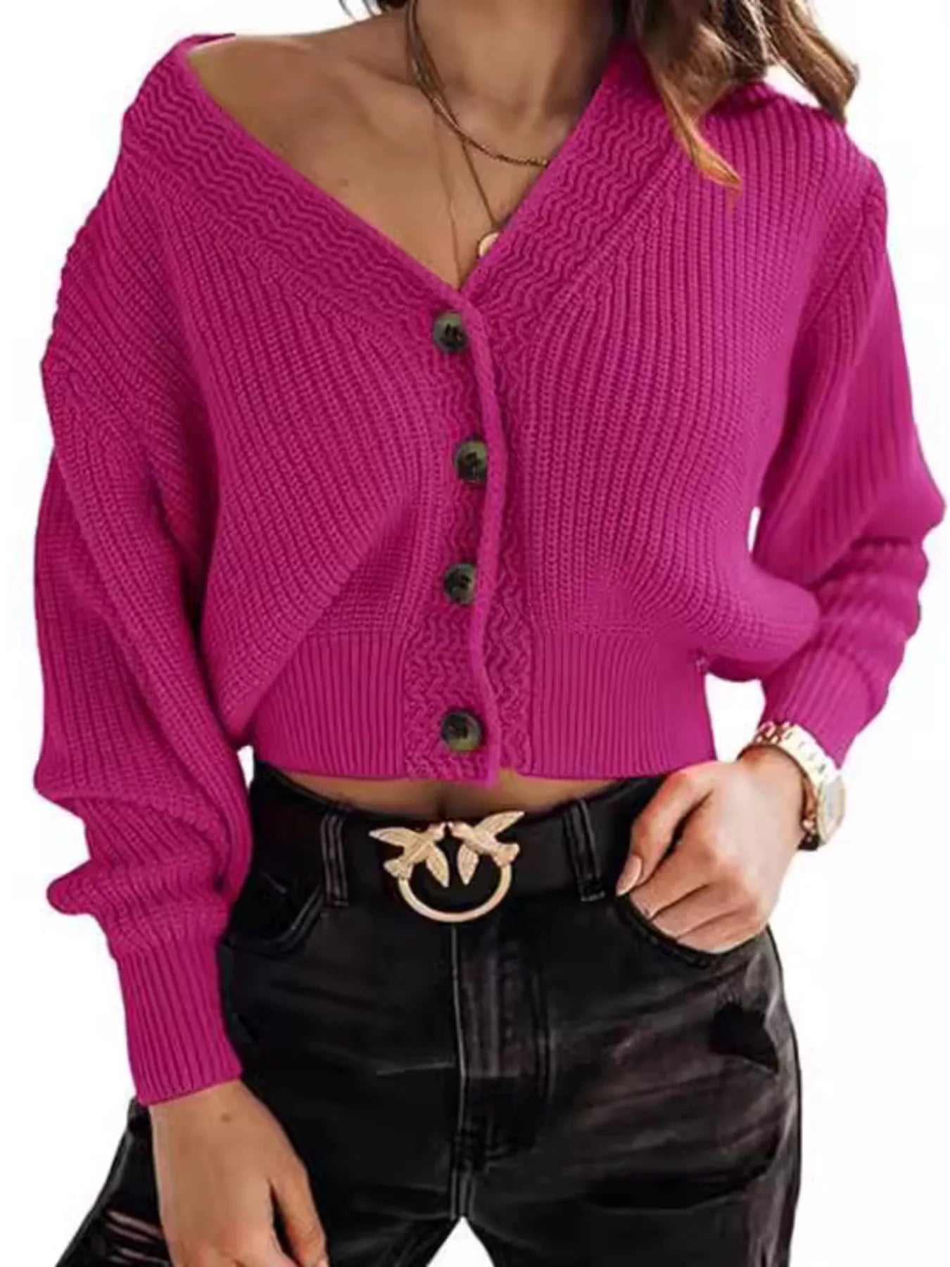 Hazel Blues® | V-Neck Button-Down Knit Cardigan